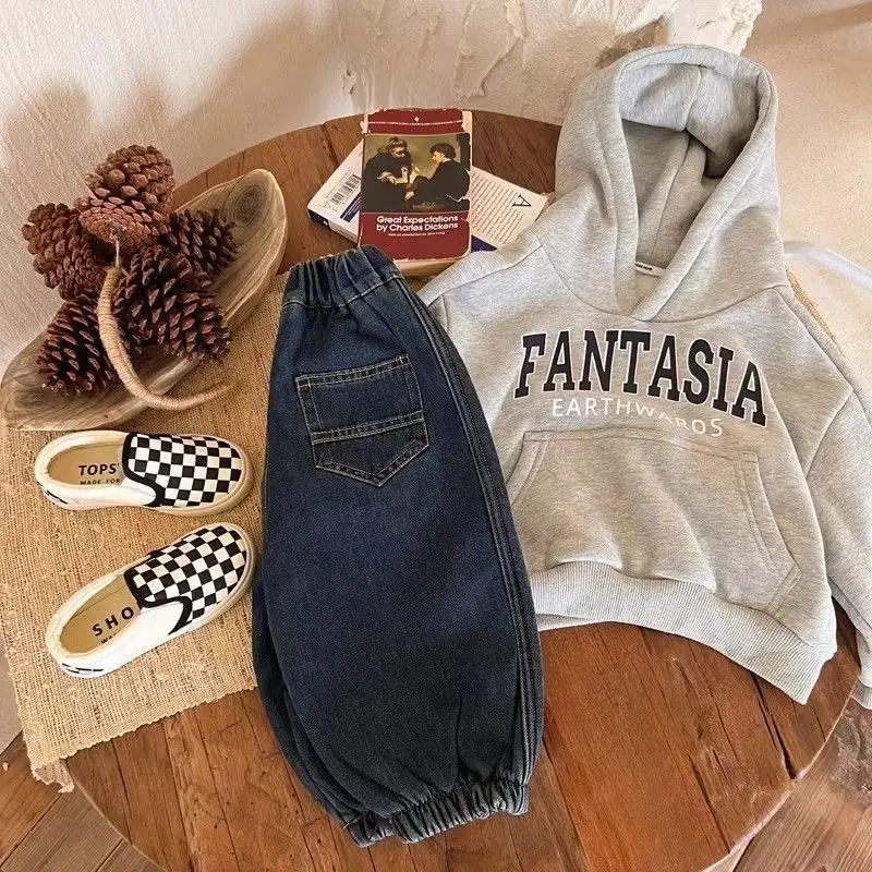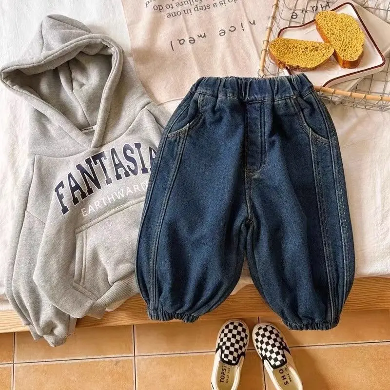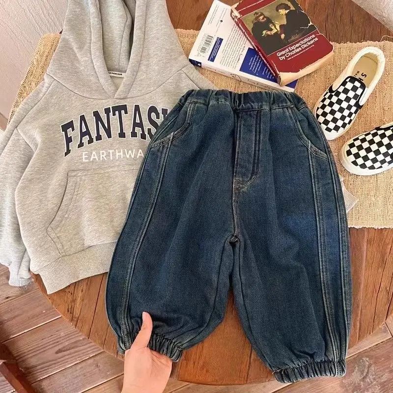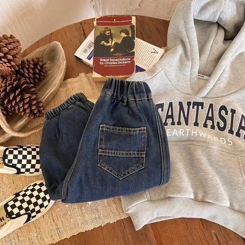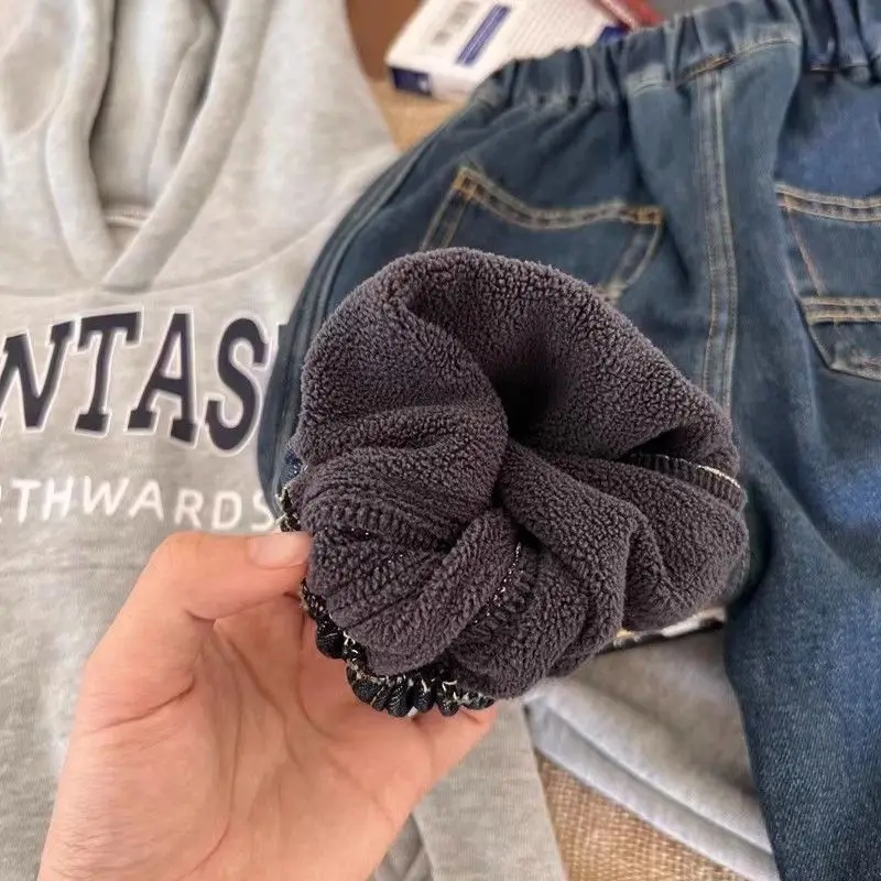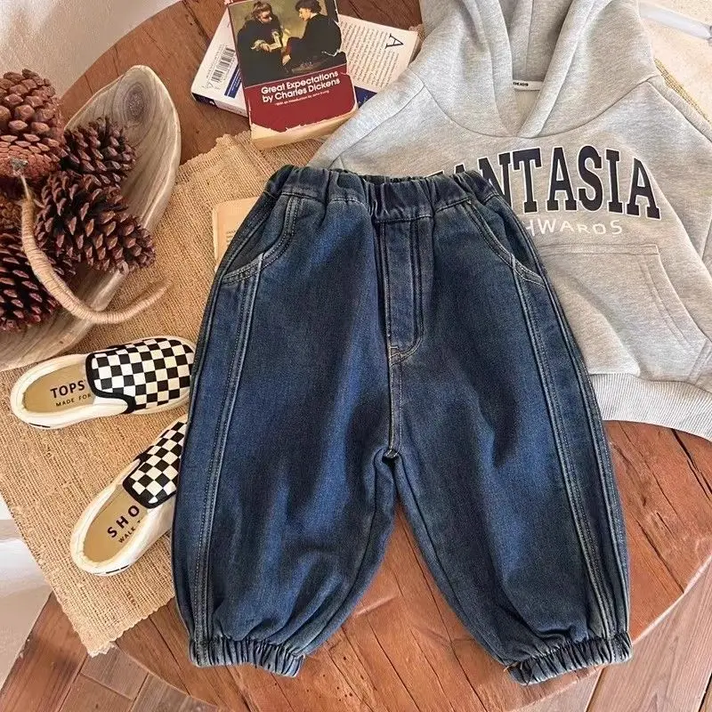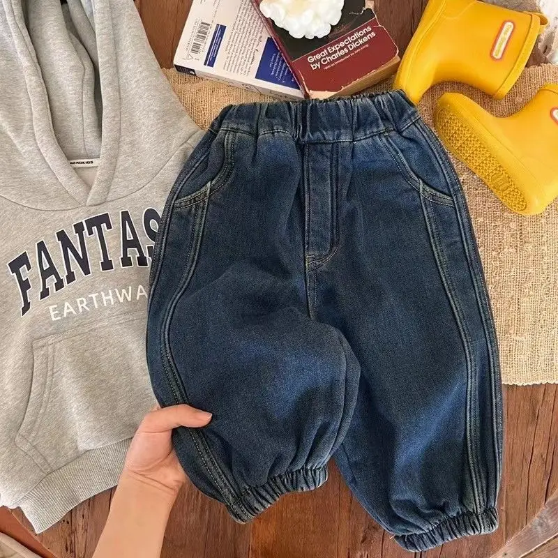 MQTIME - Jeans For 1-8Y Boys Autumn Winter Solid Spliced Cotton Kids Boys Trousers Fashion Velvet Thicken Children Boys Warm Jogger Pants