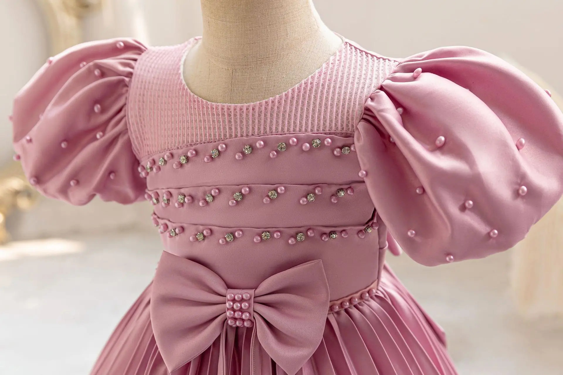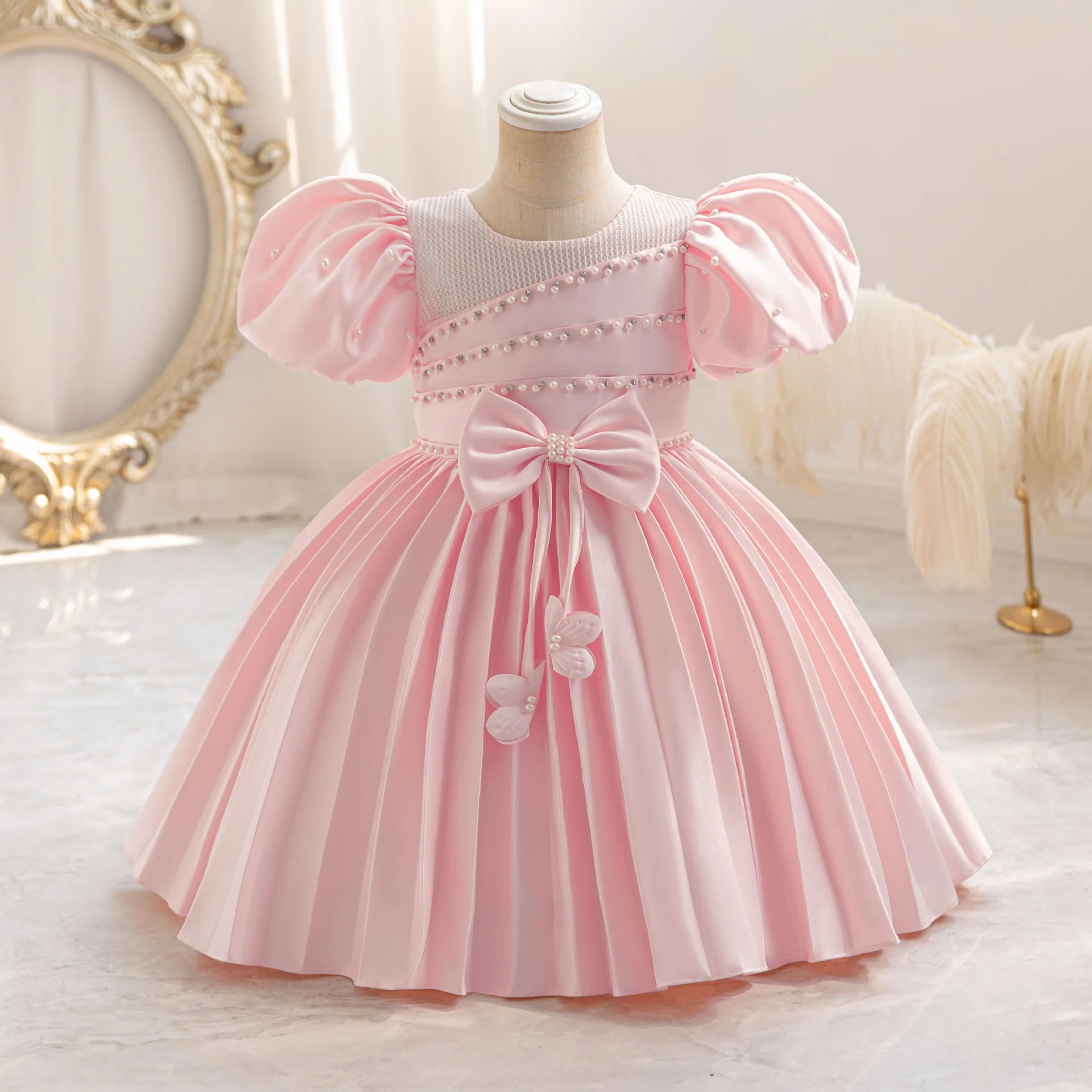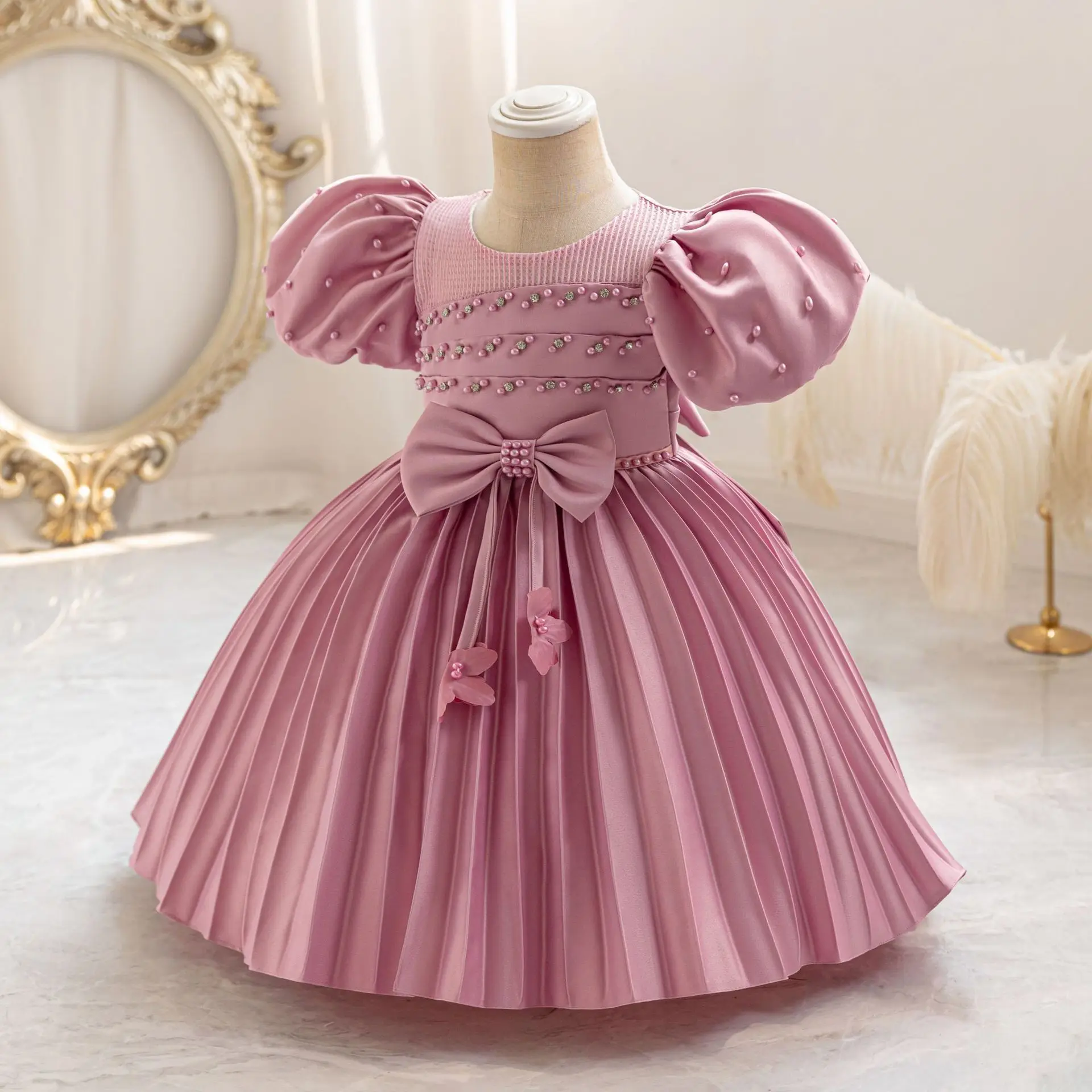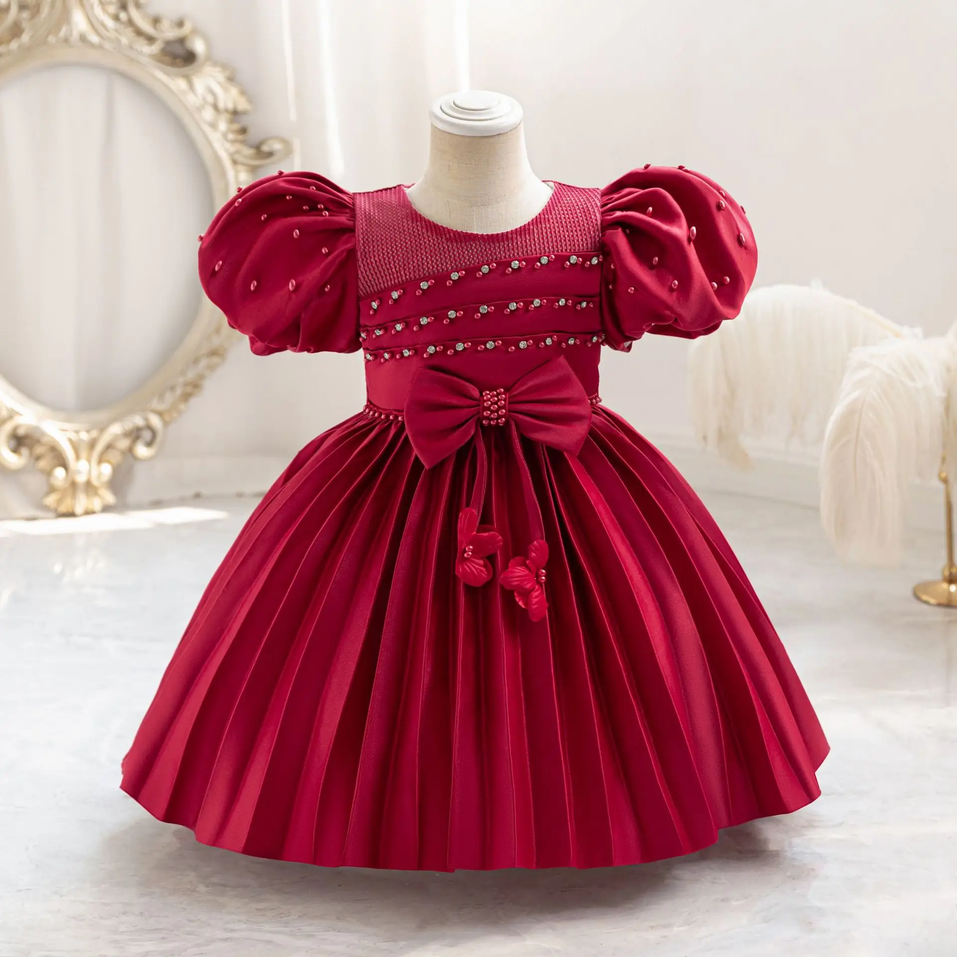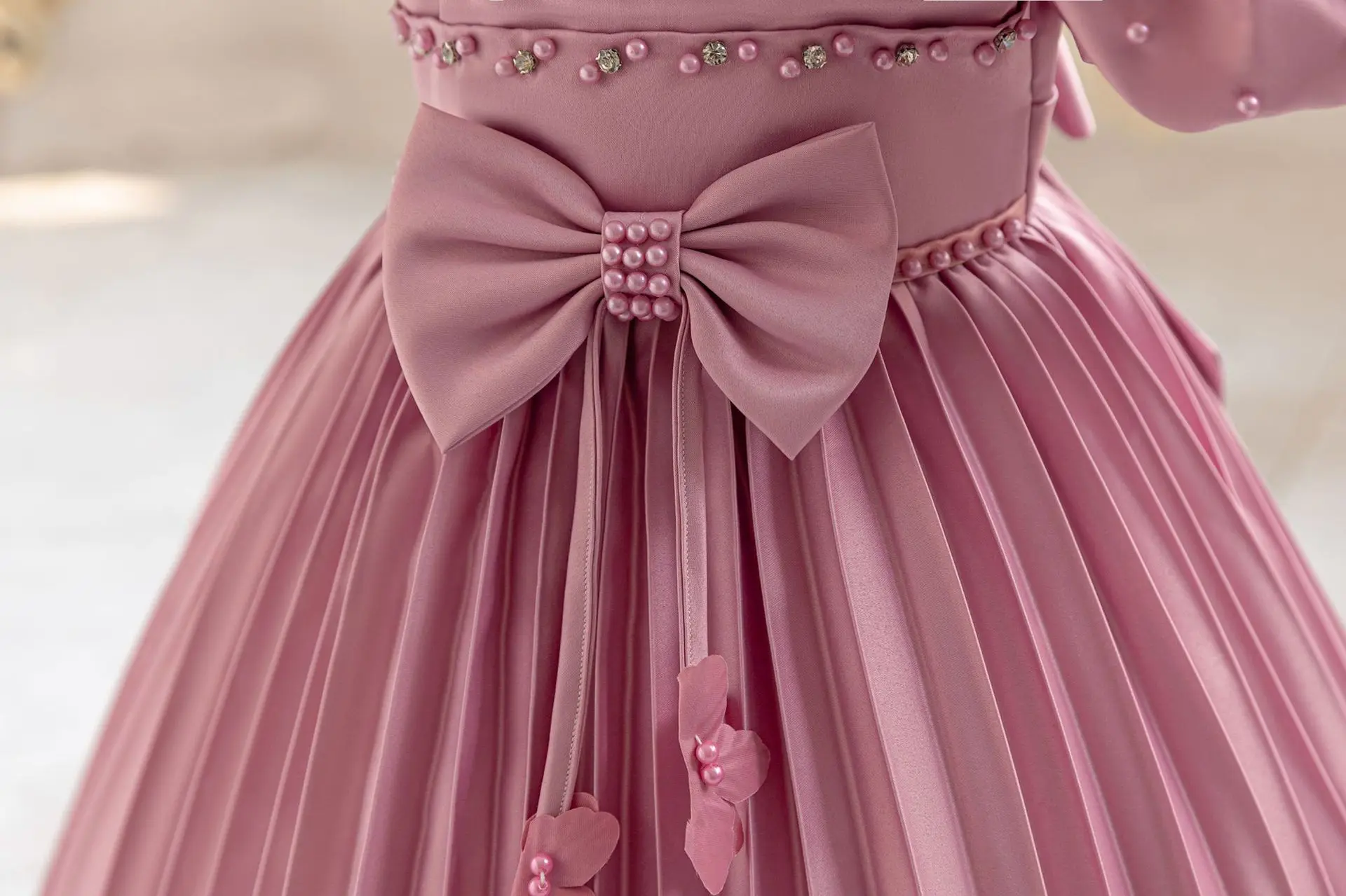 MQTIME - Kids Dresses For Girls Beading Autumn Clothes Child Satin Party Princess Formal Bridesmaid Pageant Ball Gown 3-10 Years