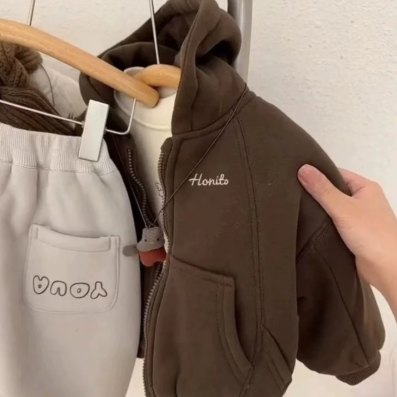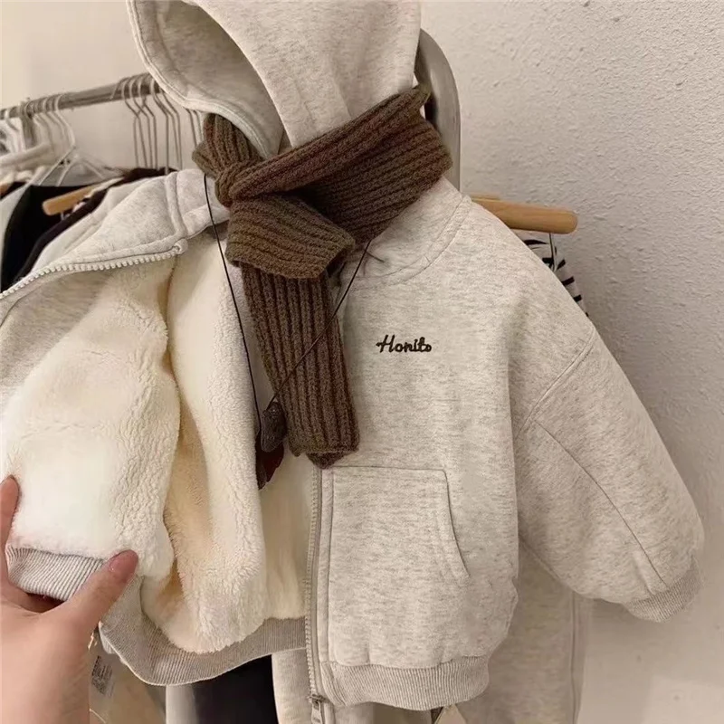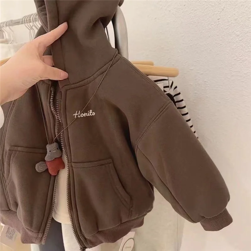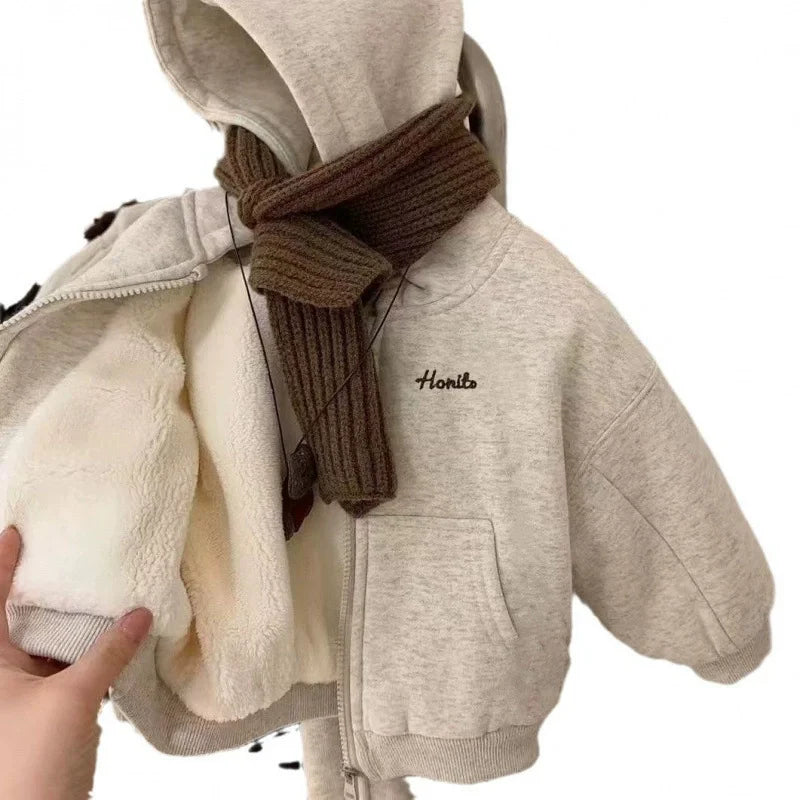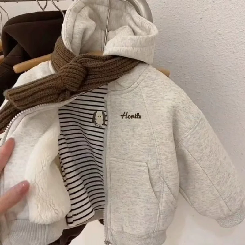 MQTIME - Kids Fleece Warm Coats Winter Plus Velvet Thick Jackets Girls Boy Hooded Outerwears Autumn Pocket Hoodies Children Clothing 2-8Y