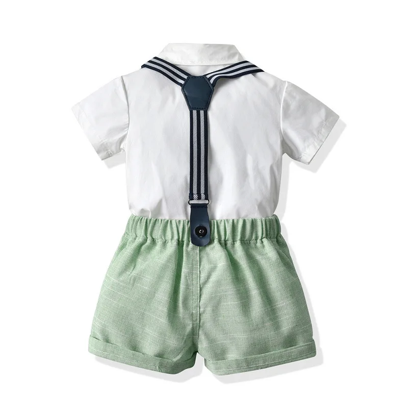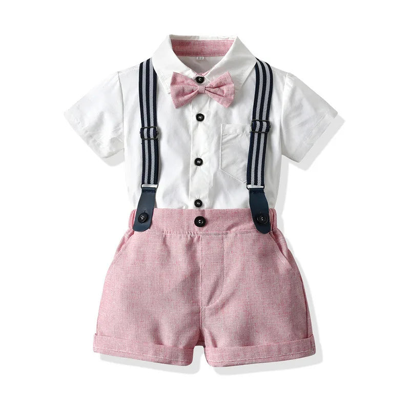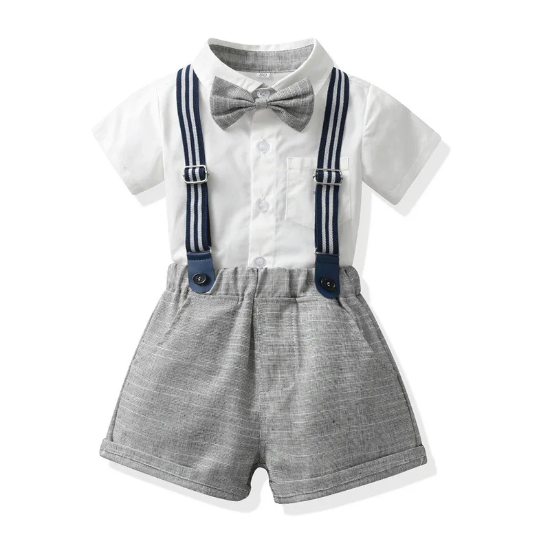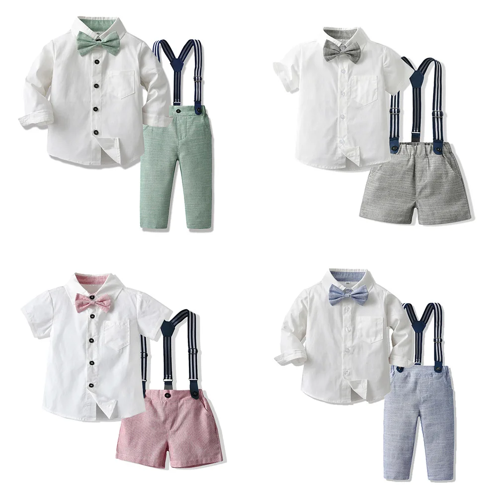 MQTIME - Kids Toddler Gentleman Party Dress Set Children Newborn Long-sleeved Cotton Shirt Bow Set Shirt Tops Suspender Pants with Tie
