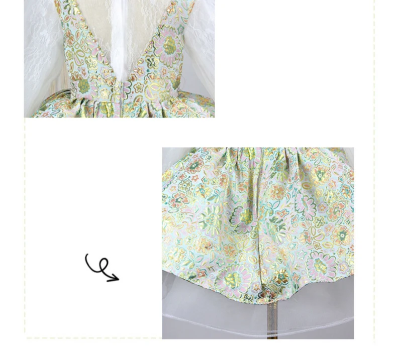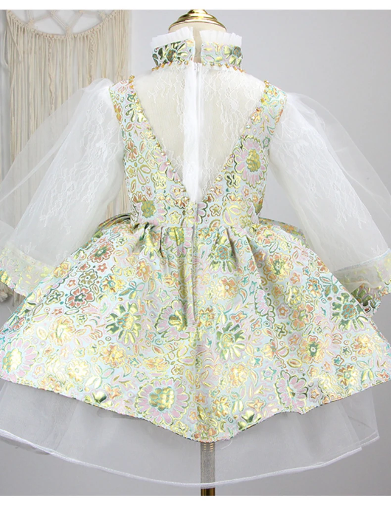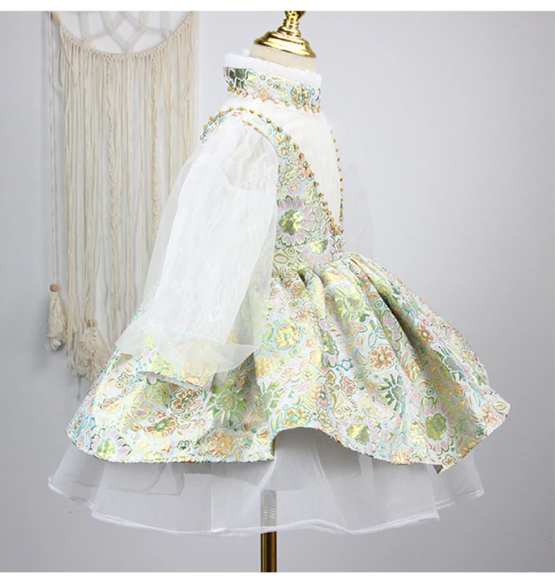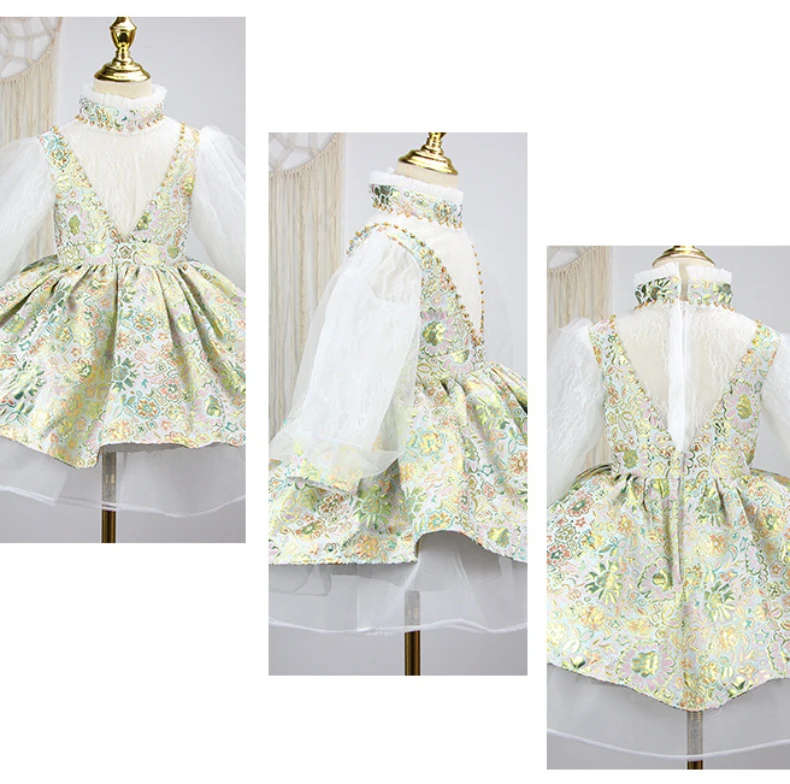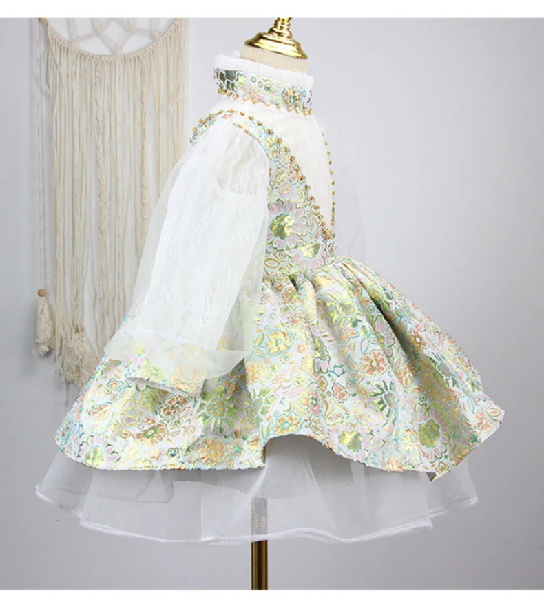 MQTIME - Kids Tulle Layered Flower Girl Dress Lace High O-Neck Puff Sleeve Formal Prom Gown Children Performance Dresses for 2-10Y
