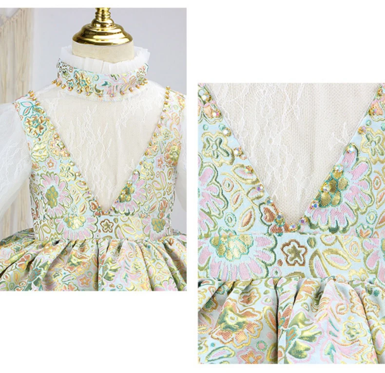 MQTIME  -  Kids Tulle Layered Flower Girl Dress Lace High O-Neck Puff Sleeve Formal Prom Gown Children Performance Dresses for 2-10Y