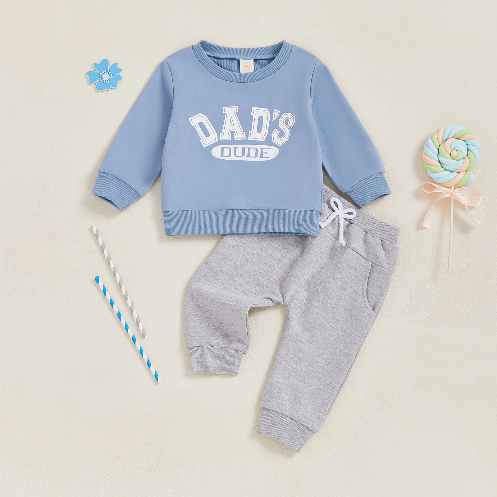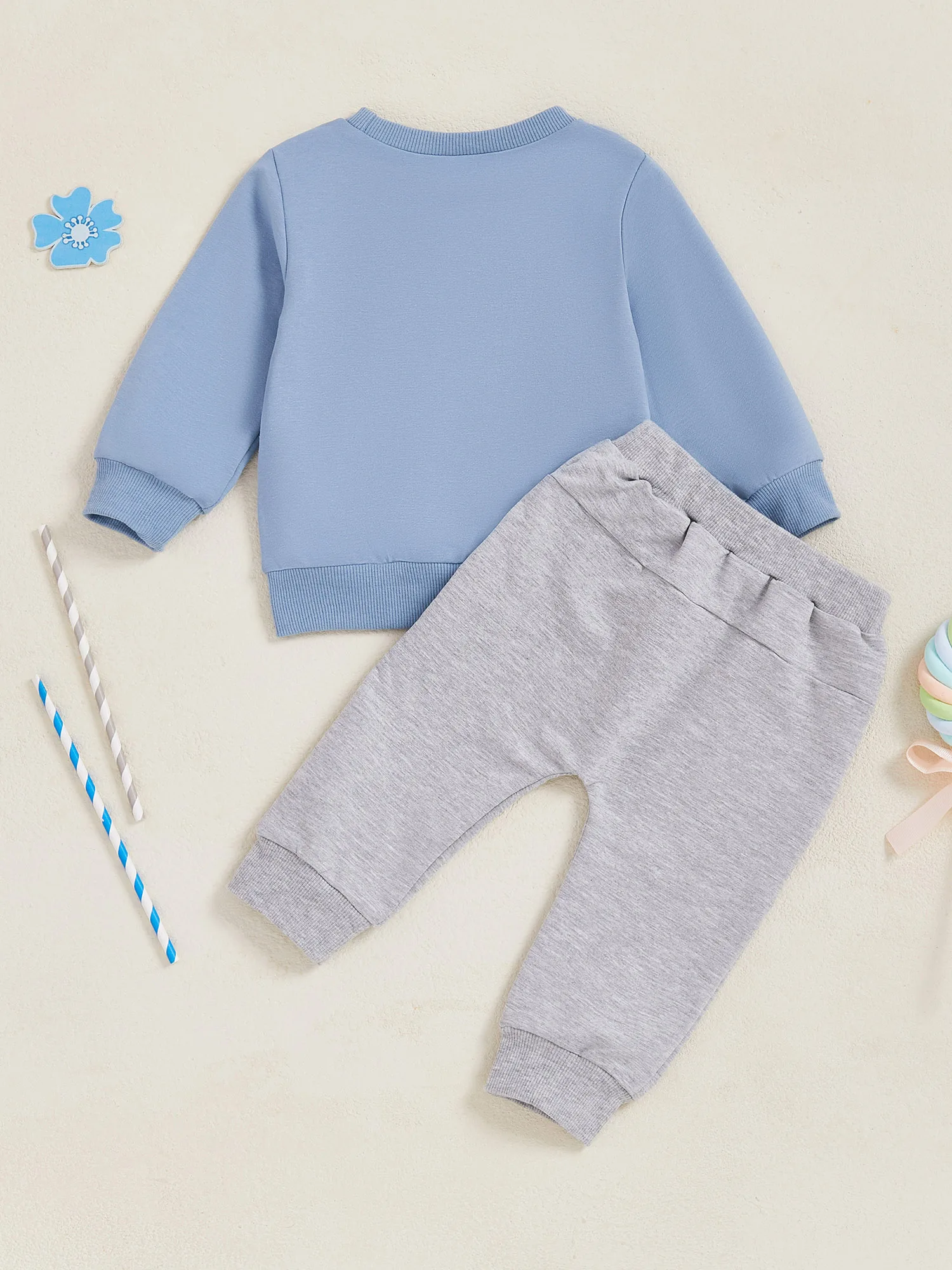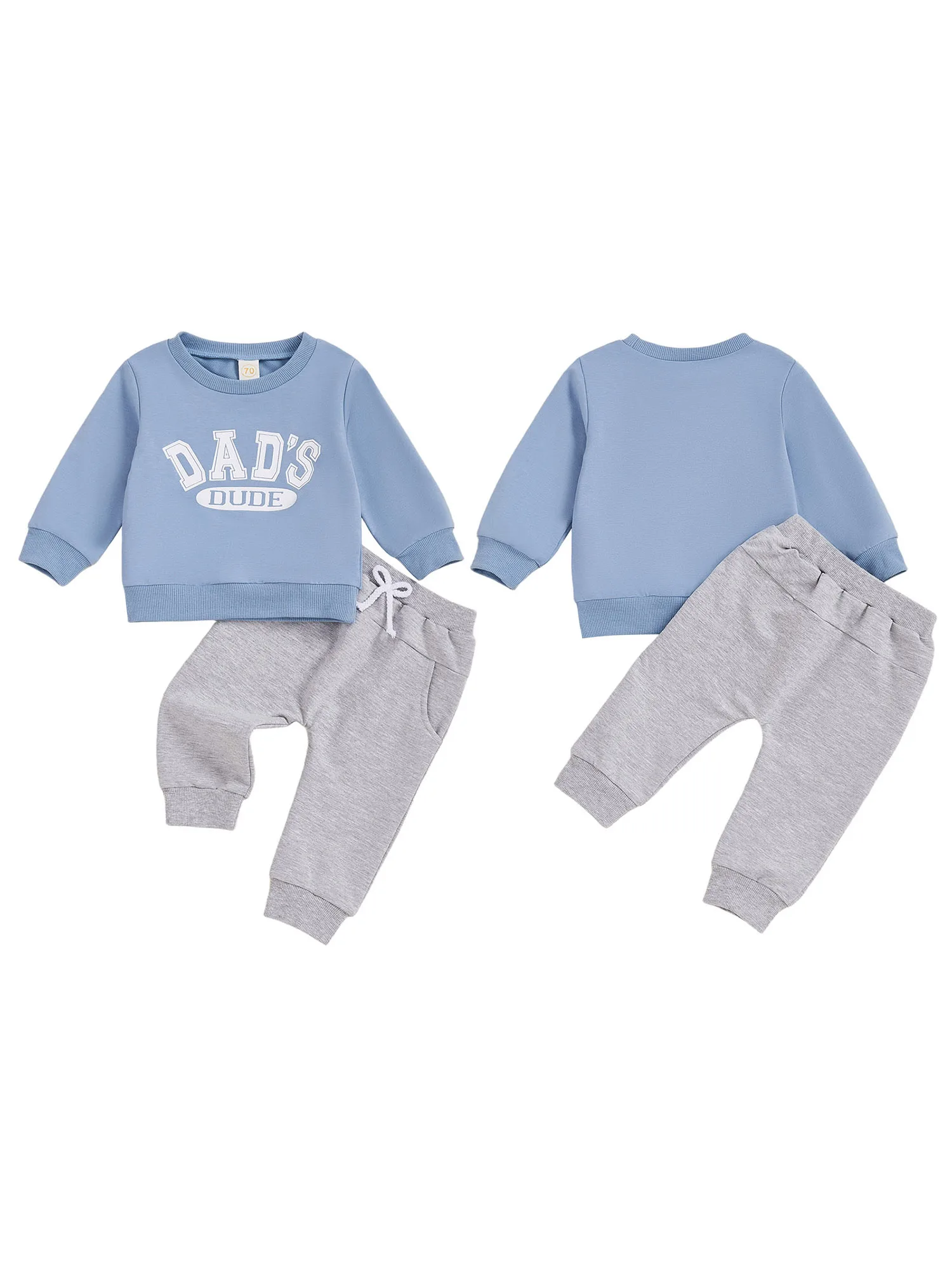 MQTIME - Kids Winter 2Pcs Outfits Crew Neck Graphic Print Sweater Solid Color Jogger Pants Warm Tracksuit Set for Boys
