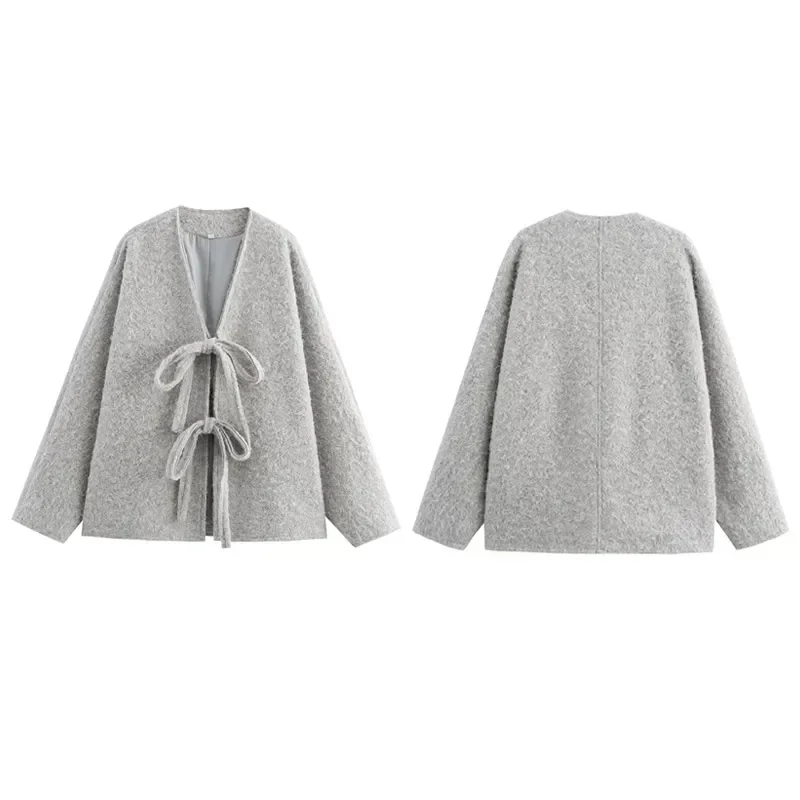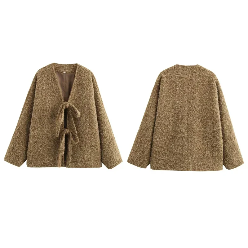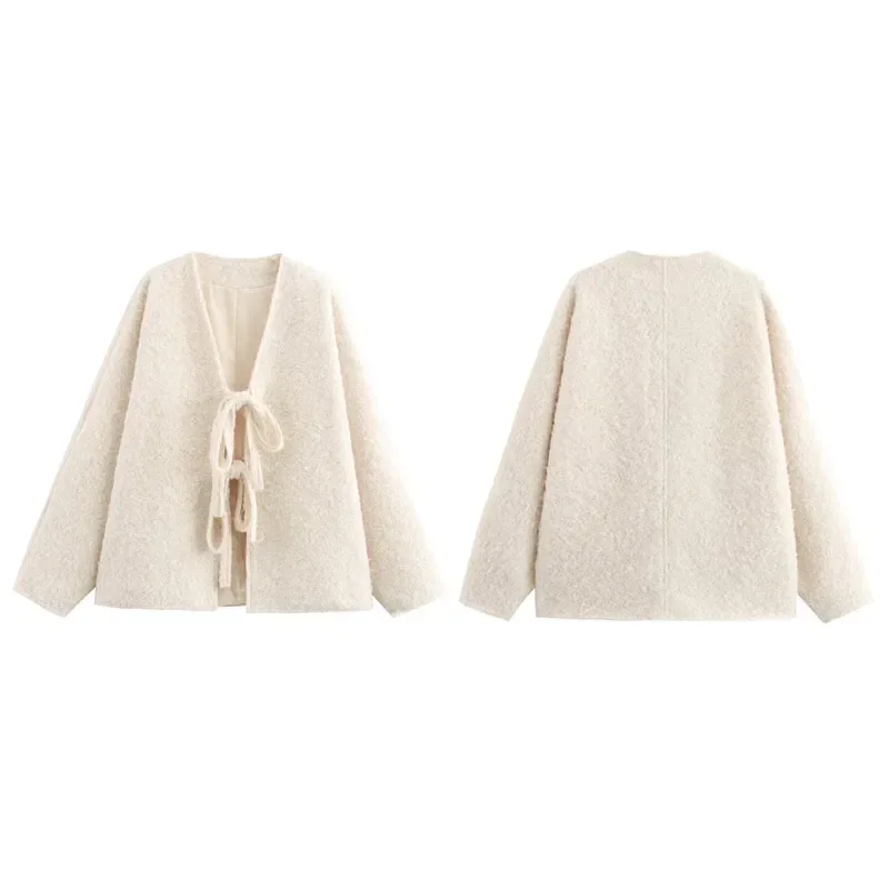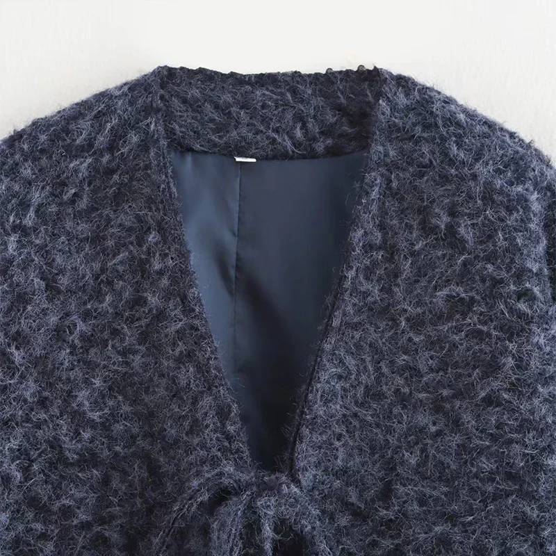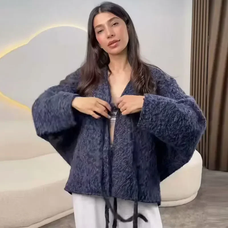 MQTIME - Knit Lace Up Women Cardigan Loose V Neck Hollow Out Long Sleeves Sweater Female 2024 Autumn Elegant Lady Knitwear