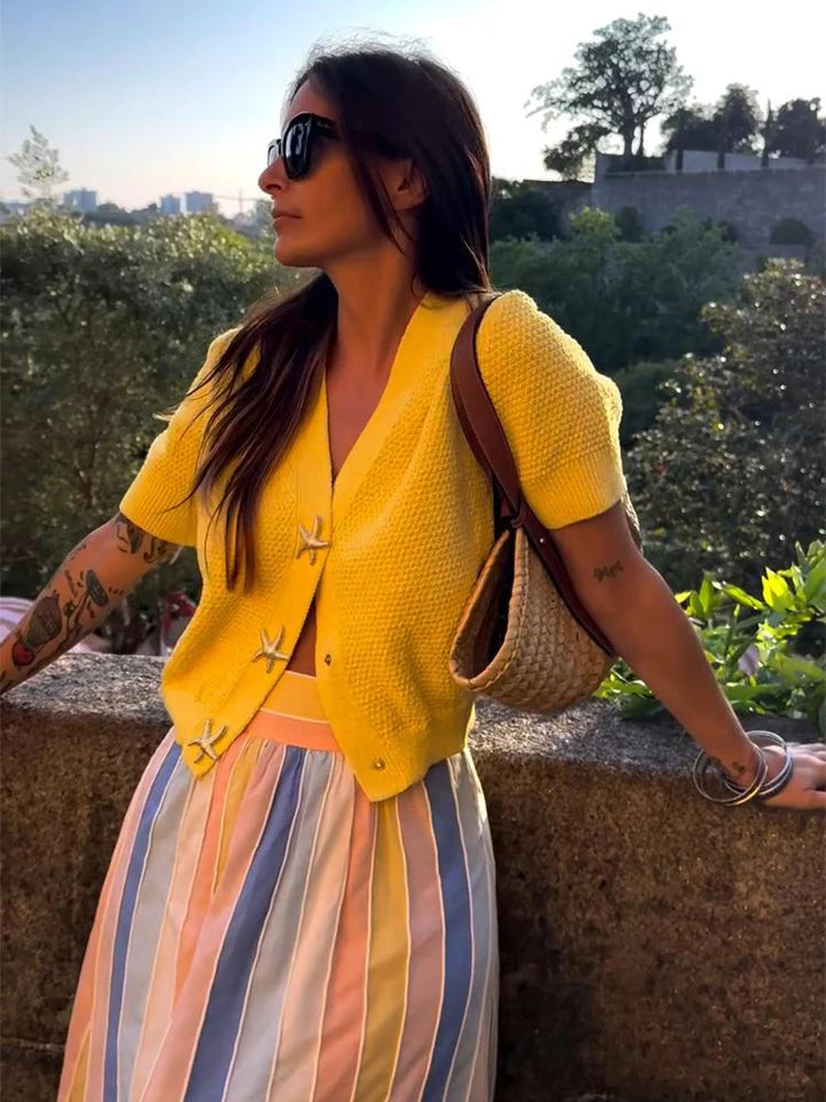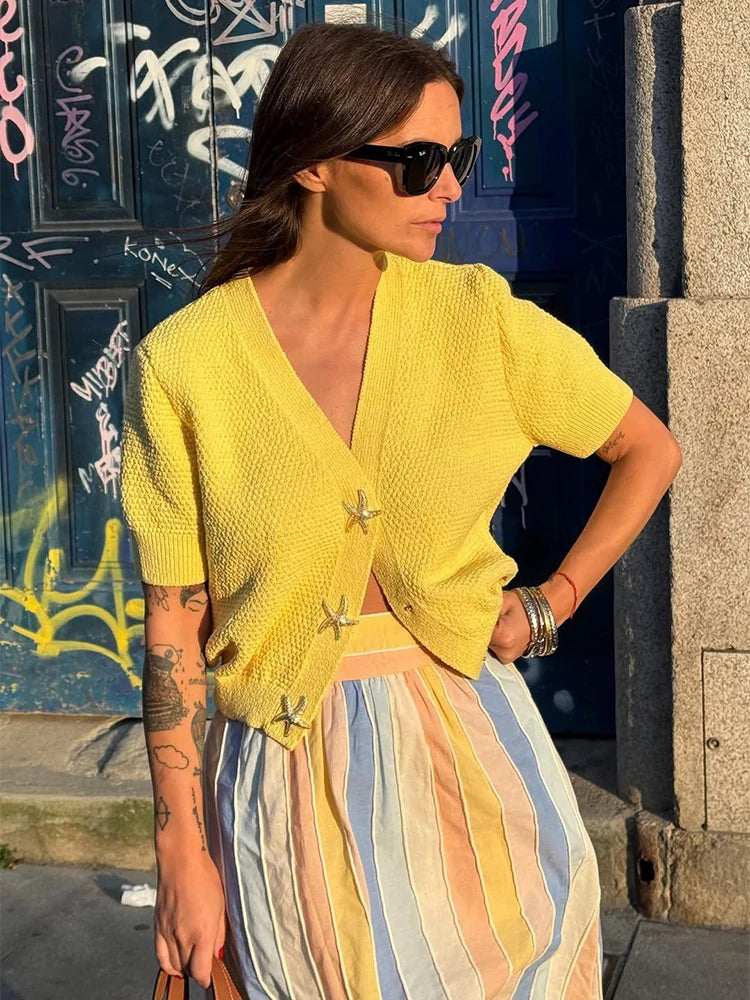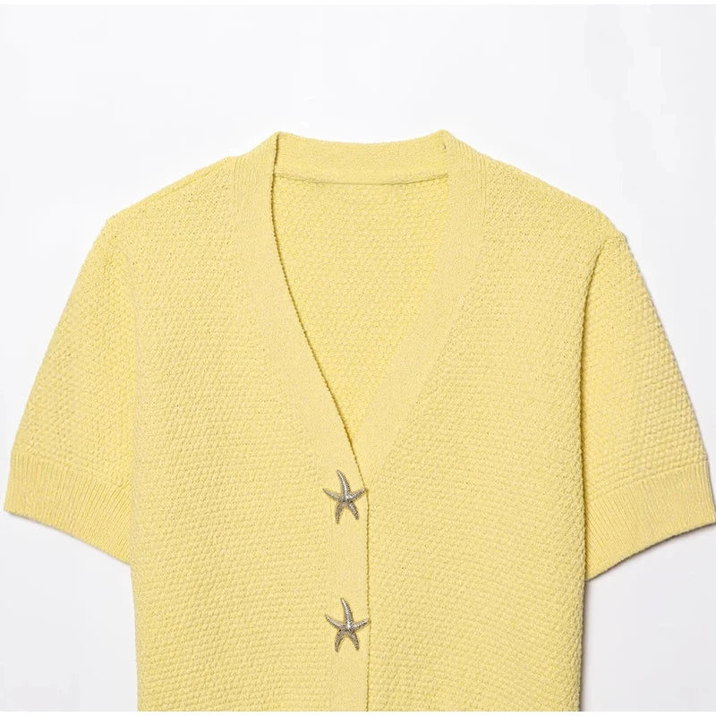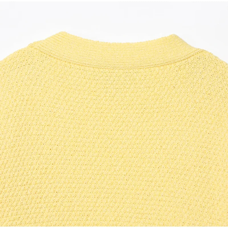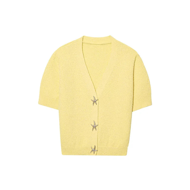 MQTIME - Knit Solid Women's Cardigan Fashion Loose Single-breasted Short Sleeve Female Sweater Summer V Neck Lady Knitwear 2025