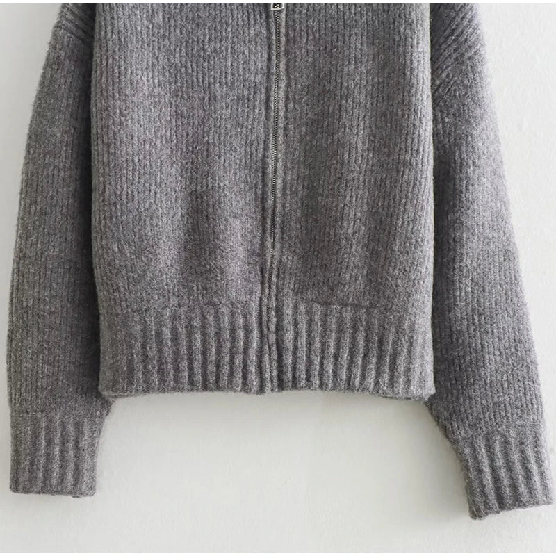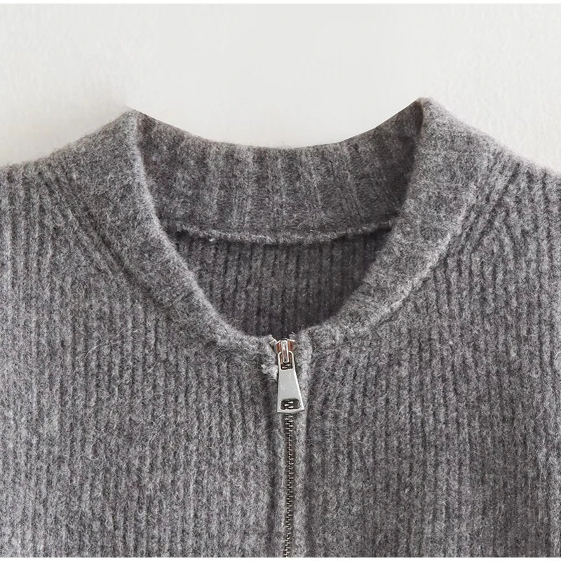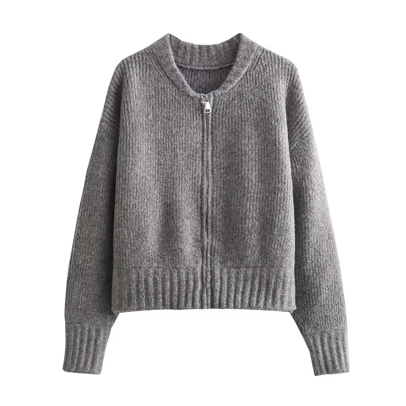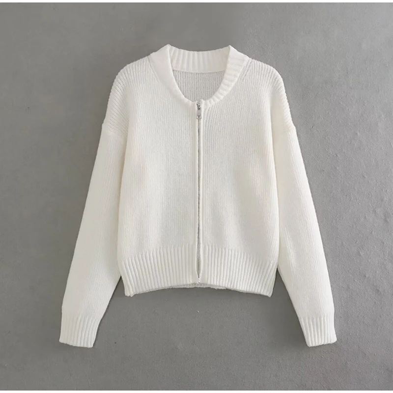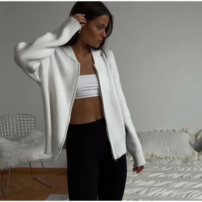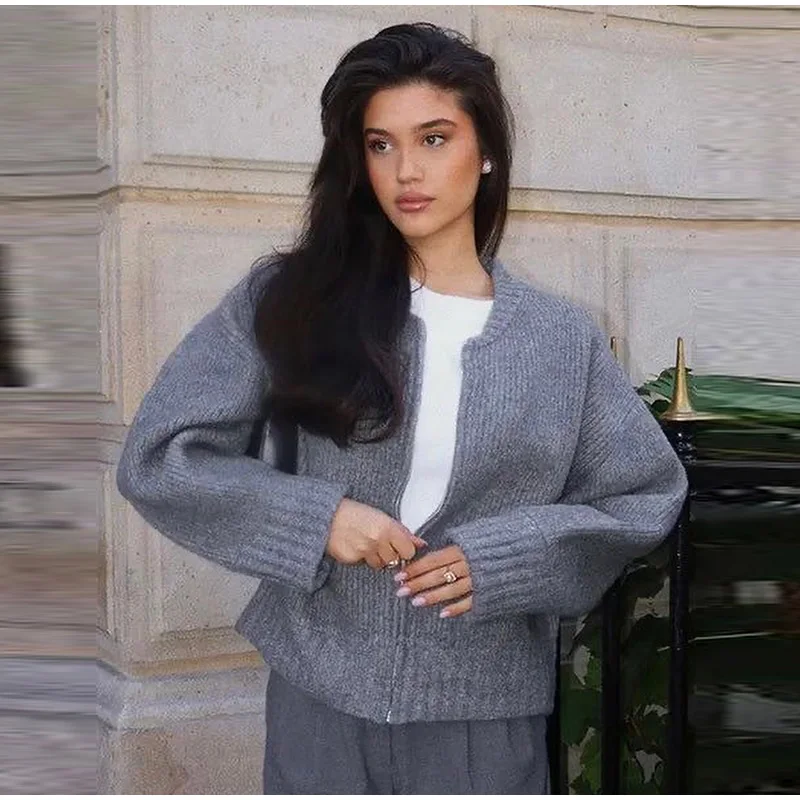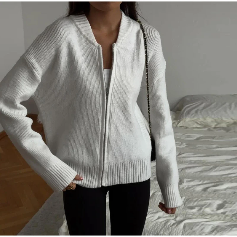 MQTIME - Knit Women Cardigan Casual Full Sleeve Zipper O Neck Pleated Solid Lady Sweater Top 2025 Autumn Fashion Female Knitwear