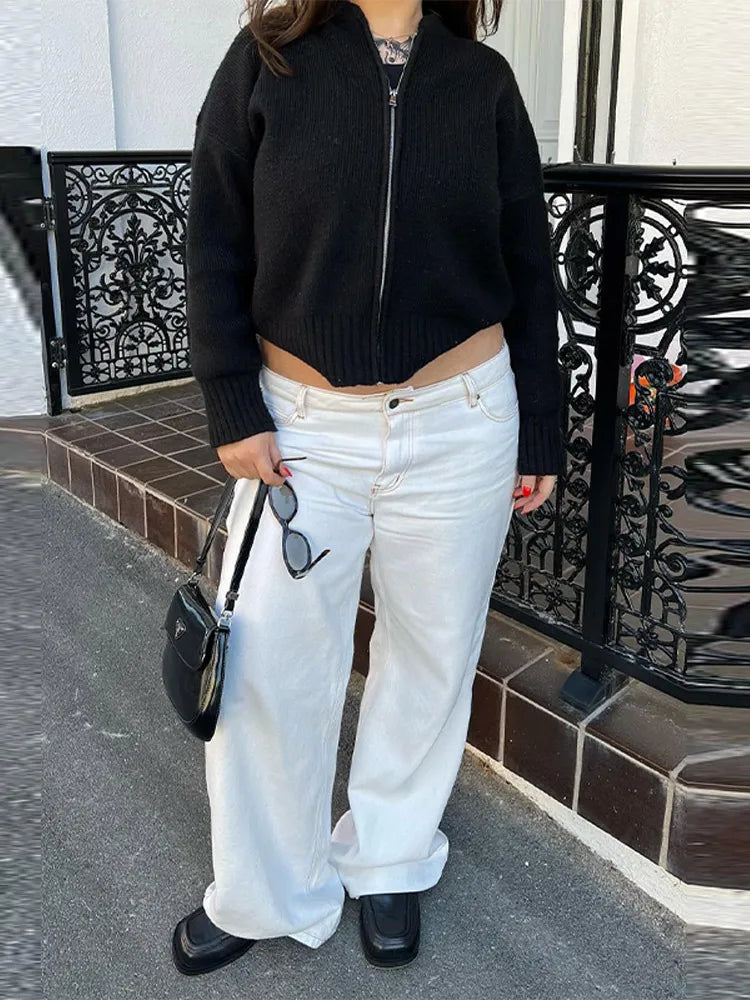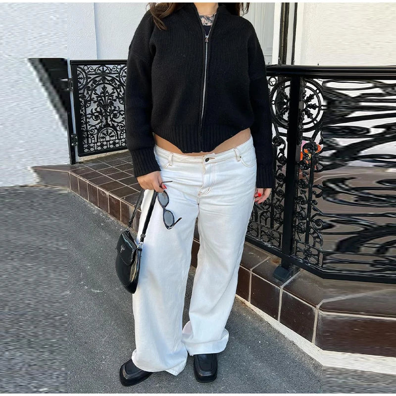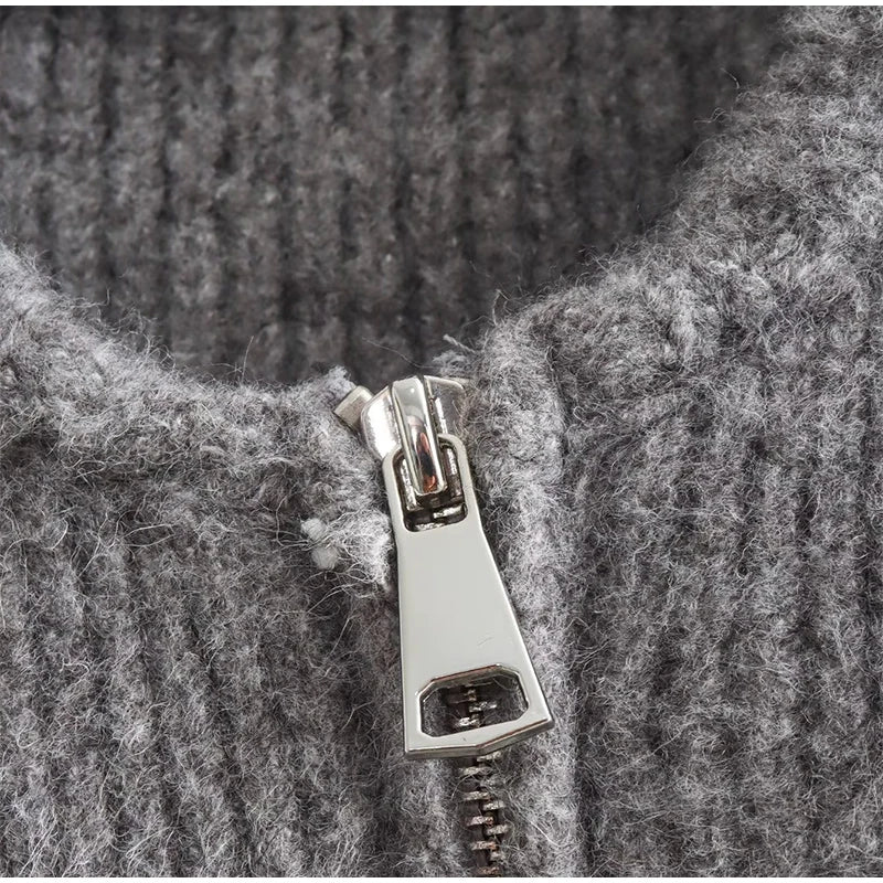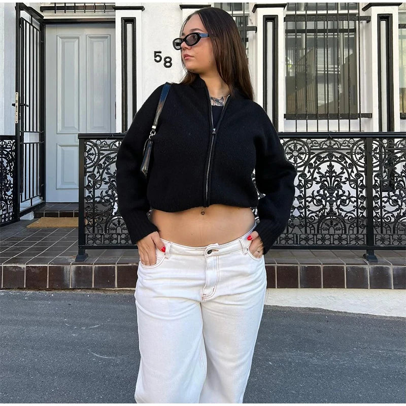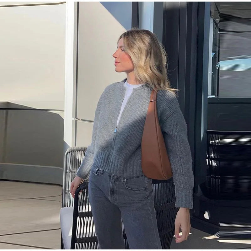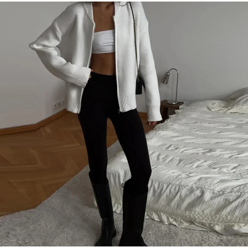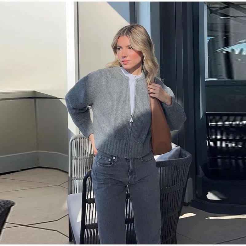 MQTIME - Knit Women Cardigan Casual Full Sleeve Zipper O Neck Pleated Solid Lady Sweater Top 2025 Autumn Fashion Female Knitwear