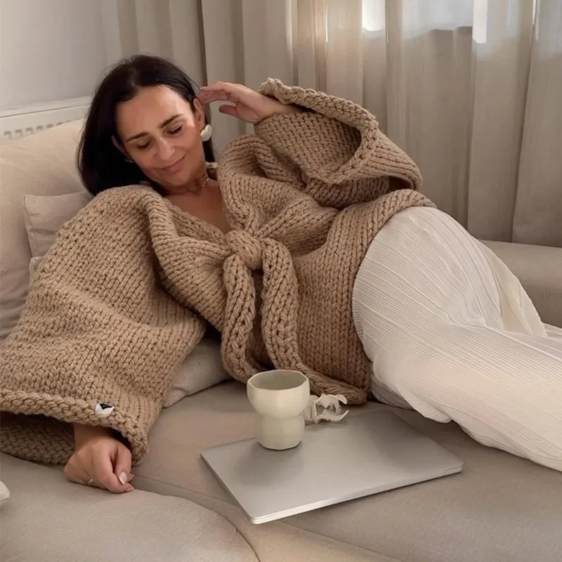 MQTIME - Knitted Lace Up Bow Women Sweater Oversize Solid Lady Pullover 2024 Fashion Oversize Autumn V Neck Loose All Match Female Top