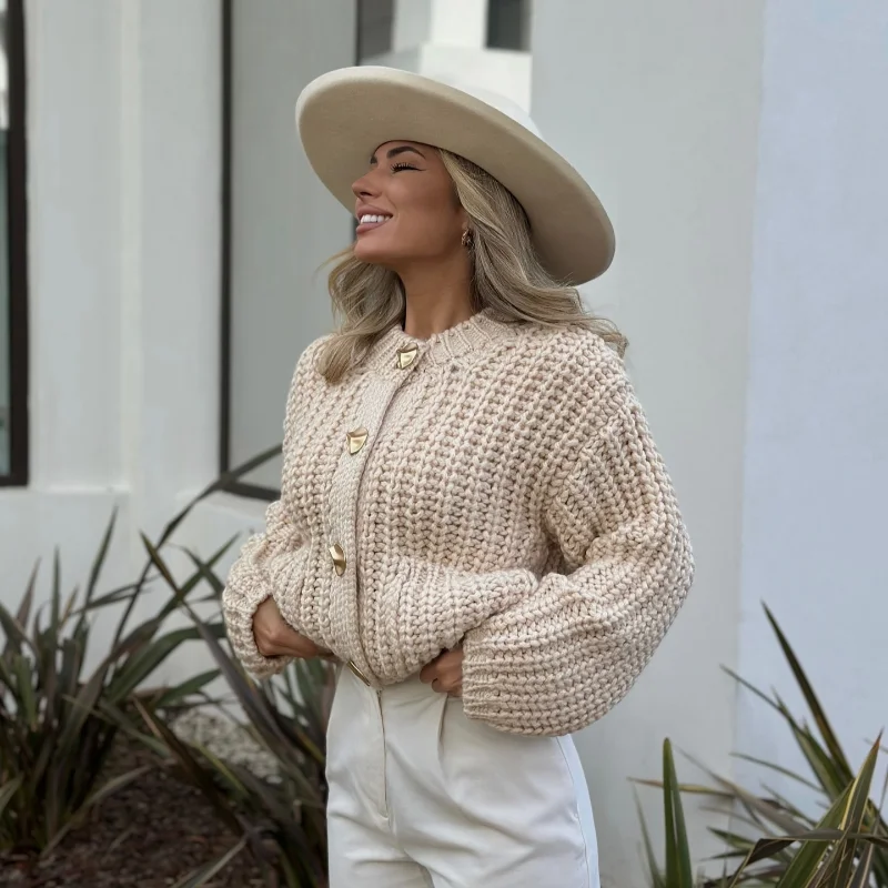 MQTIME - Knitted Single Breasted Cardigan Women Casual Solid O-neck Pockets Long Sleeve Sweater 2024 Autumn Winter New Lady Cozy Outwear