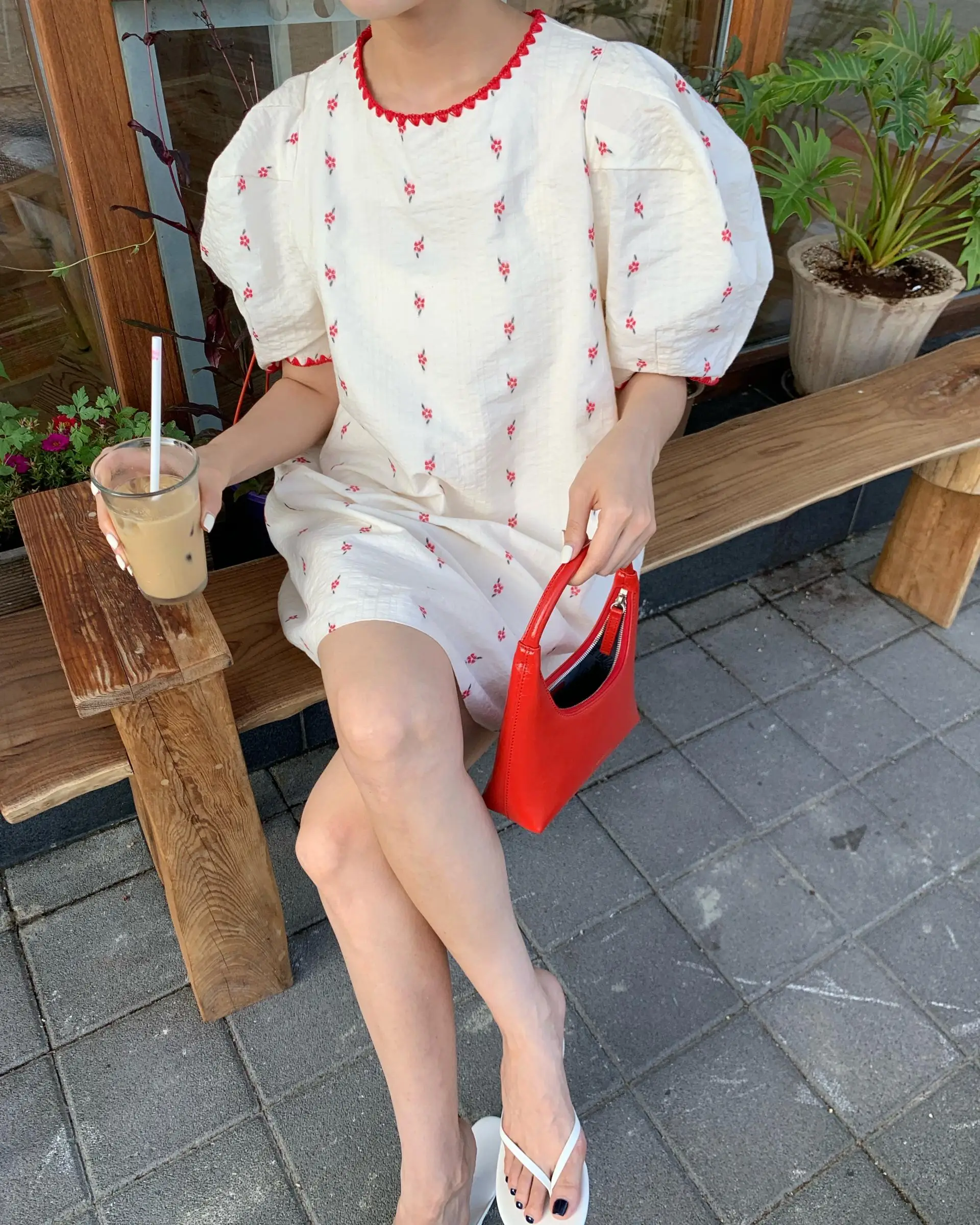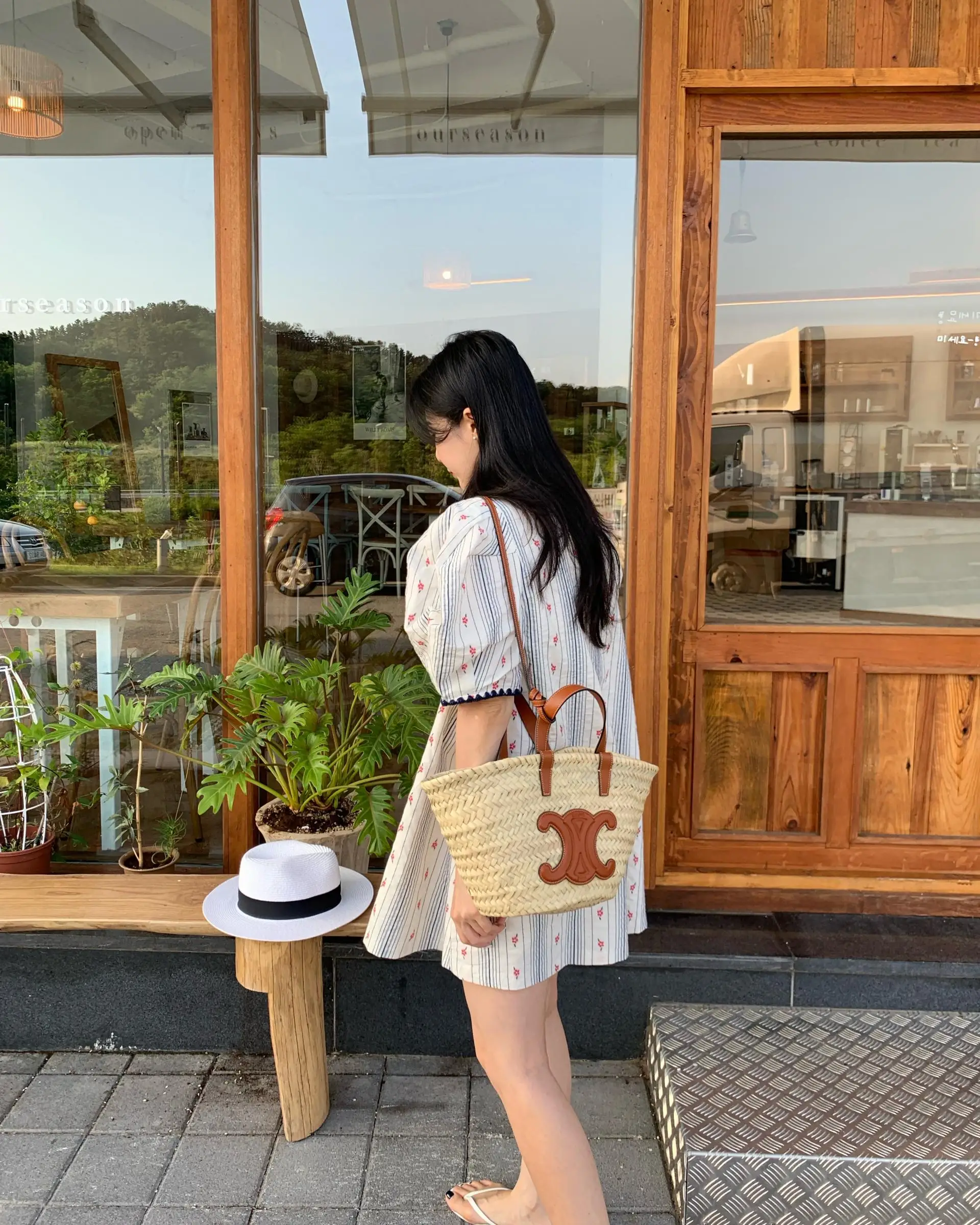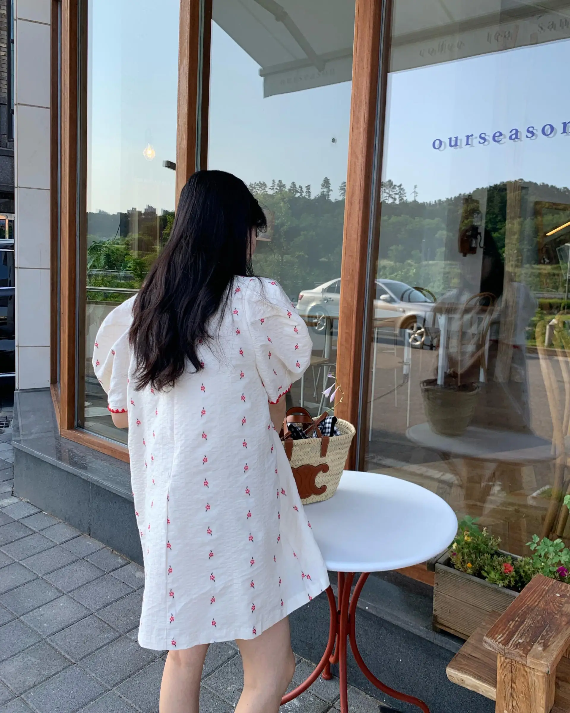 MQTIME - Korean Fashion Ins Dress Bubble Sleeve Age Reduction Skirt Female Vestidos New Summer Contrast Color Striped Dresses
