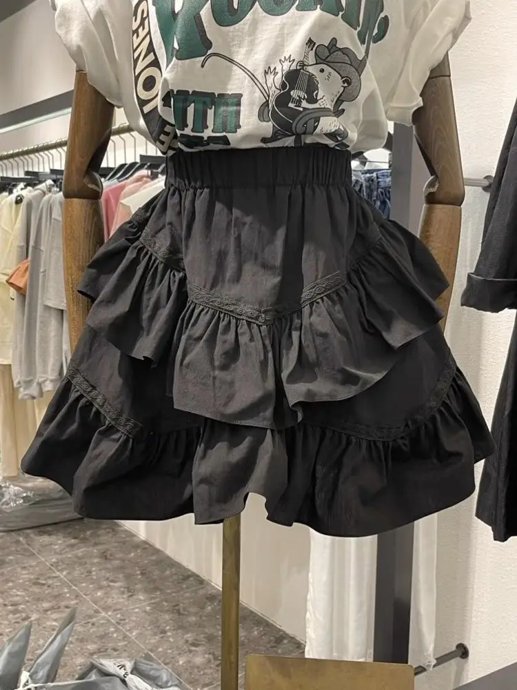 MQTIME  -  Korean Fashion Summer New Chic Sweet Ruffle Edge Spliced Black Skirt Elastic High Waist Slimming Fluffy Short Skirts for Women