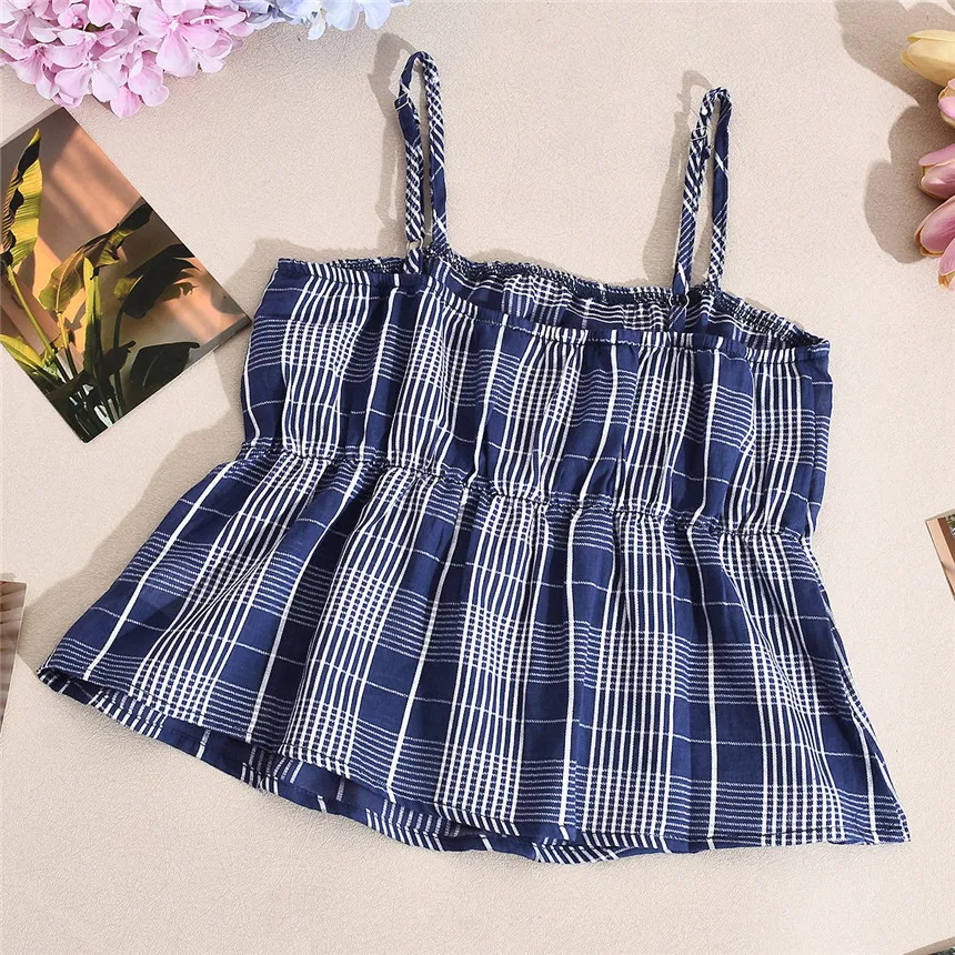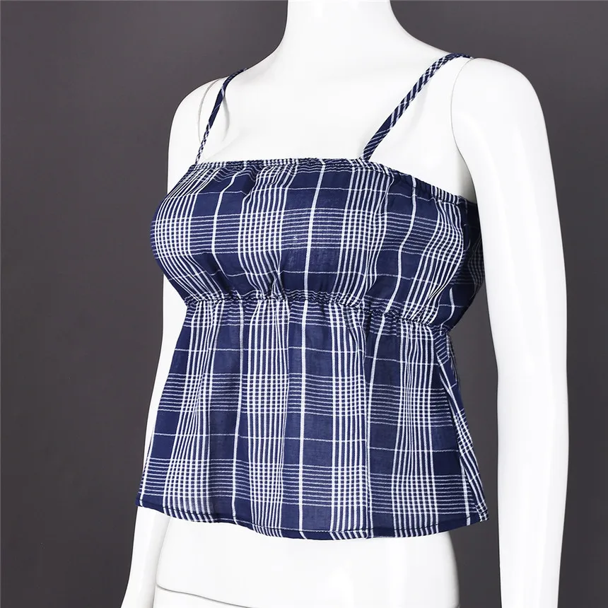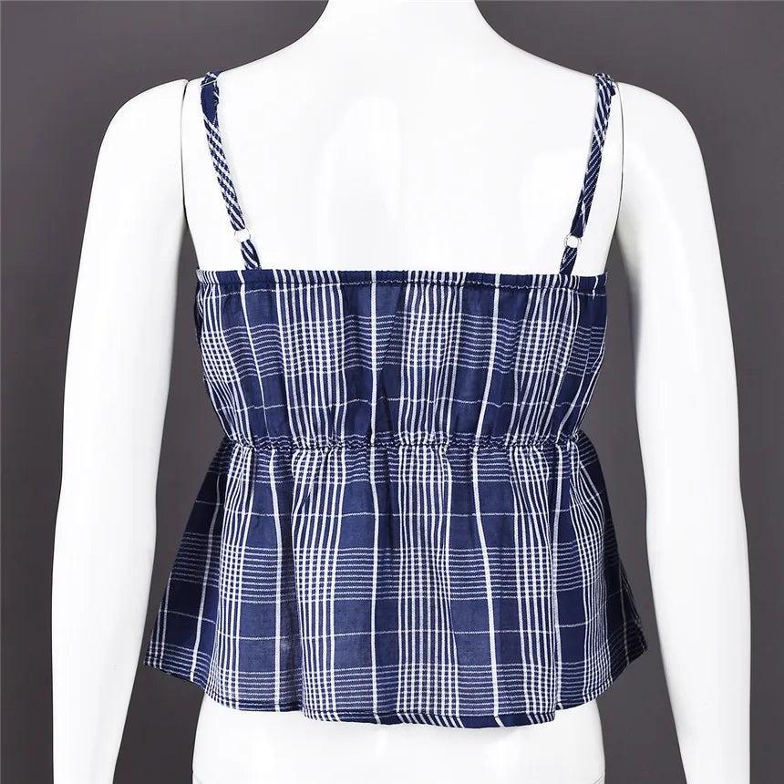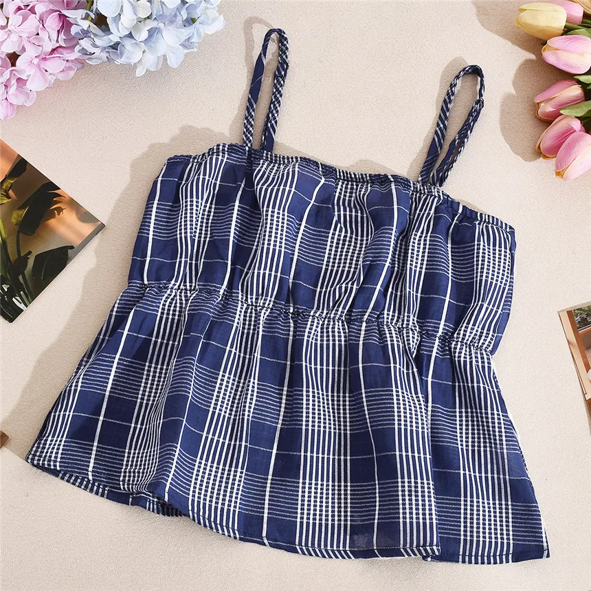 MQTIME - Korean Plaid Patchwork Slim Casual Spaghetti Strap Top Retro Y2K Sleeveless Backless Tank Top 2025 Summer New Streetwear Camis