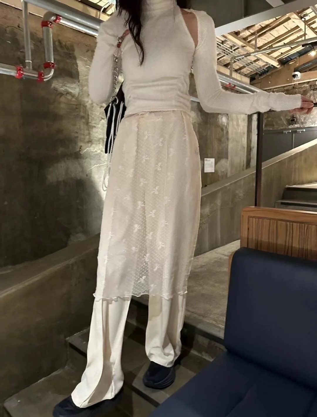 MQTIME - Korobov Bow Pattern Design Skirts Fold Through Mesh Gauze Skirts Woman Lace Straight Skirt Korean Fashion Faldas Para Mujeres