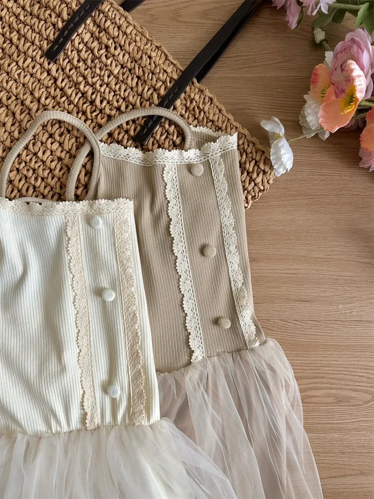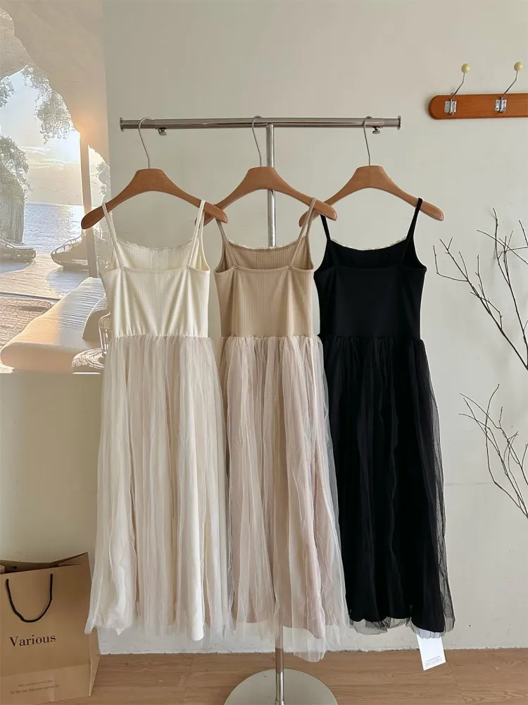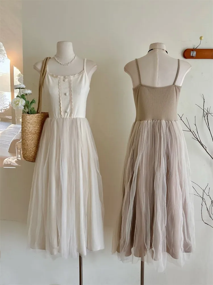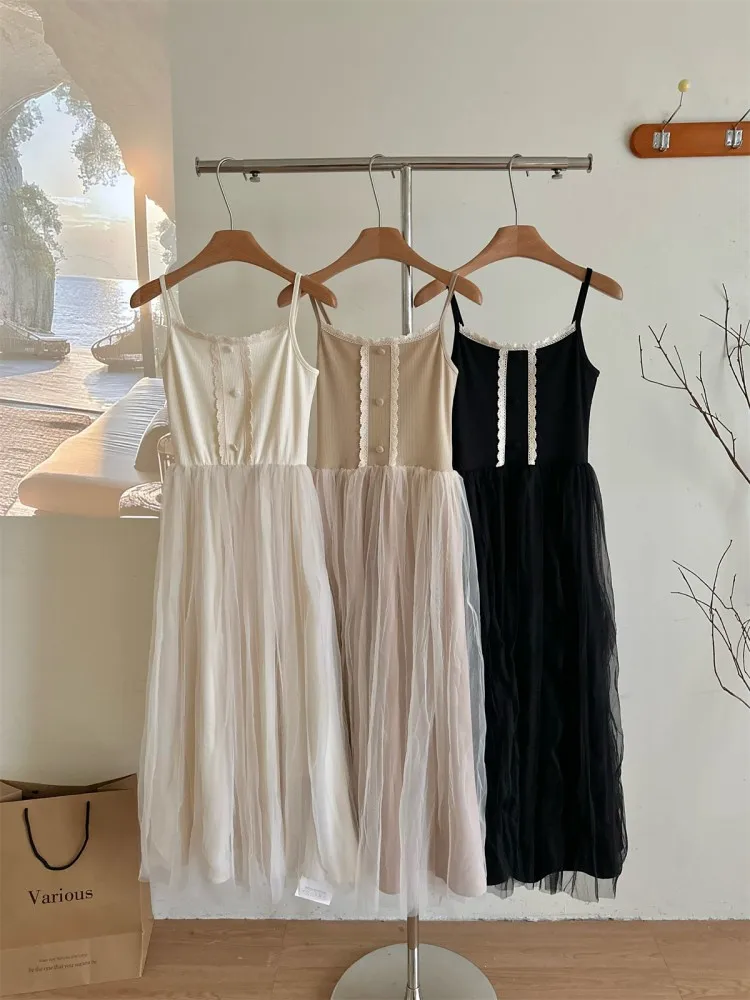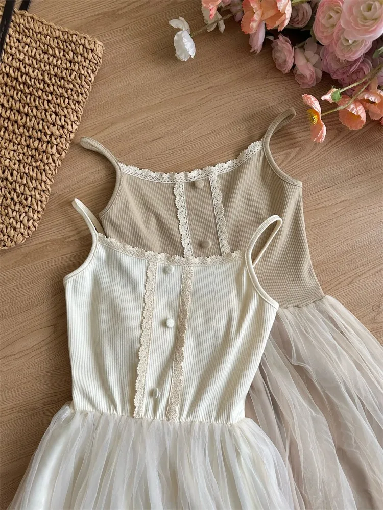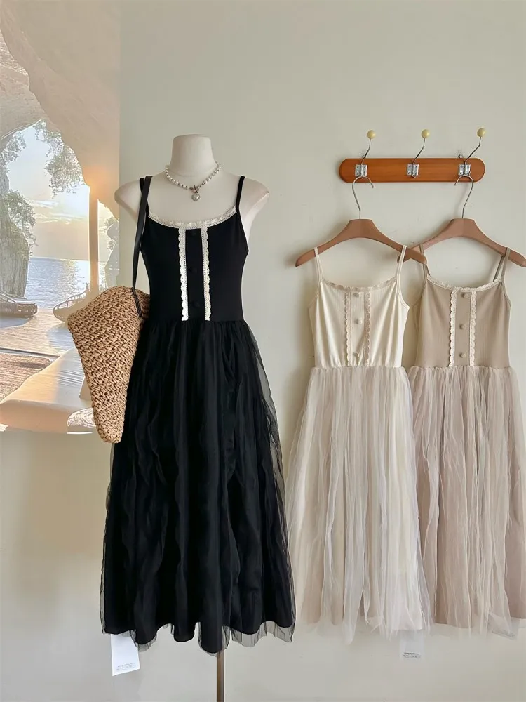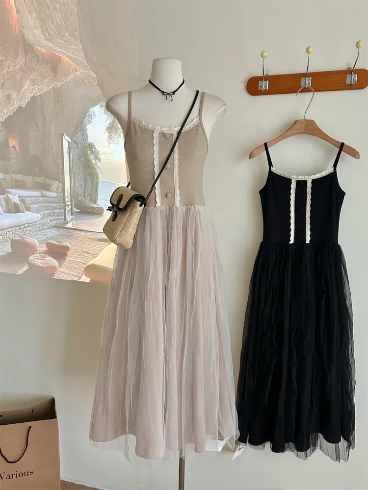 MQTIME - Lace Edge Camisole Dress For Women'S 2024 Summer New Korean Version Slim Fit Patchwork Yarn Age Reducing Dress