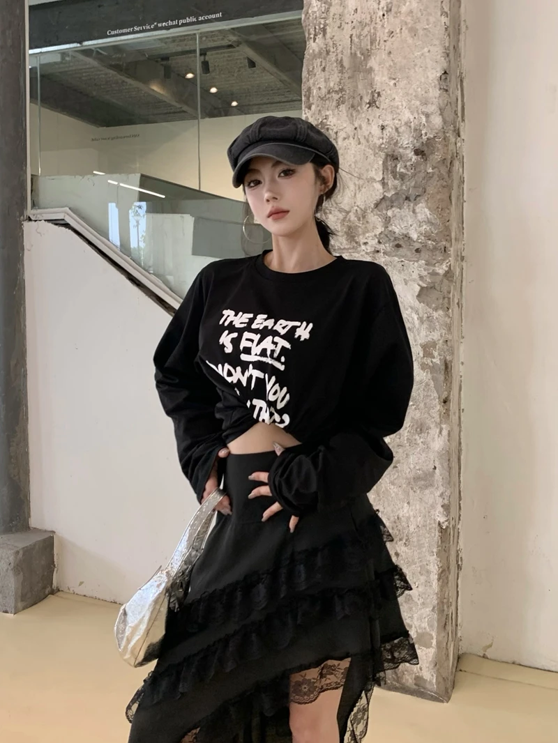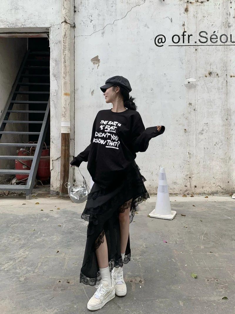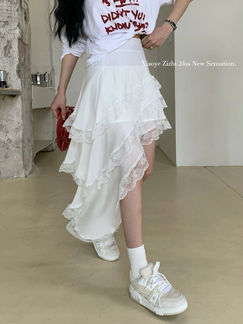 MQTIME  -  Lace Irregular Skirt Women Clothing Summer French Fashion Faldas Cake Skirt Slim High-waisted Mid-length A-line Skirts