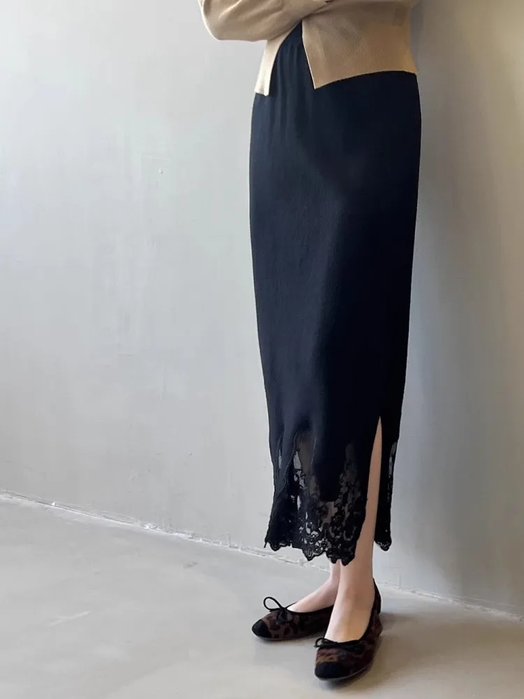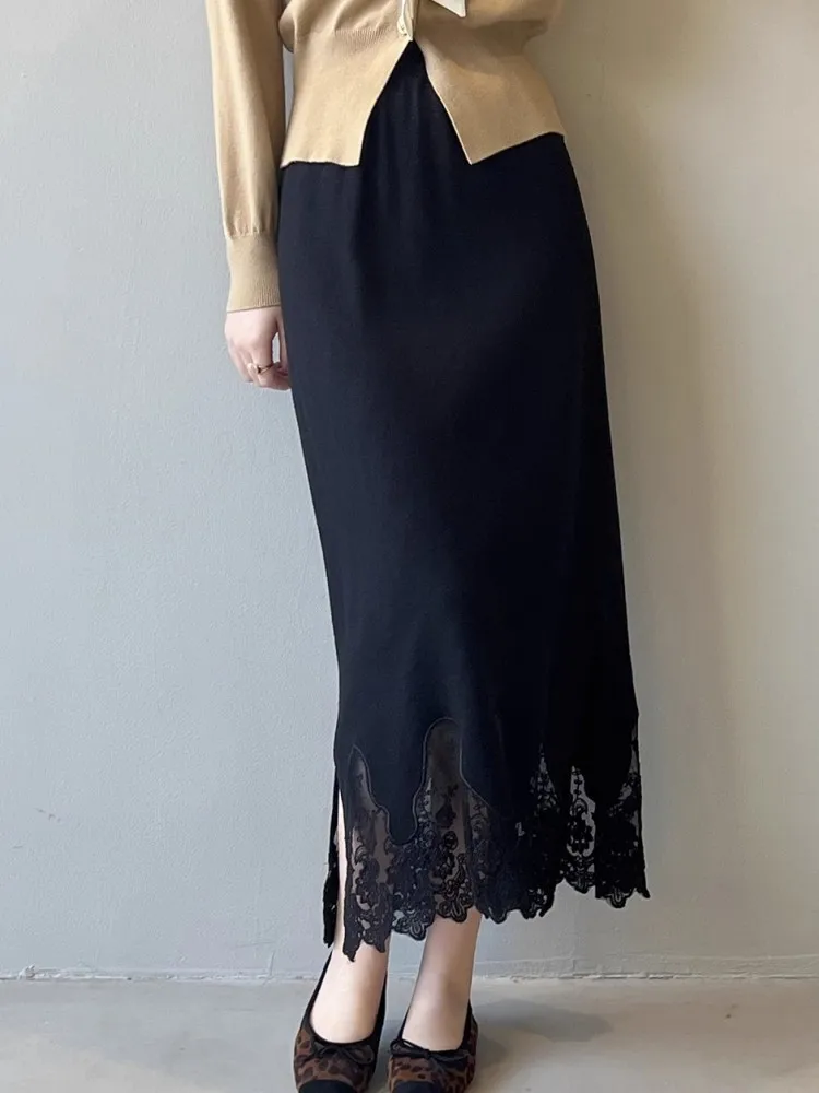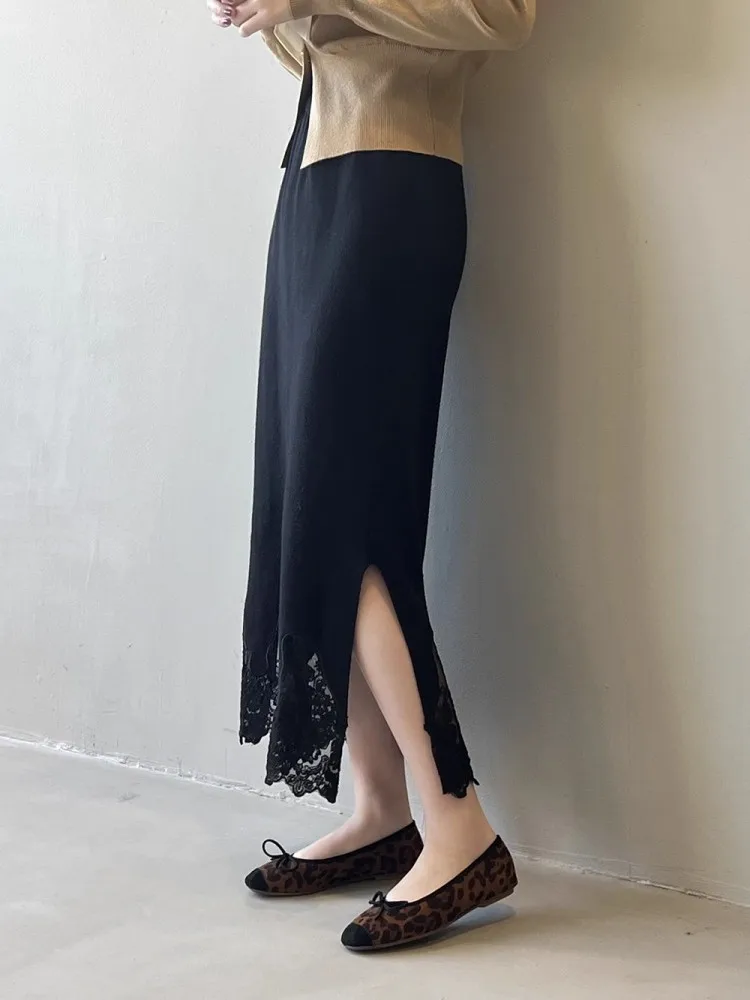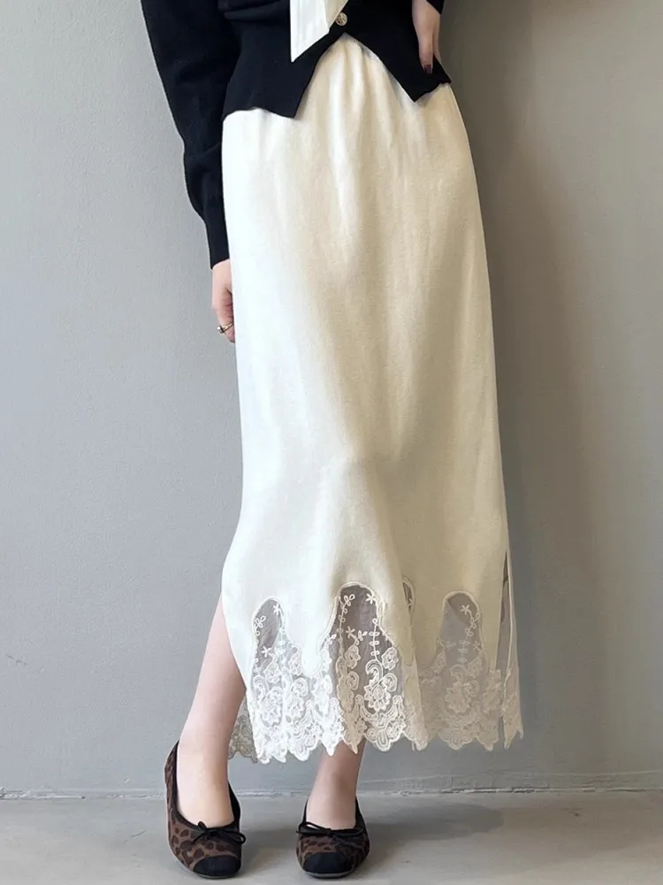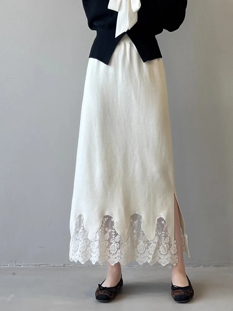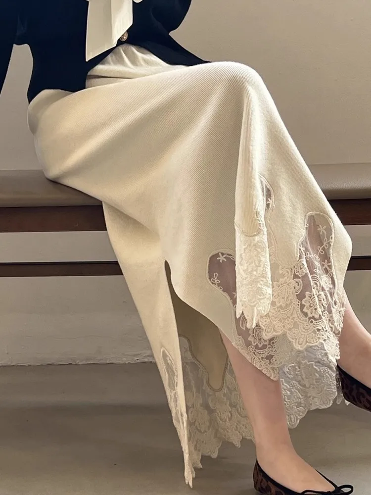 MQTIME - Lace Knitted Skirt For Women'S Winter High Quality Design, Thickened Split Elegant And Unique Slim Fit Skirt