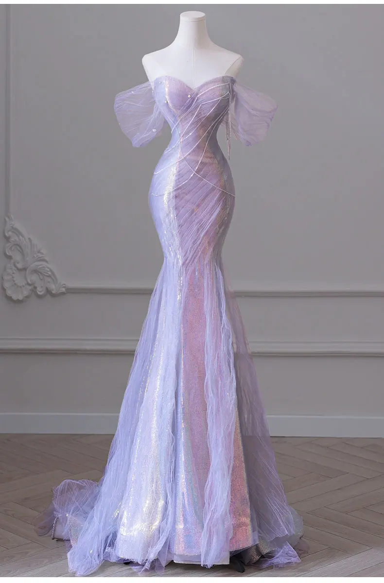 MQTIME - Light Luxury Dress One Shoulder Evening Dress Fish Tail Dress Bride Dress Engagement Banquet Fairy Purple Dress Party Gown
