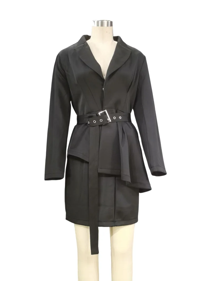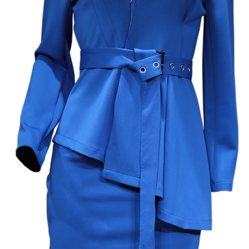 MQTIME  -  Long-sleeved Ruffles Suit Fashionable High-waist Skirt Suits Autumn New Elegant Sets for Women 2 Pieces wIth Belt