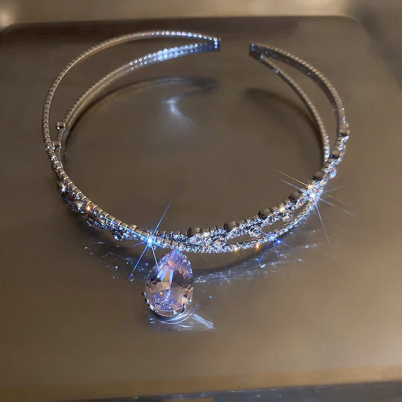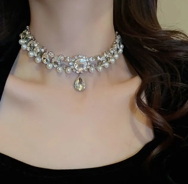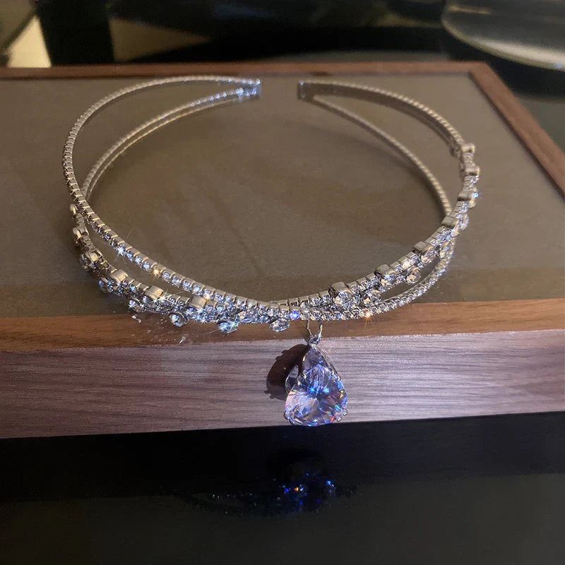 Mqtime Luxury Crystal Choker Necklace for Women Water Drop Pendant Necklace Trend Weddings Jewelry Party Gifts
