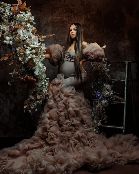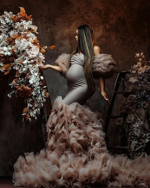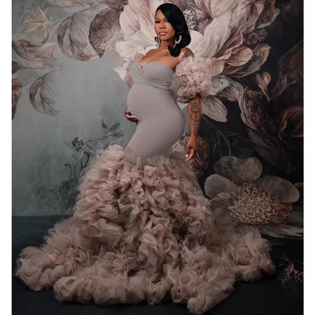 MQTIME - Mermaid Prom Dress Sweetheart Detachable sleeves Pregnancy Photography Props Fitted Ruched Customized Maternity Dress For Photo