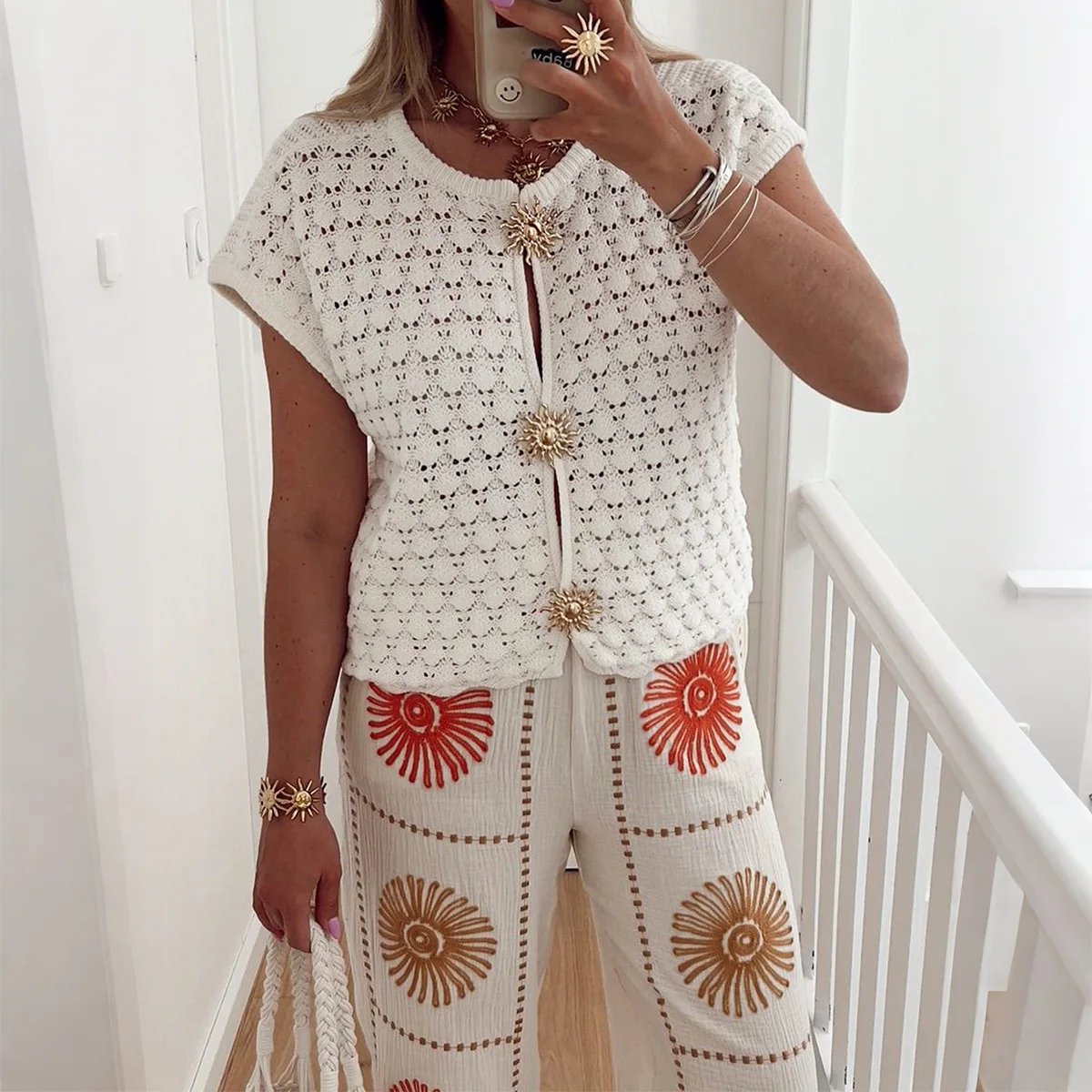 MQTIME  -  Minimalist Vacation Short Sleeved Hollowed Out T-shirt, Woolen Women's Clothing, Autumn and Winter 2025