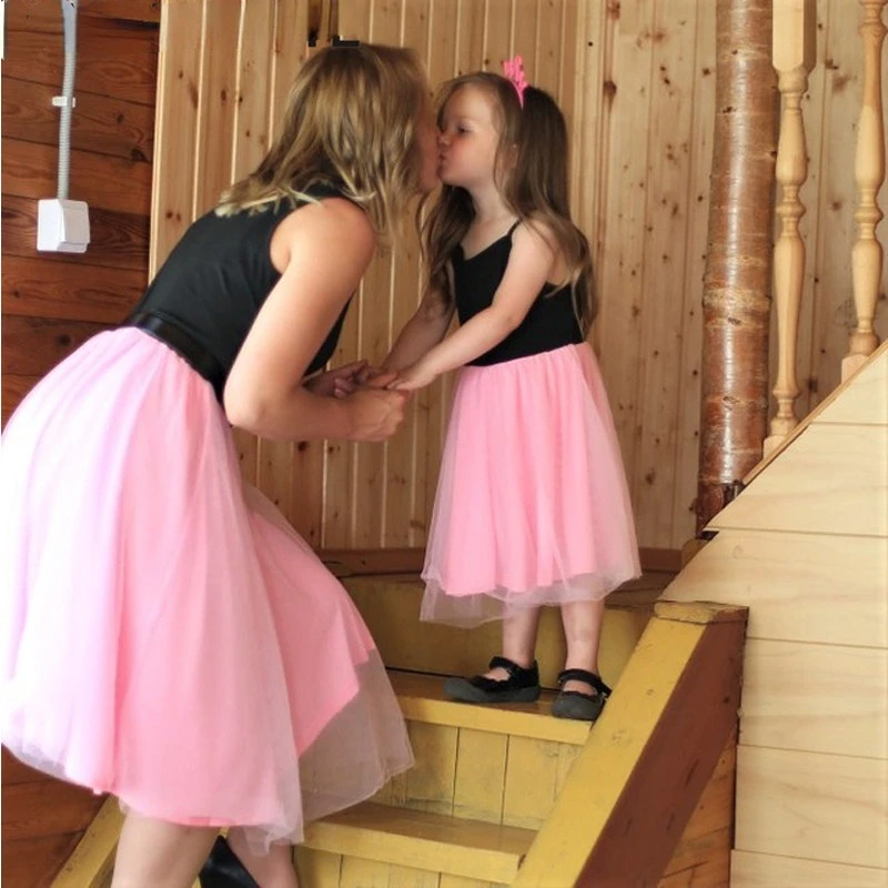MQTIME  -  Mom and Daughter Dress Patchwork Mesh Princess Dress Summer Sleeveless Mommy and Me Clothes Family Look Women Girls Dress
