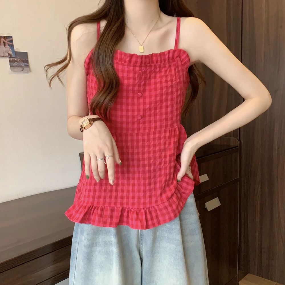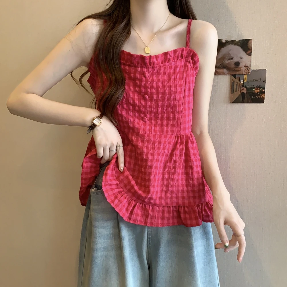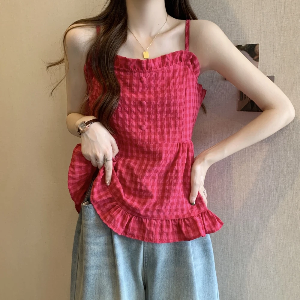 MQTIME - Mushroom edge versatile rose red cute chubby sister camisole tank top large women's shirt M-4XL 100kg Y2K