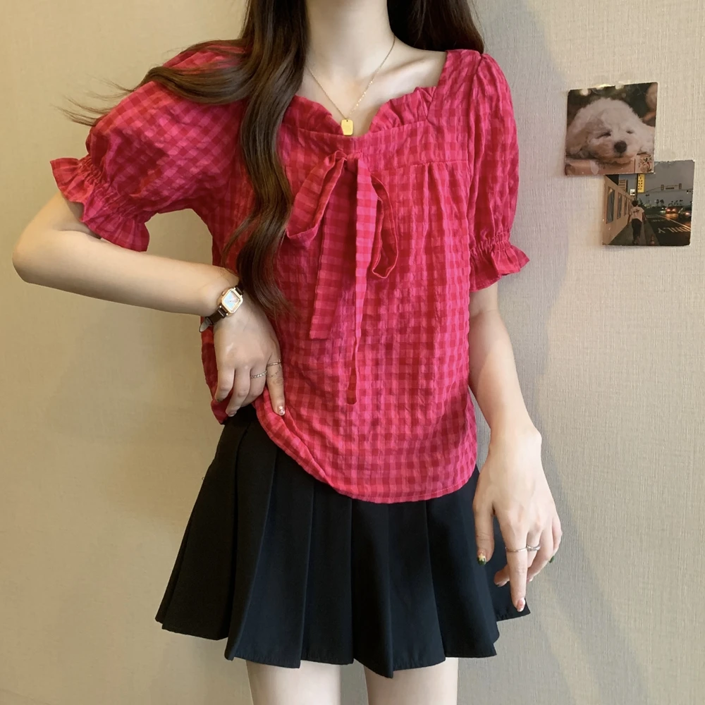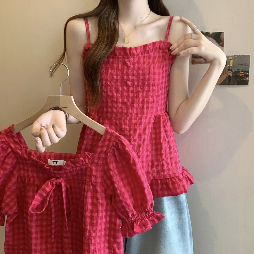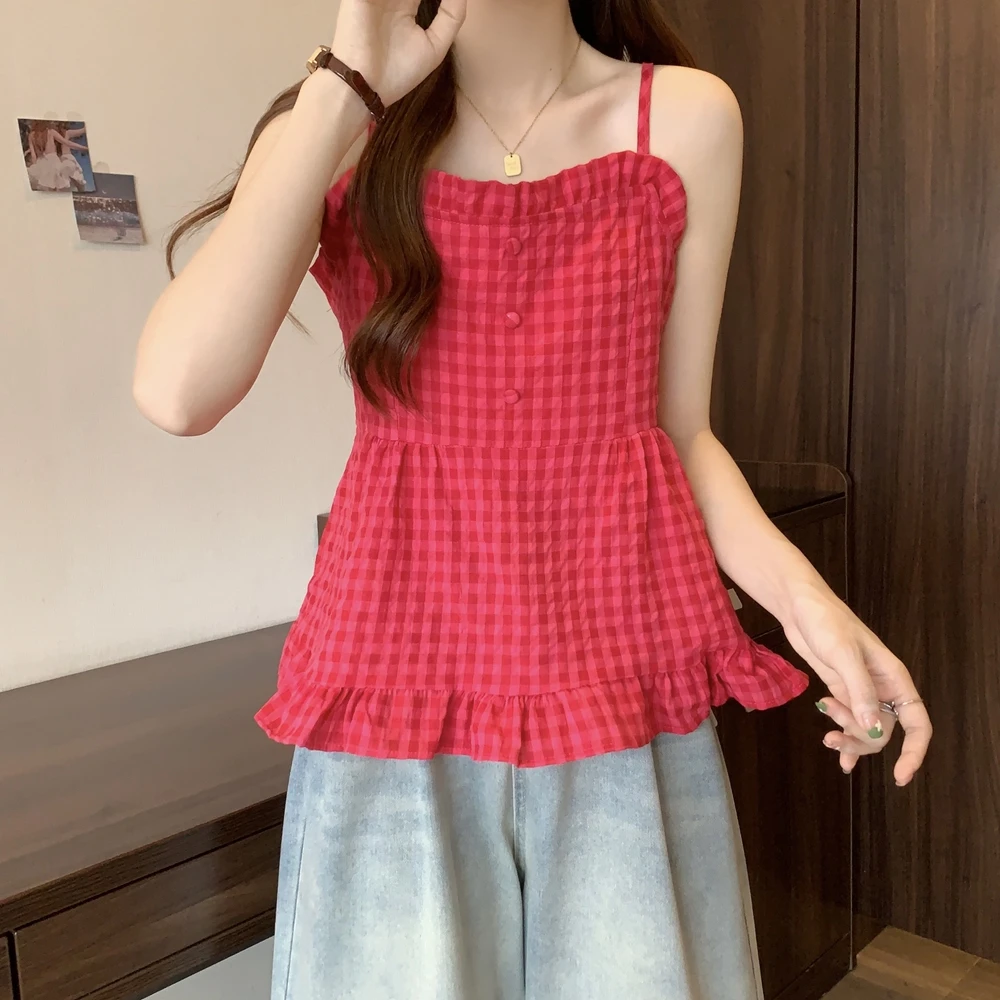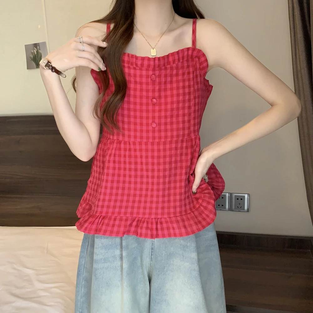 MQTIME - Mushroom edge versatile rose red cute chubby sister camisole tank top large women's shirt M-4XL 100kg Y2K