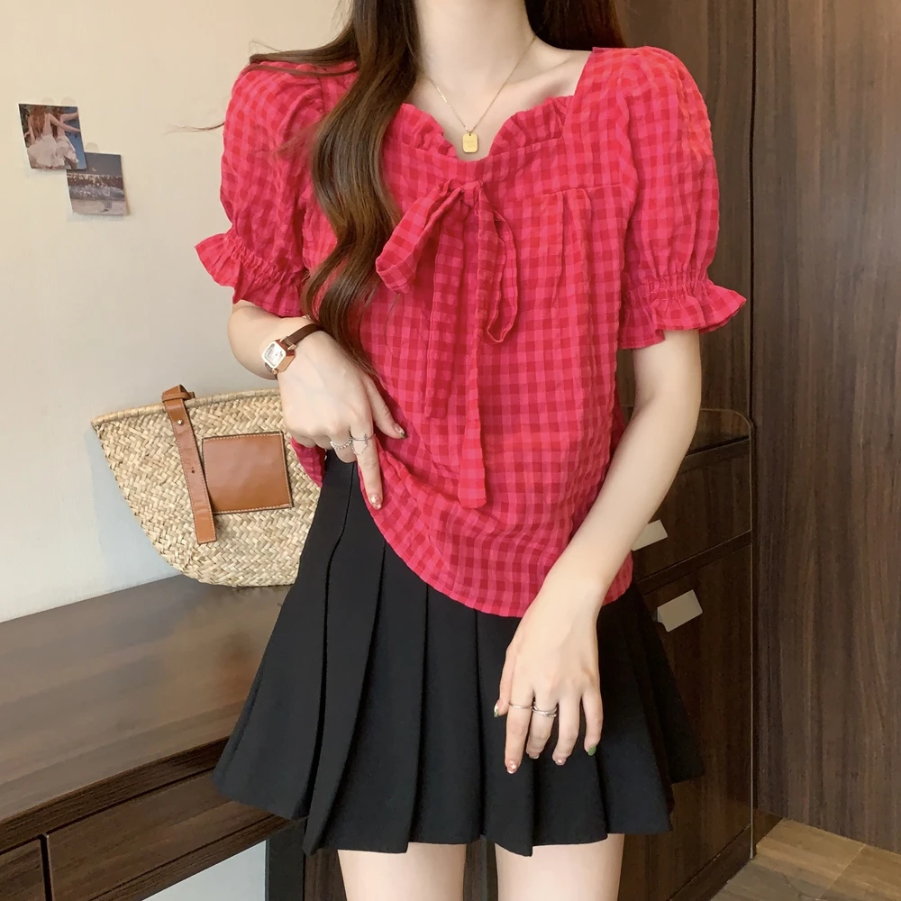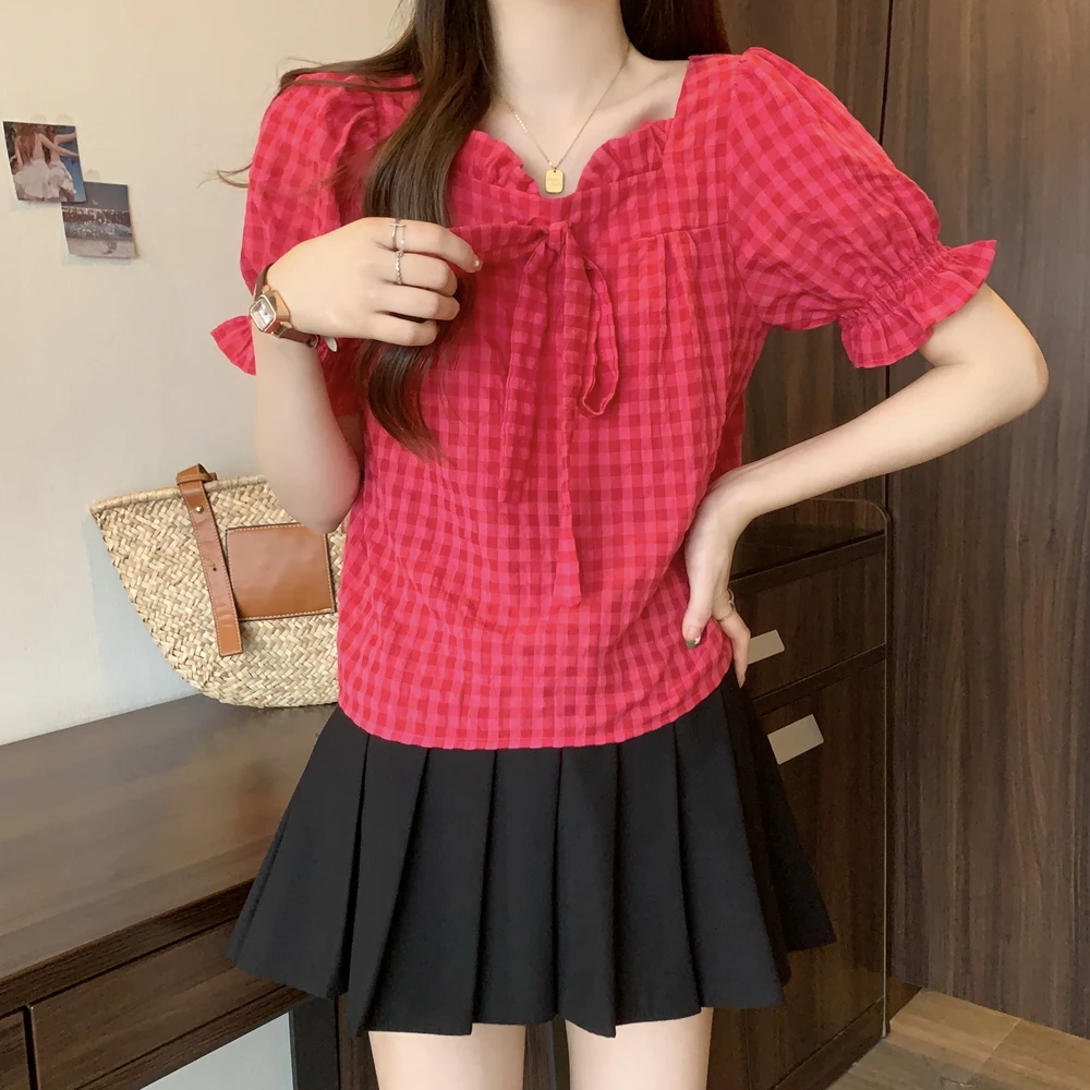 MQTIME  -   Mushroom edge versatile rose red cute chubby sister camisole tank top large women's shirt M-4XL 100kg Y2K