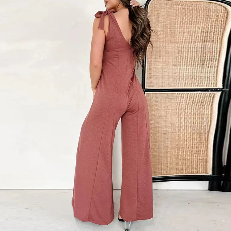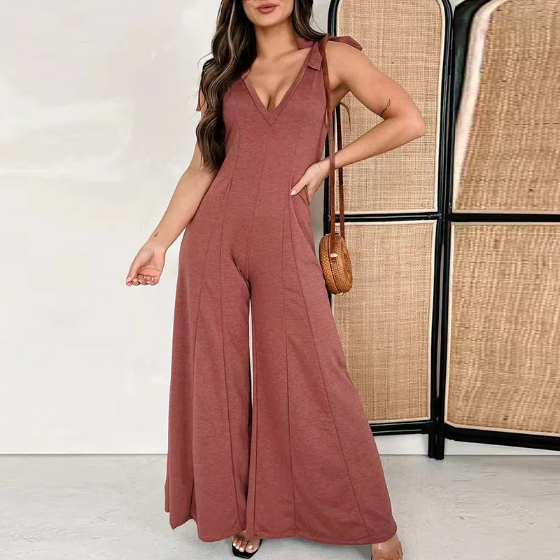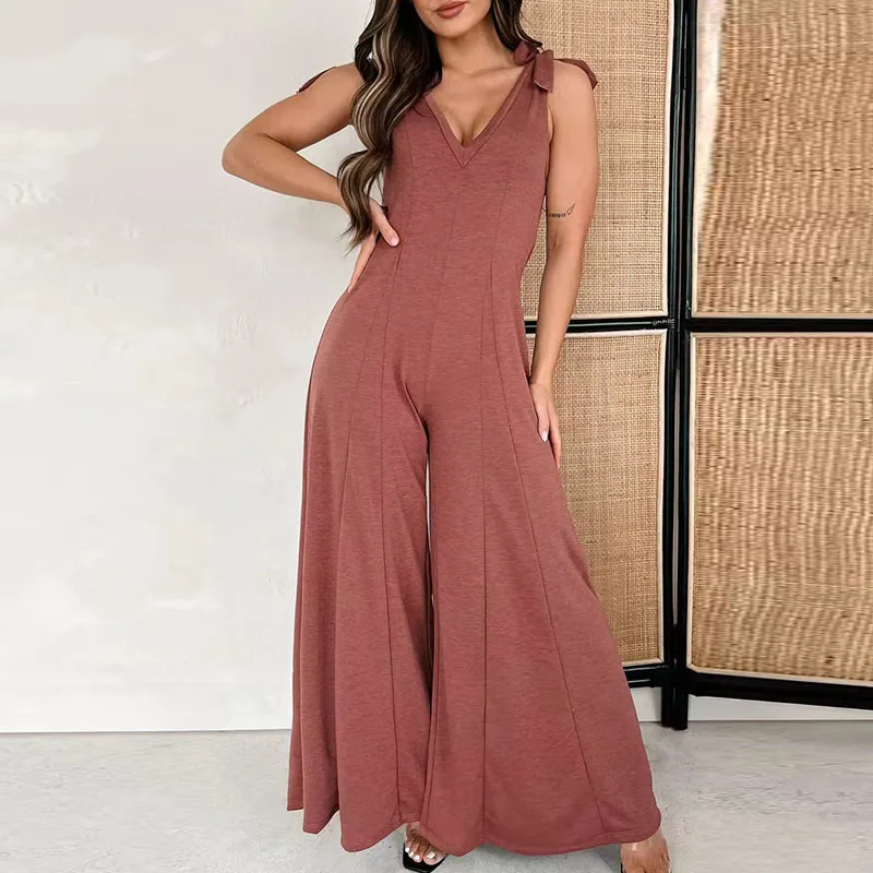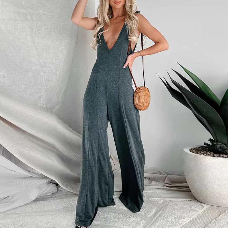 MQTIME - New 2024 Ladies Deep V Suspenders Romper Sexy Hollow Sleeveless Draped Jumpsuit Fashion High Street Wide Leg Long Pants Playsuit