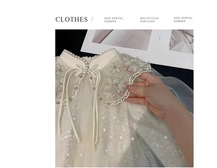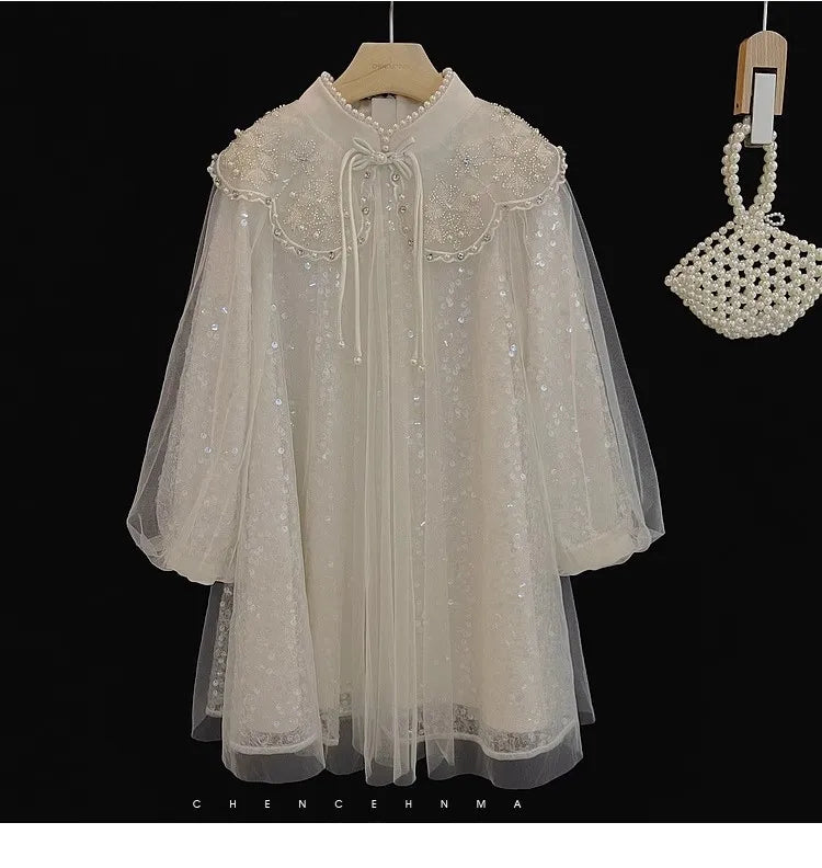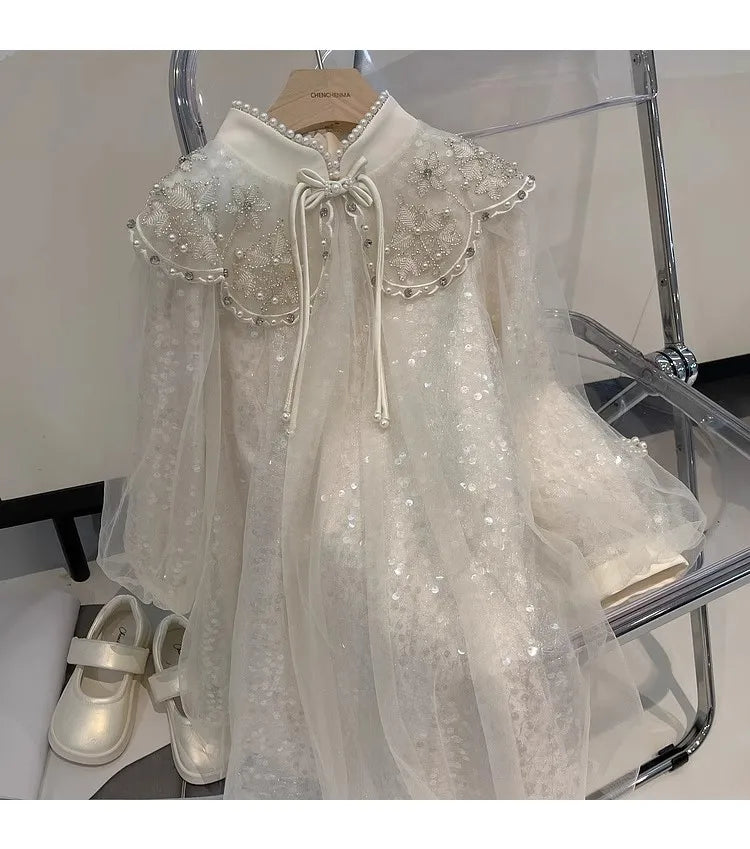 MQTIME - New and improved version of qipao dress for girls in autumn, new Chinese style sequin dress, little girl princess dress