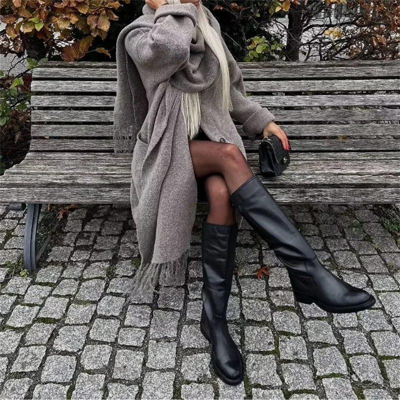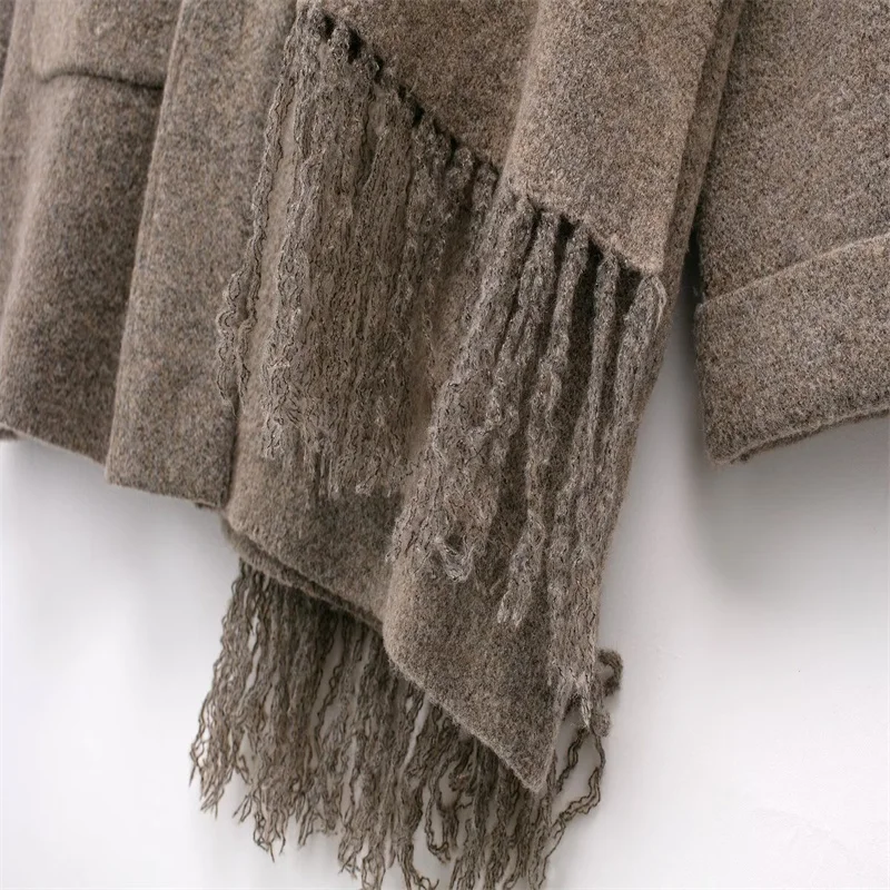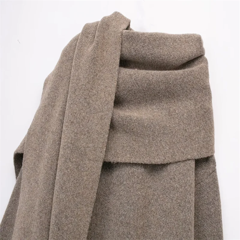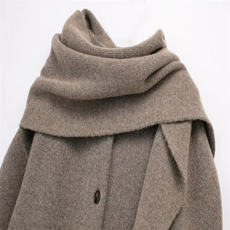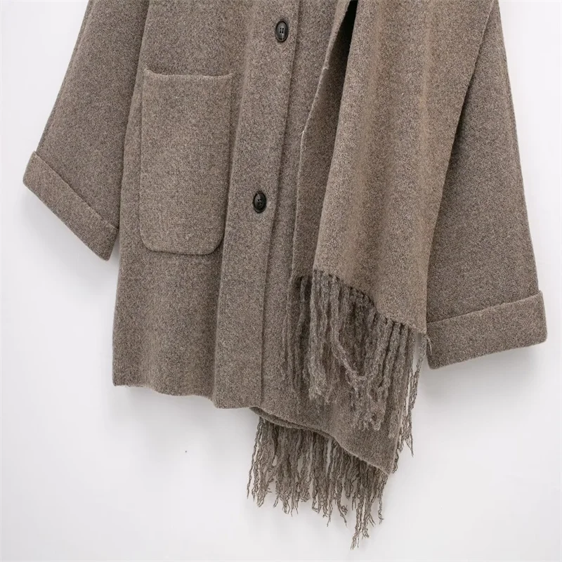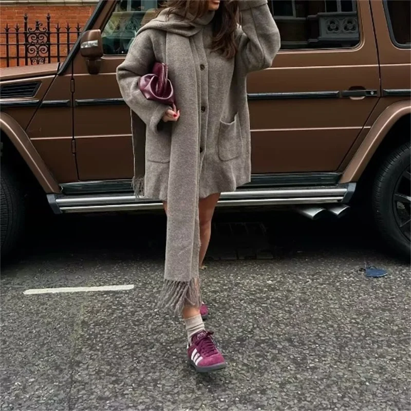 Mqtime New autumn and winter loose thickened scarf collar knitted coat women's high-end warm coat