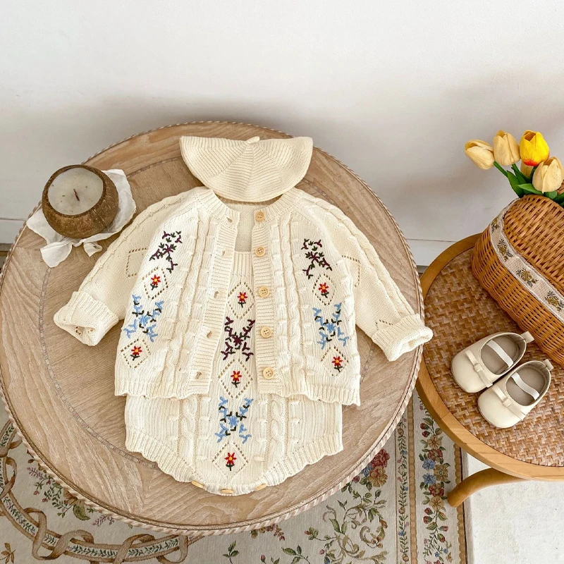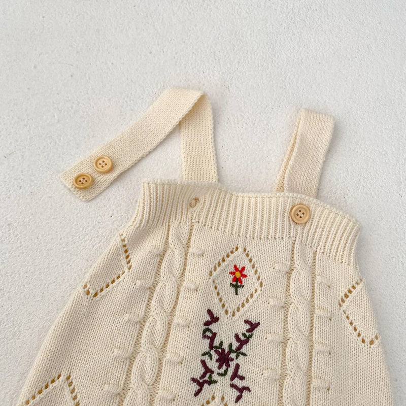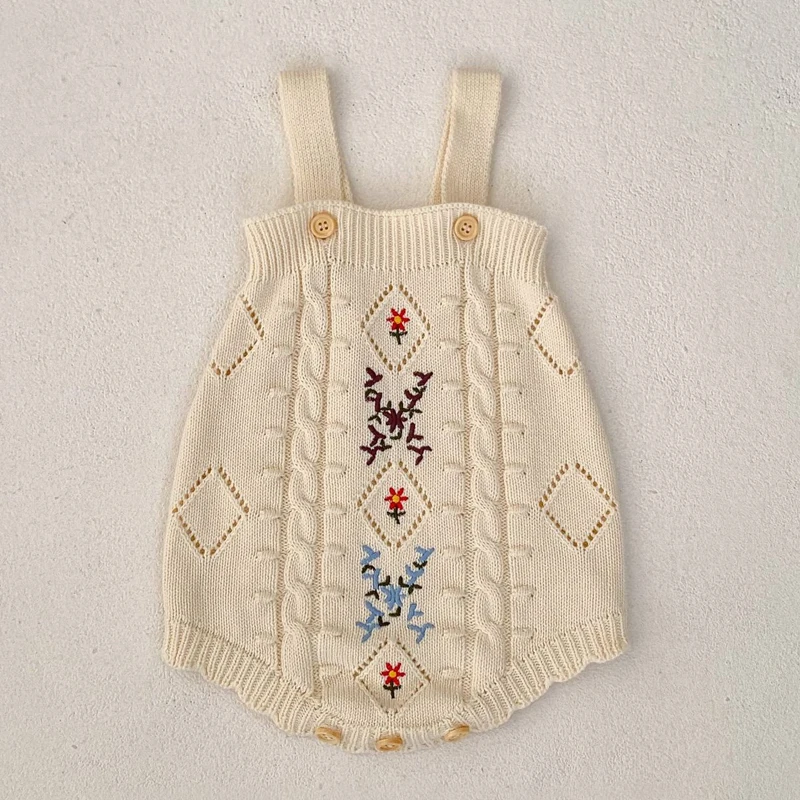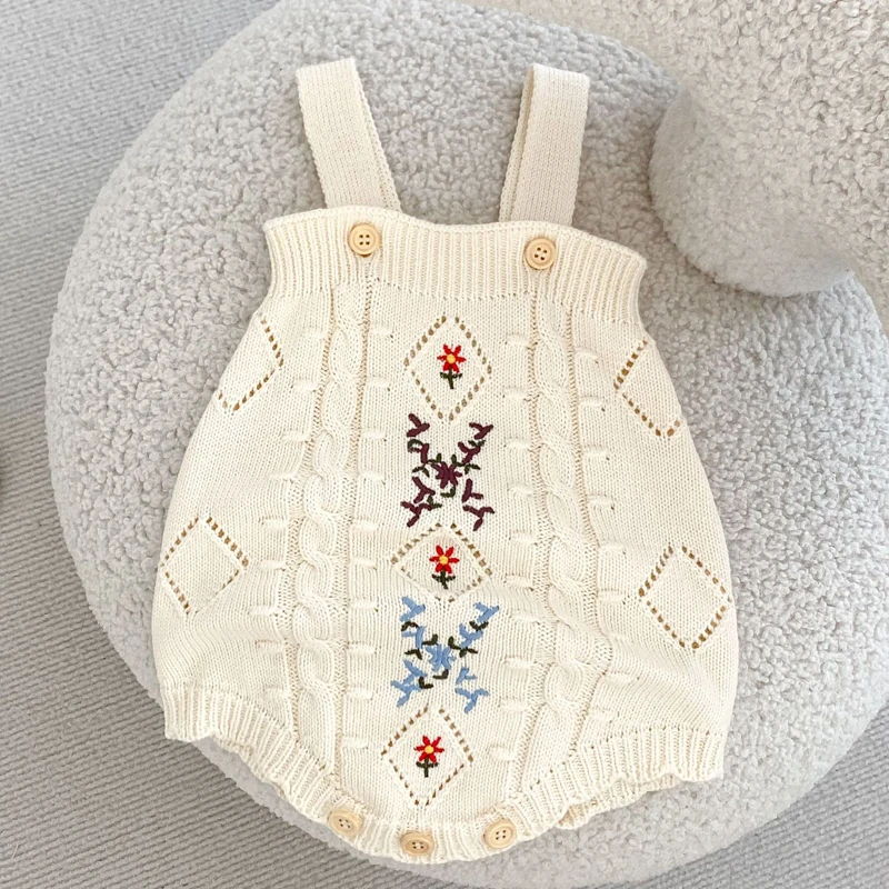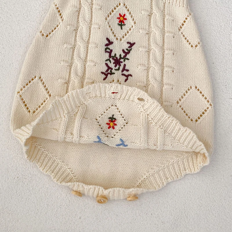 MQTIME - New autumn baby clothing, 0-3 year old female baby, knitted sweater embroidered jumpsuit, crawling suit