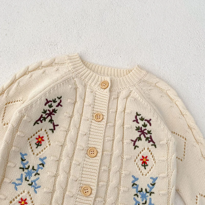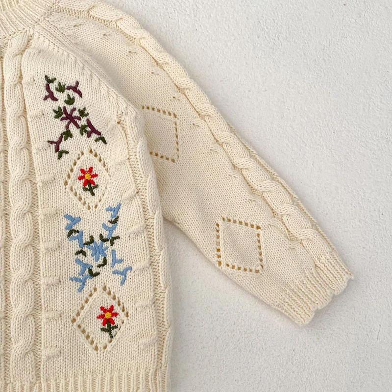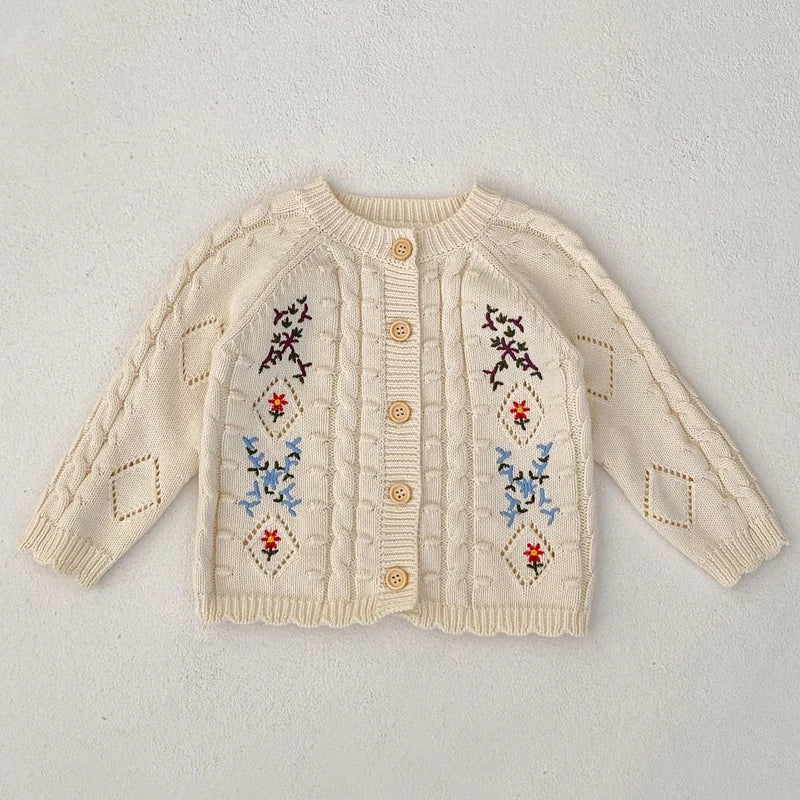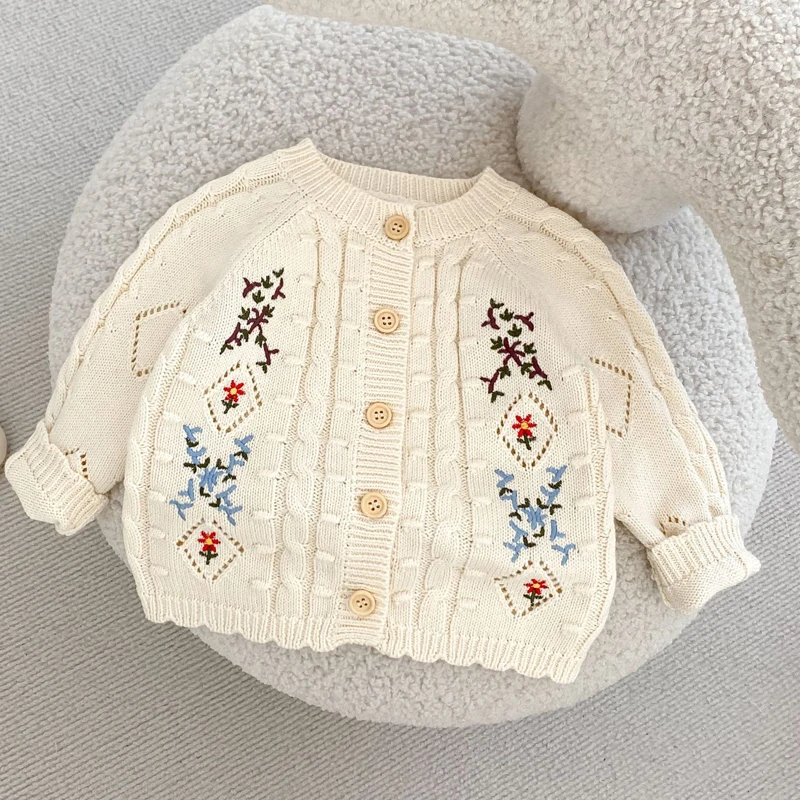 MQTIME - New autumn baby clothing, 0-3 year old female baby, knitted sweater embroidered long sleeved jacket