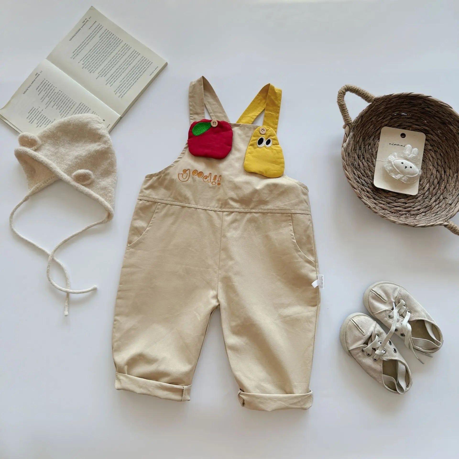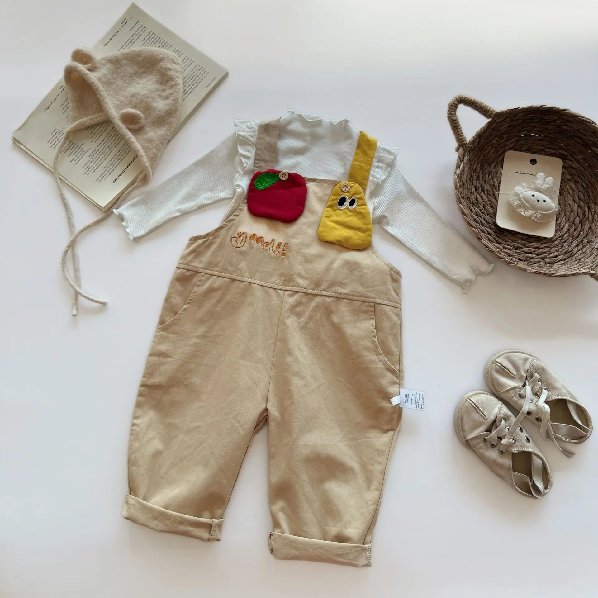 MQTIME - New autumn baby clothing for 0-3 years old, cartoon apple pear patch overalls,