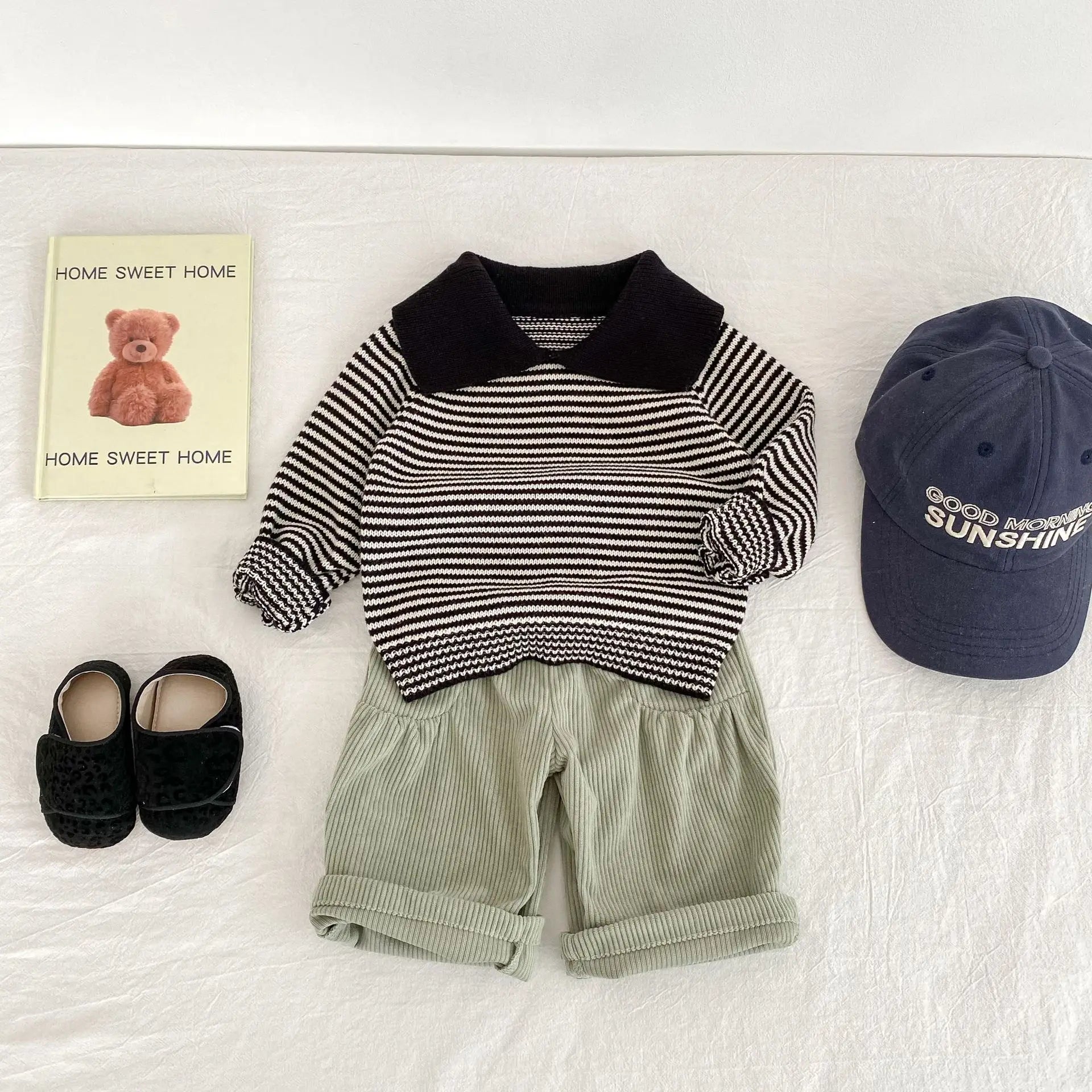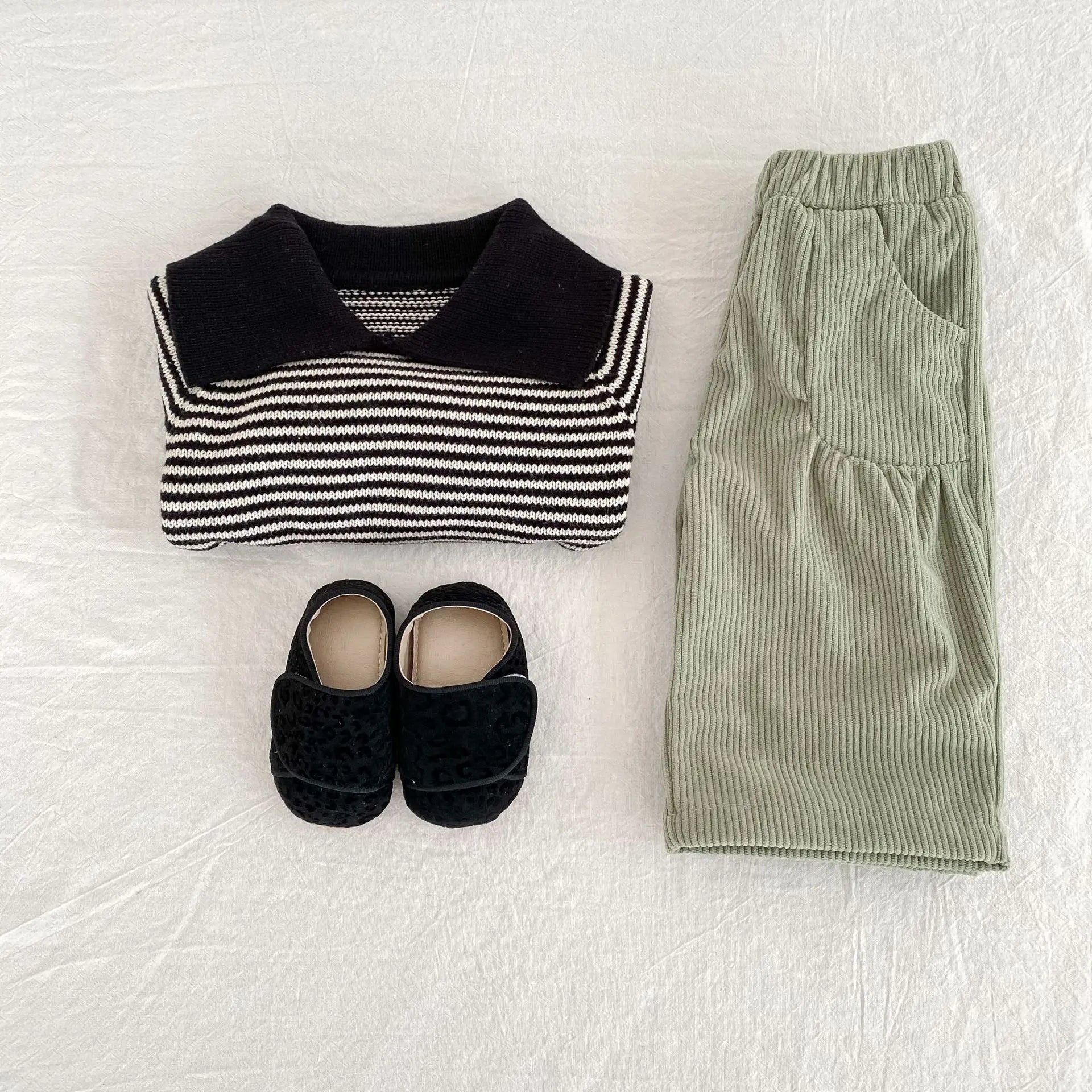 MQTIME - New autumn clothing for babies aged 0-3, striped lapel long sleeved polo shirts for boys and girls
