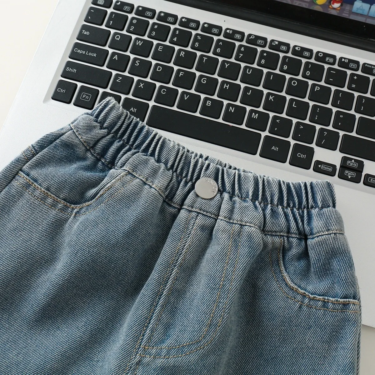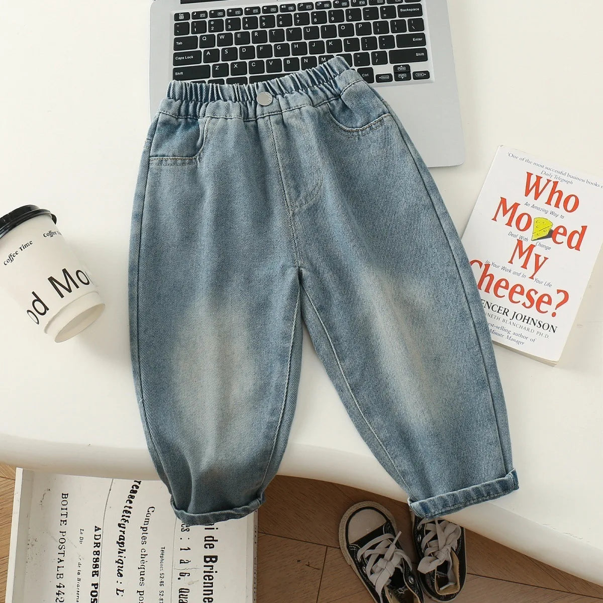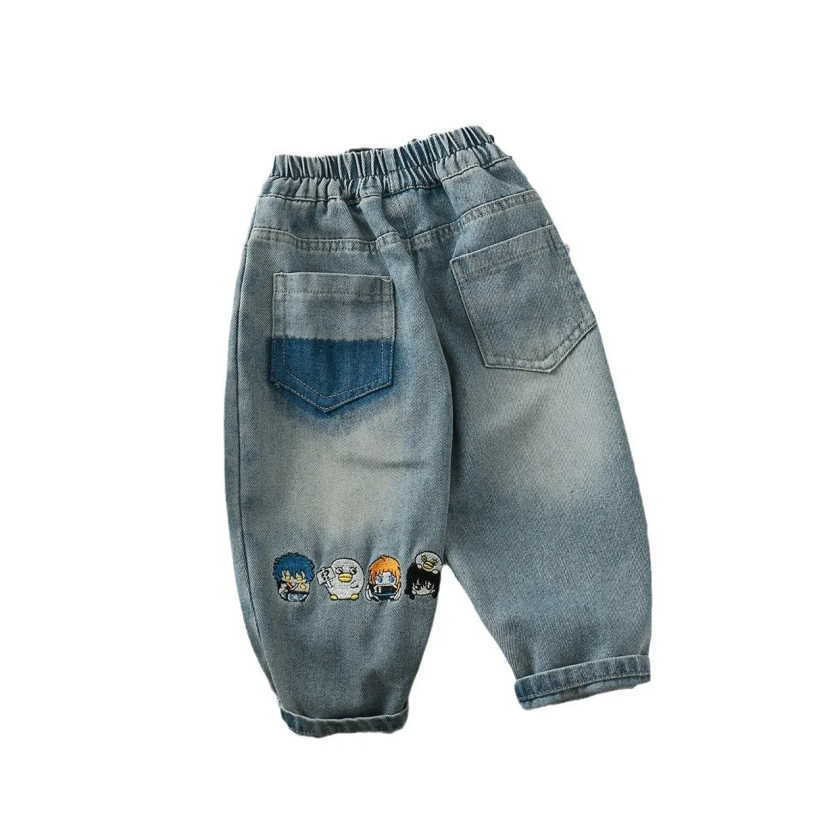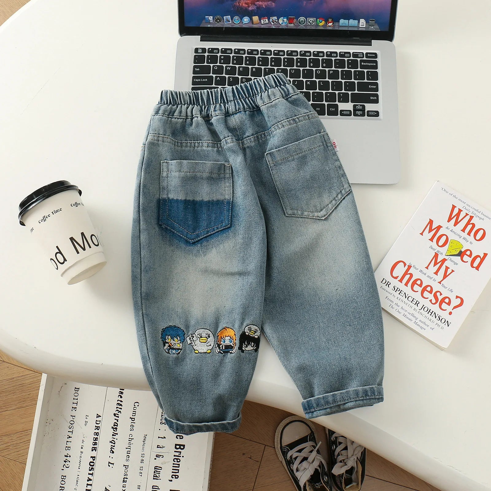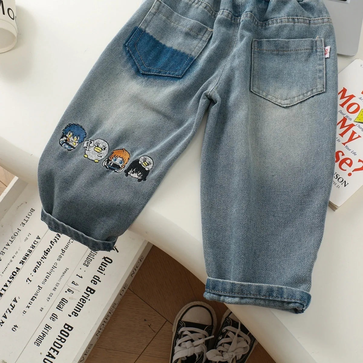 MQTIME - New Autumn Infant Baby Boy Jeans Korean Casual Embroidery Outwear Children Boy Denim Pants Loose Elastic Waist Kid Boys Trousers