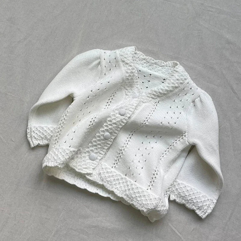 MQTIME - New Autumn Infant Baby Girls Knitting Cardigan Long Sleeved Solid Color Newborn Baby Girls Sweater Coat Children Clothes
