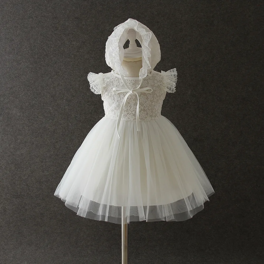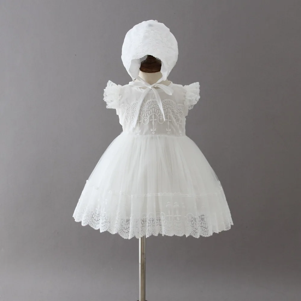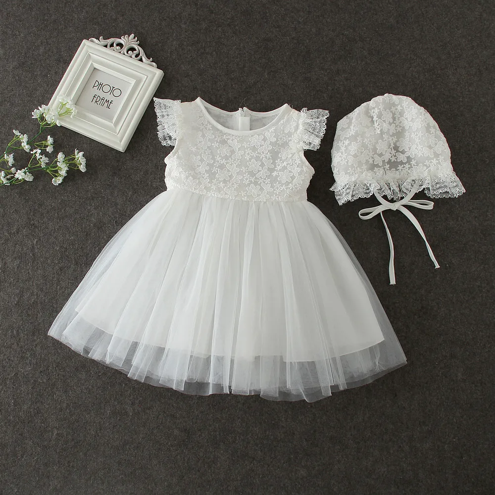 MQTIME - new baby dress with Cap white Embroidery lace baby girl christening gowns 1 year birthday dress baby girls clothes for 3-24M