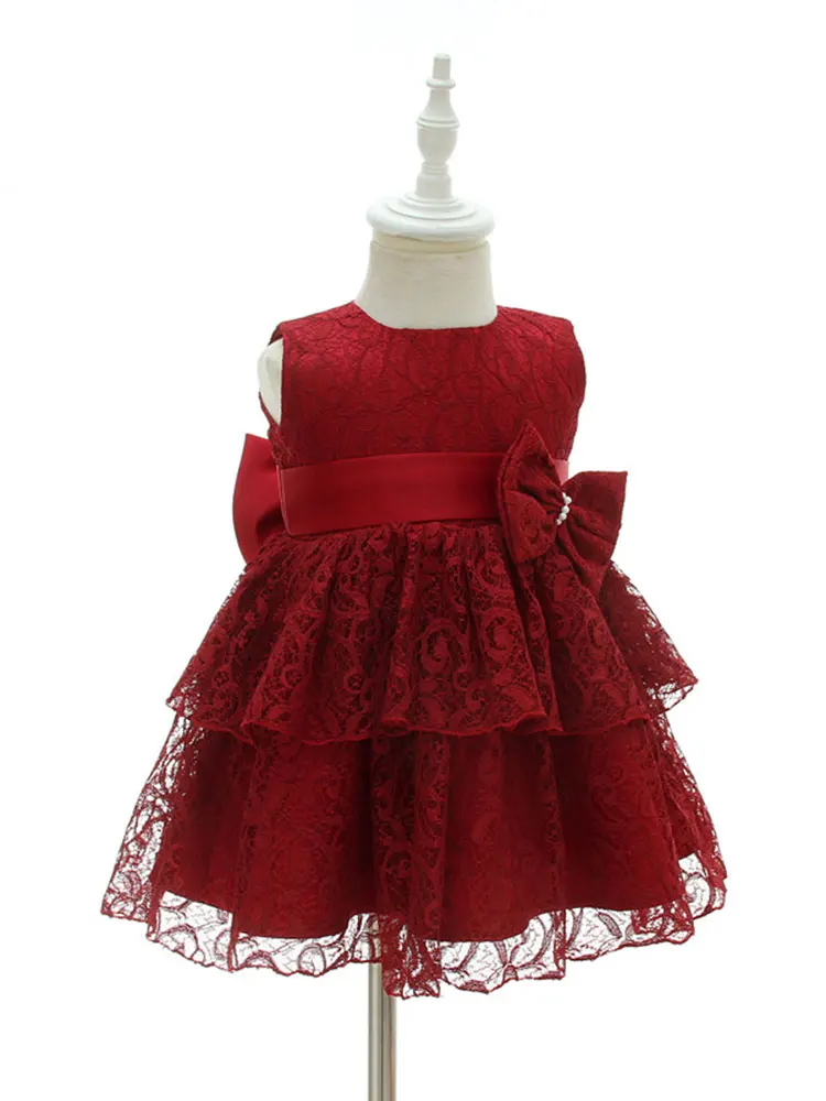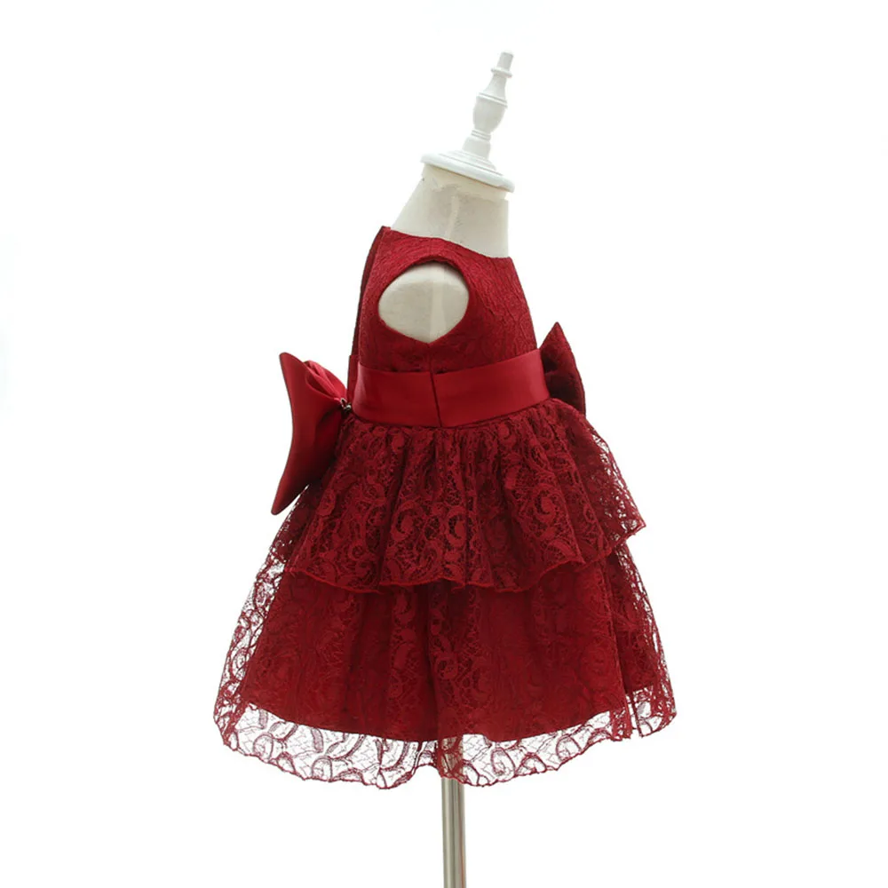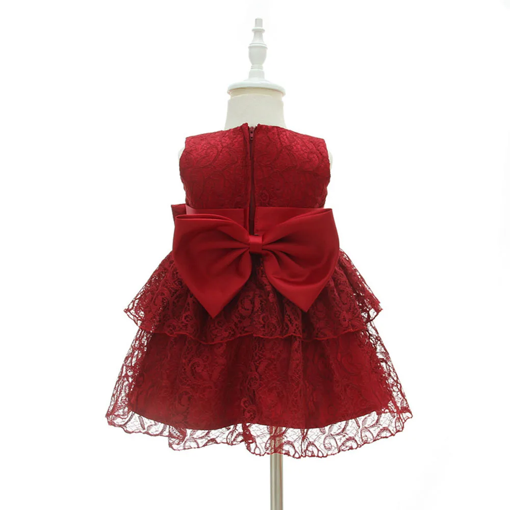 MQTIME  -  New Baby Girl Dress Hollow Lace Princess Infant Wedding Party Dresses Red White Newborn Gown baby girl clothes 0-24 month