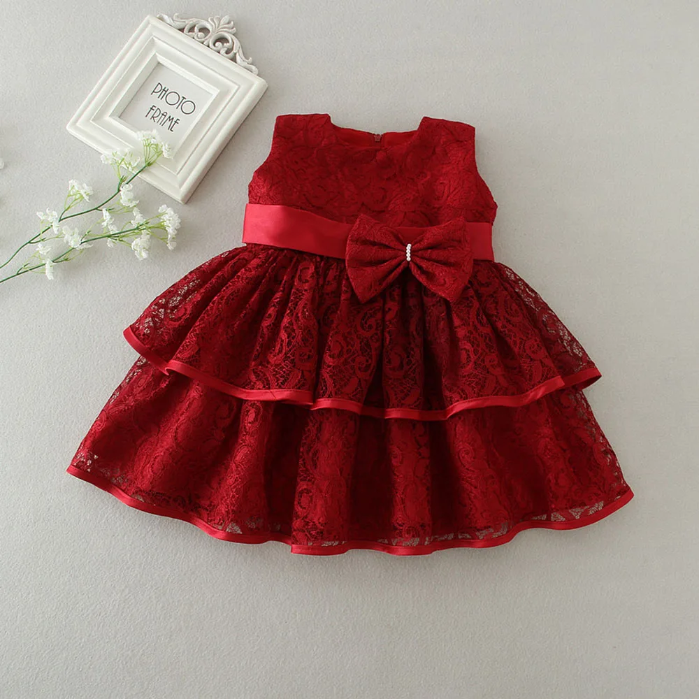 MQTIME - New Baby Girl Dress Hollow Lace Princess Infant Wedding Party Dresses Red White Newborn Gown baby girl clothes 0-24 month