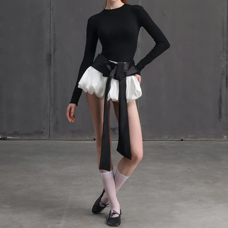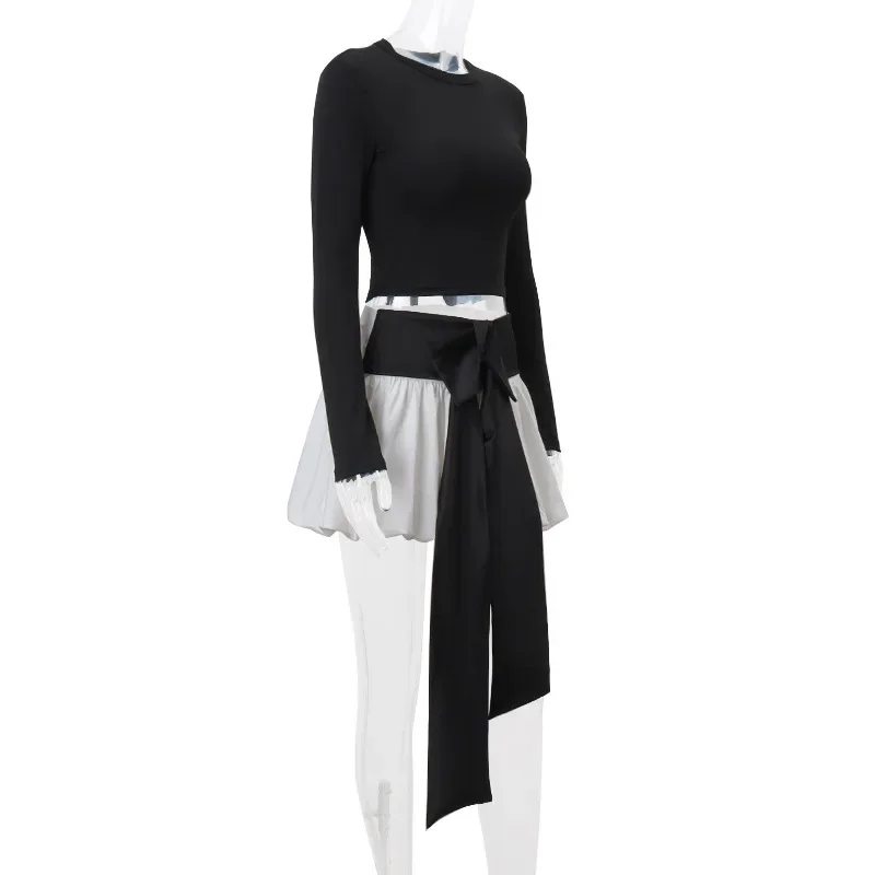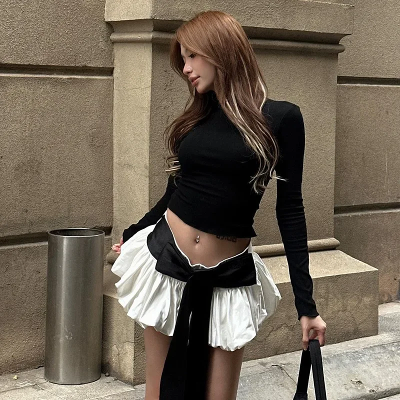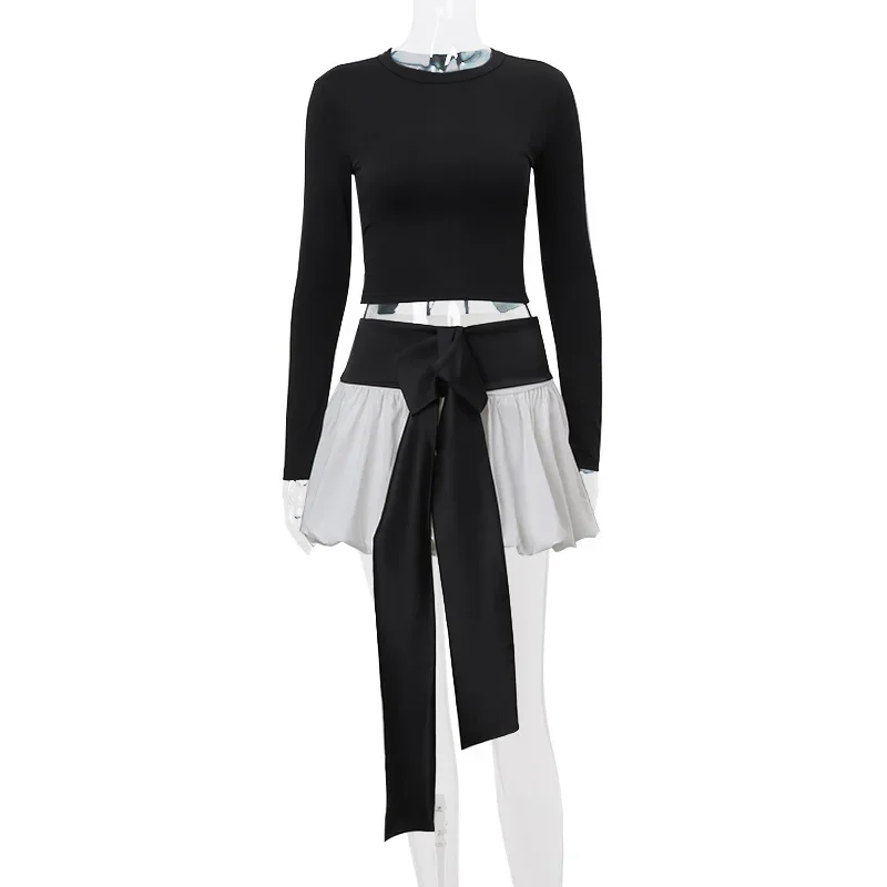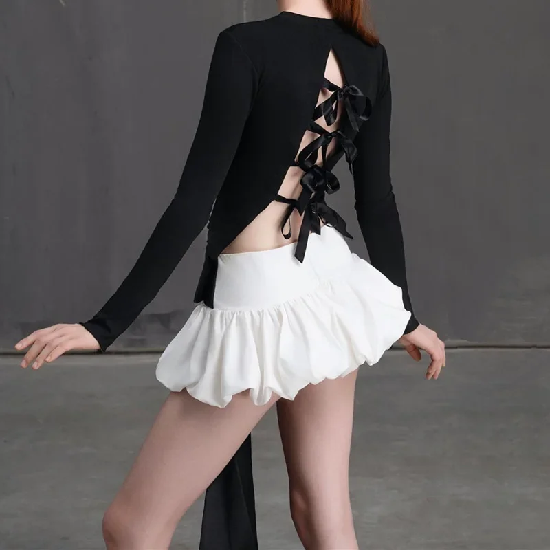 MQTIME - New Bow Skirt Sets For Women Sexy Backless Bandage Lace Up Shirt Femme Fashion Folds Mini Skirts 2 Piece Suits Women Outfits