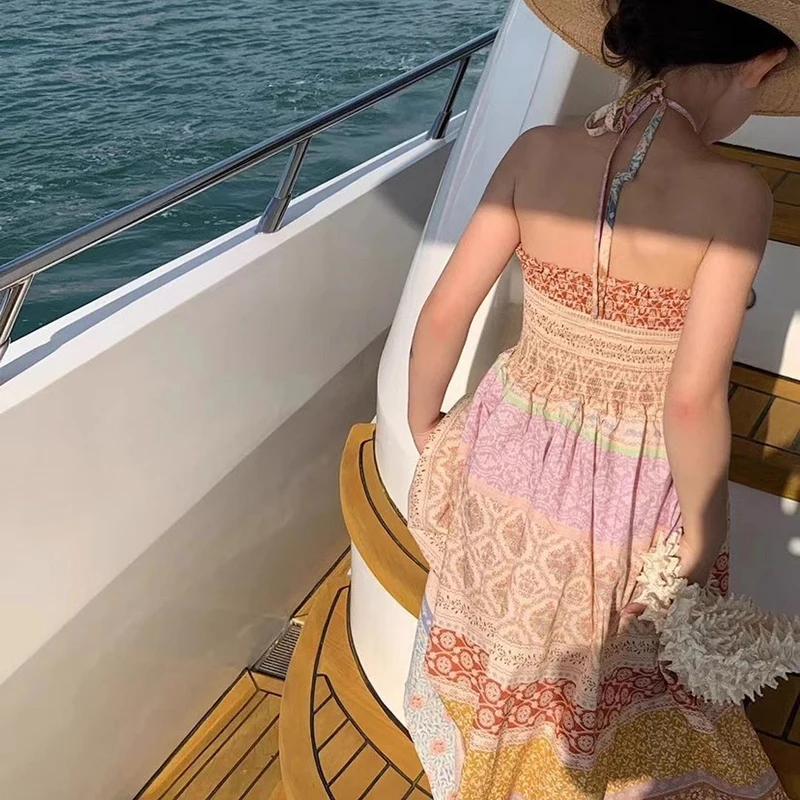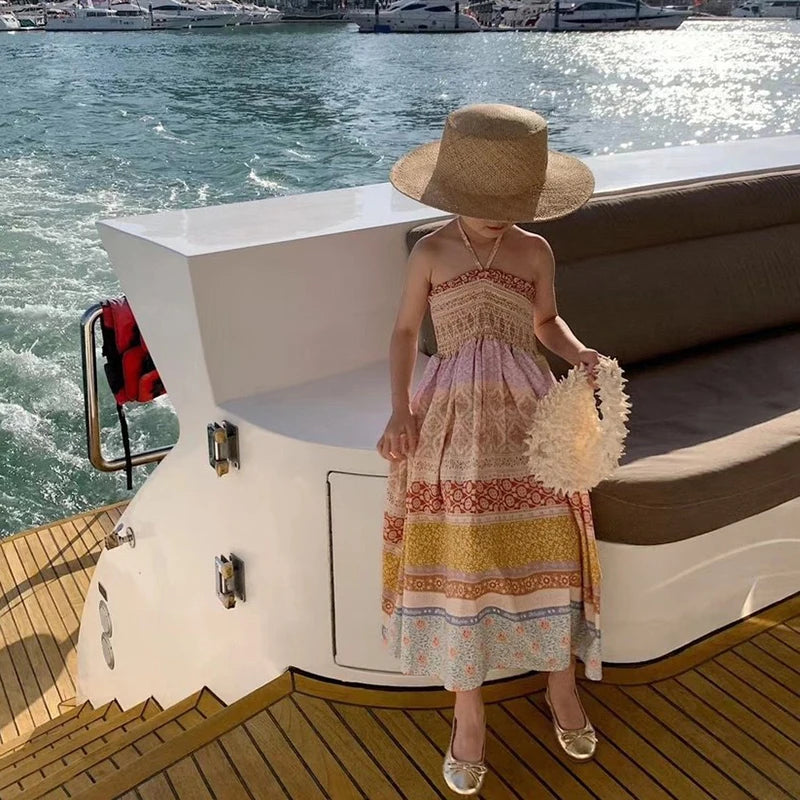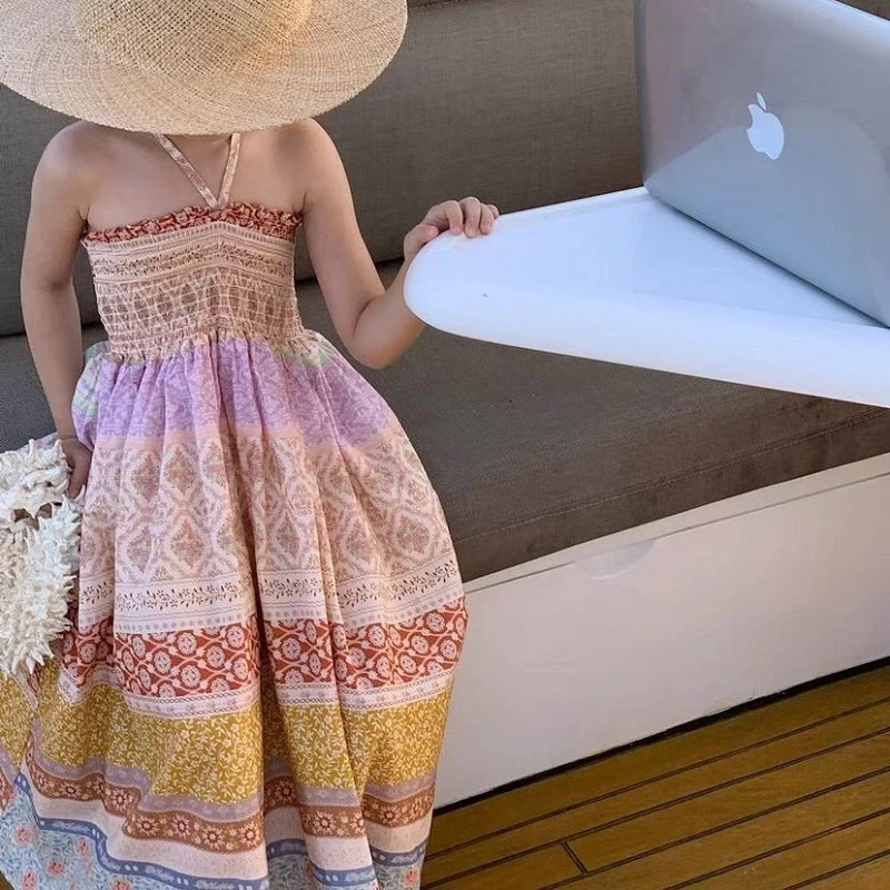 MQTIME - New Girls Dresses 2-6 Y Summer Stretch Ruffled Bohemia Ethnic Style Suspender Dress Childrens Outwear Clothing