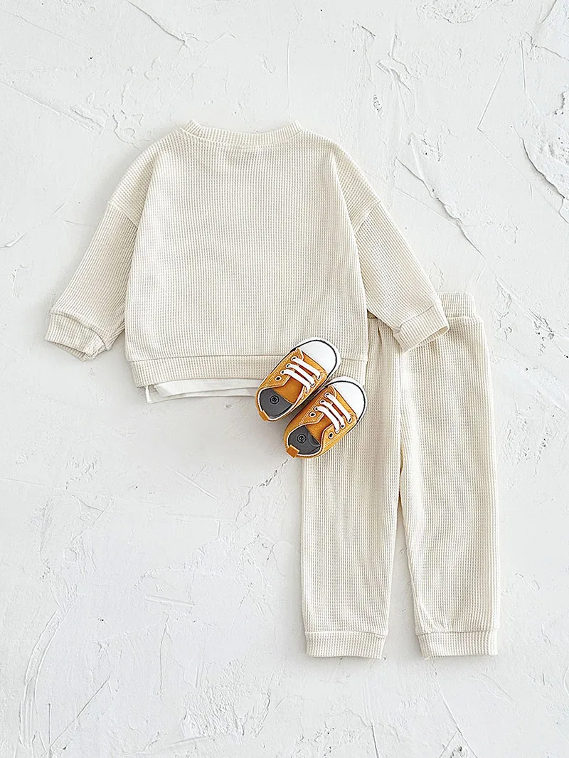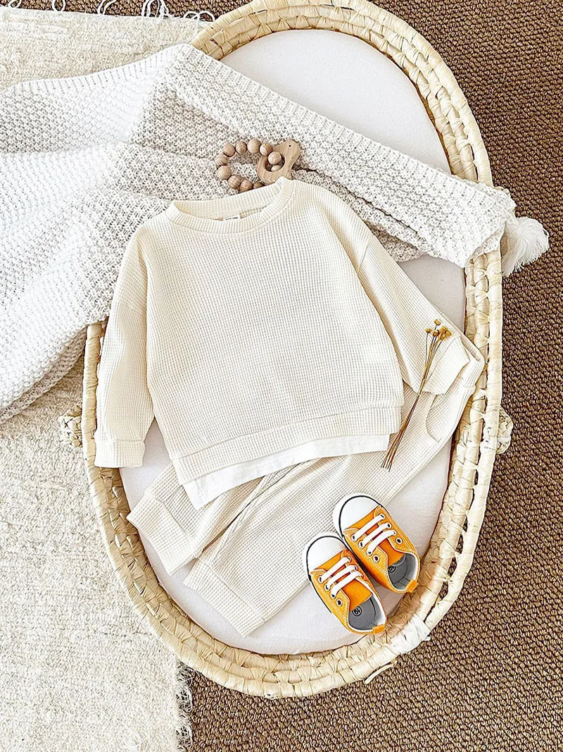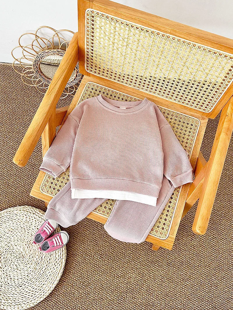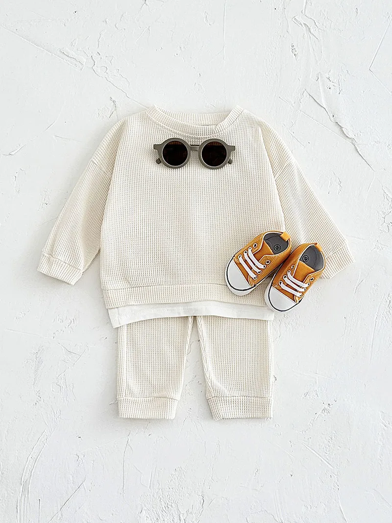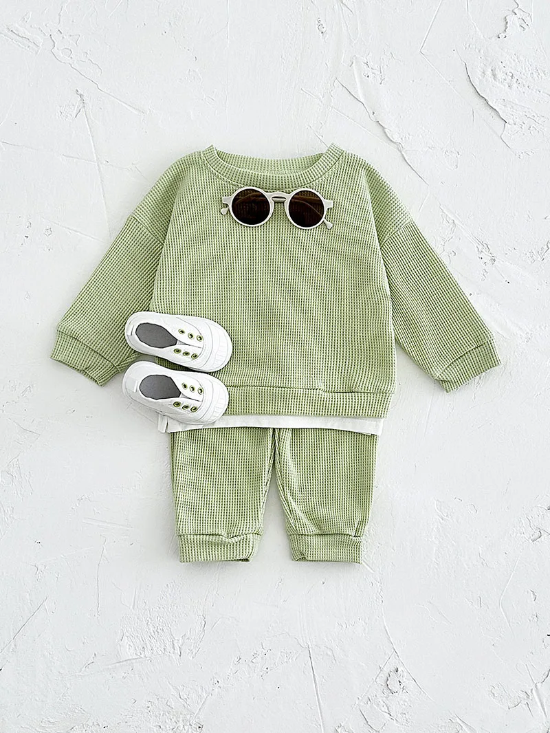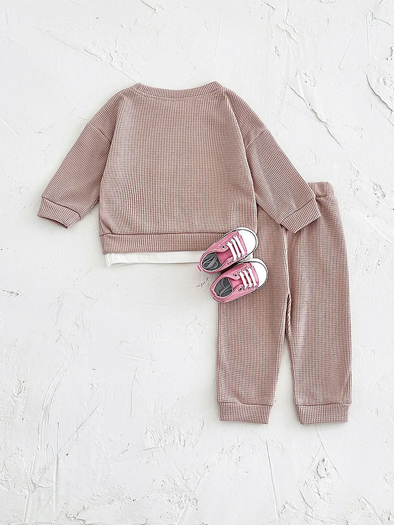 MQTIME  -  New Spring Baby Waffle Clothes Set Cute Kids Boys Solid Color Hoodie +Sweat Pants Toddler Color Block Outfit