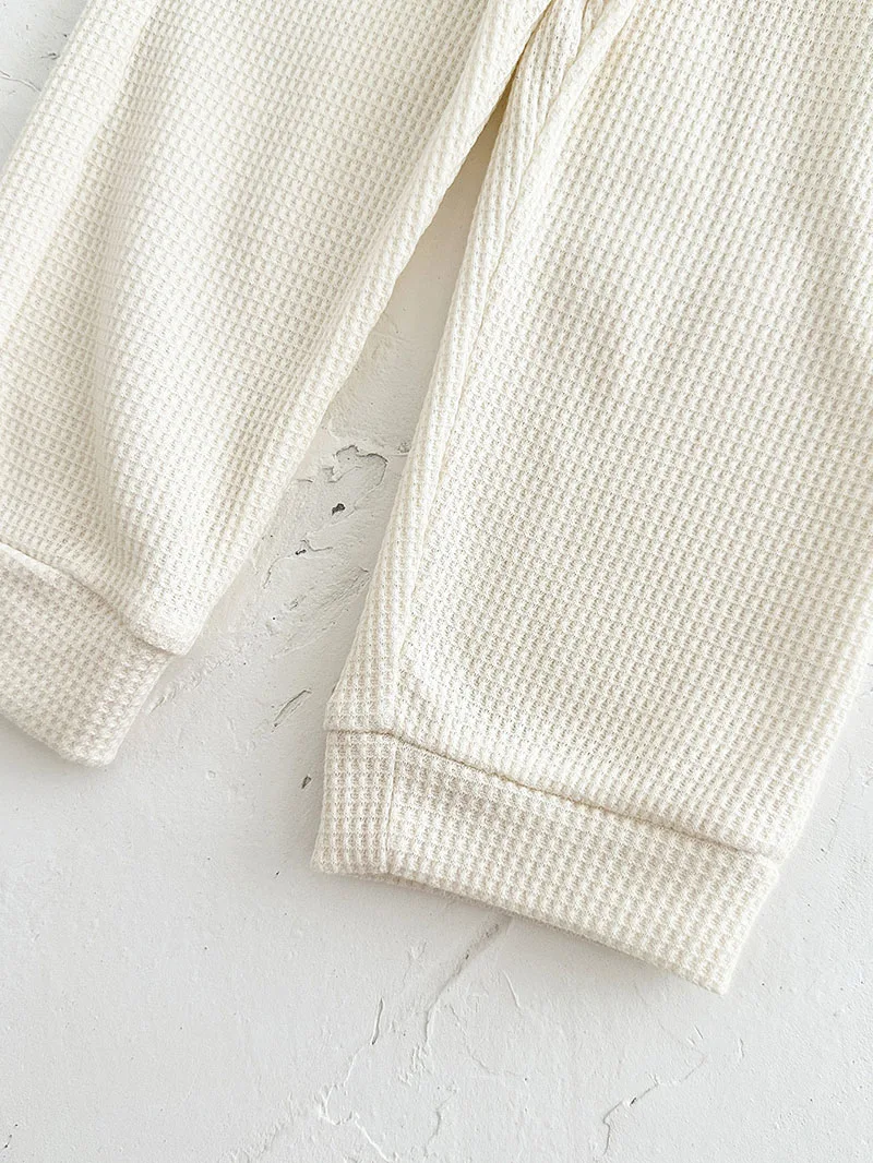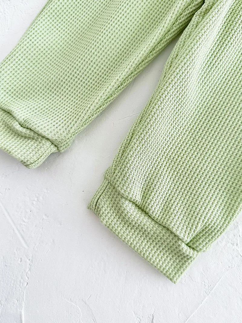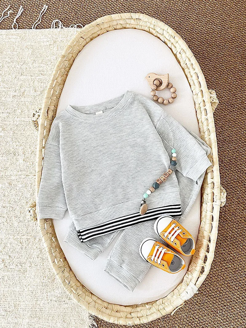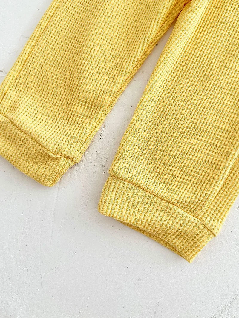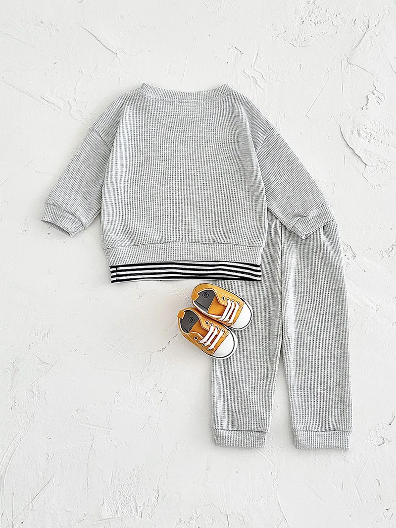 MQTIME  -  New Spring Baby Waffle Clothes Set Cute Kids Boys Solid Color Hoodie +Sweat Pants Toddler Color Block Outfit