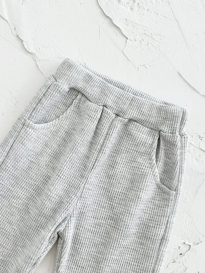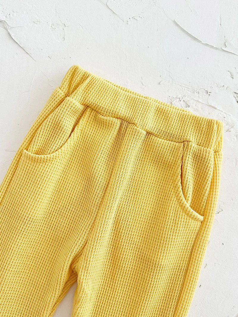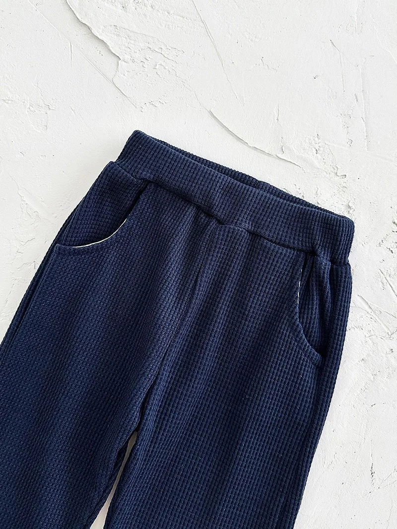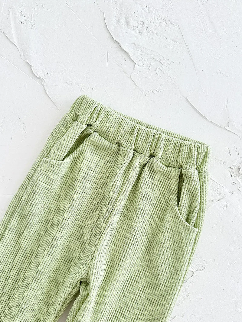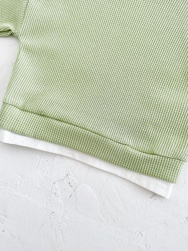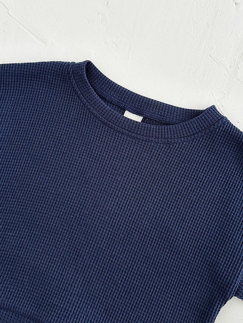 MQTIME  -  New Spring Baby Waffle Clothes Set Cute Kids Boys Solid Color Hoodie +Sweat Pants Toddler Color Block Outfit