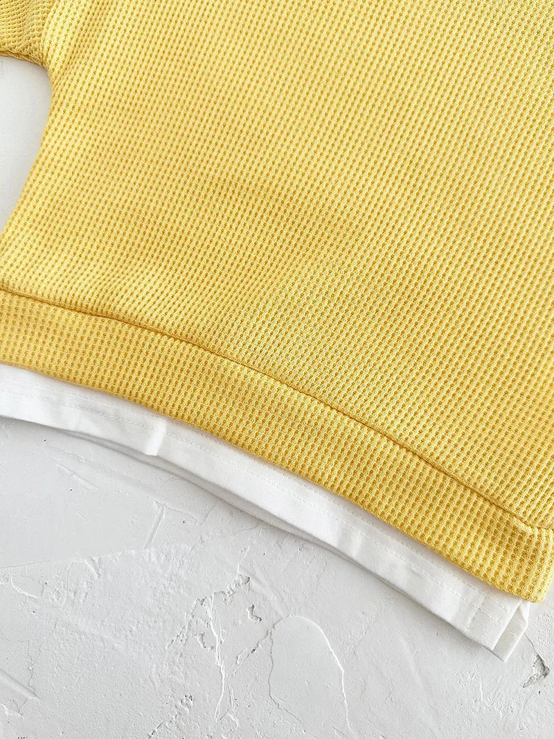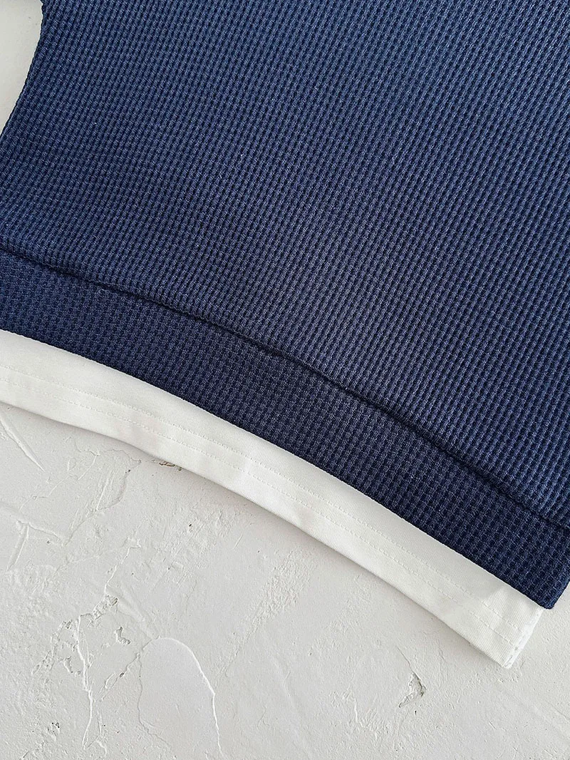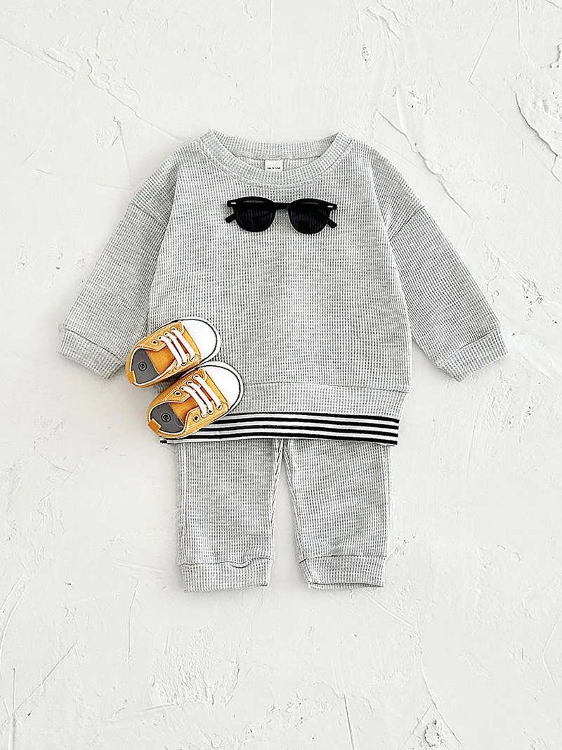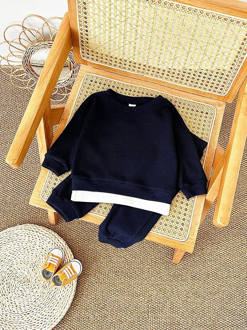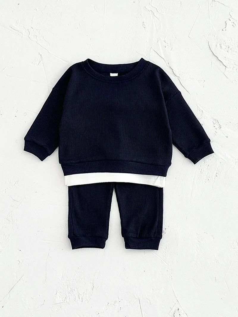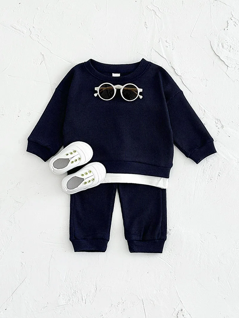 MQTIME - New Spring Baby Waffle Clothes Set Cute Kids Boys Solid Color Hoodie +Sweat Pants Toddler Color Block Outfit