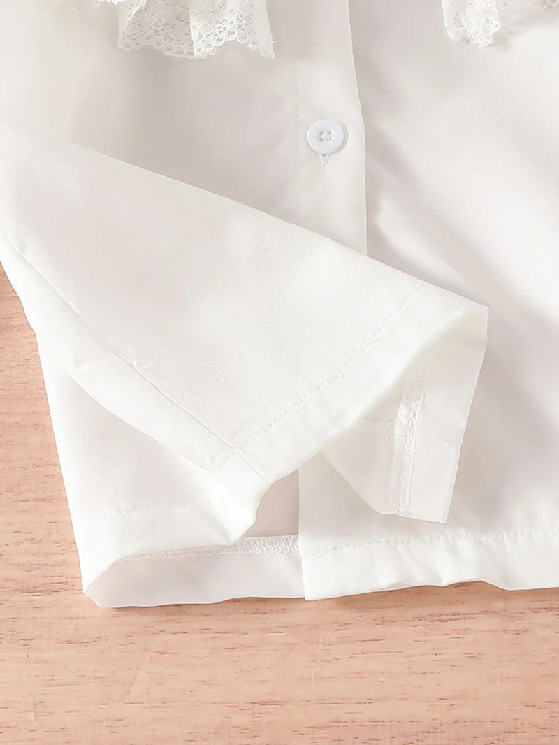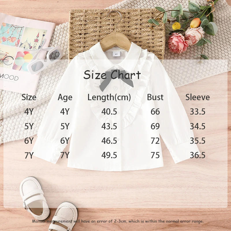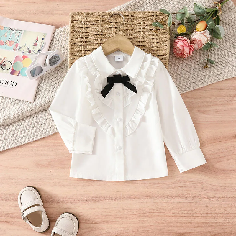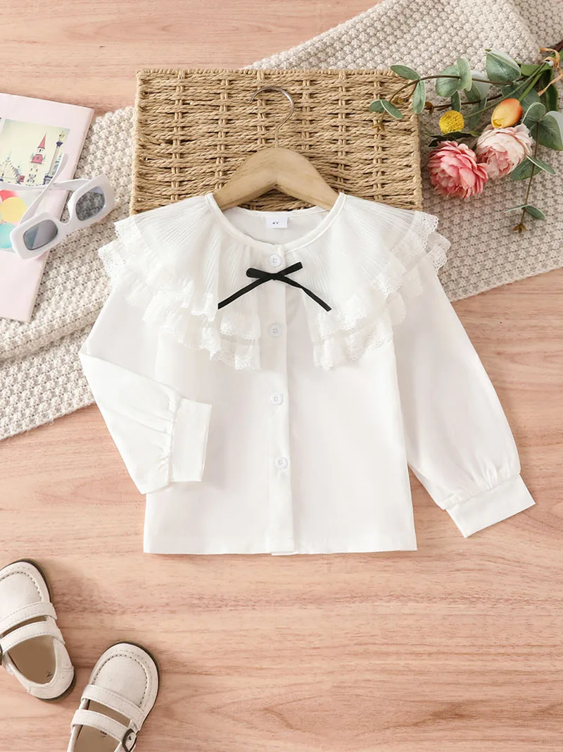 MQTIME - New Spring Kids Blouse Thin Style Solid Color Lace Children Shirt Girls Cute Bow Long Sleeved Shirt