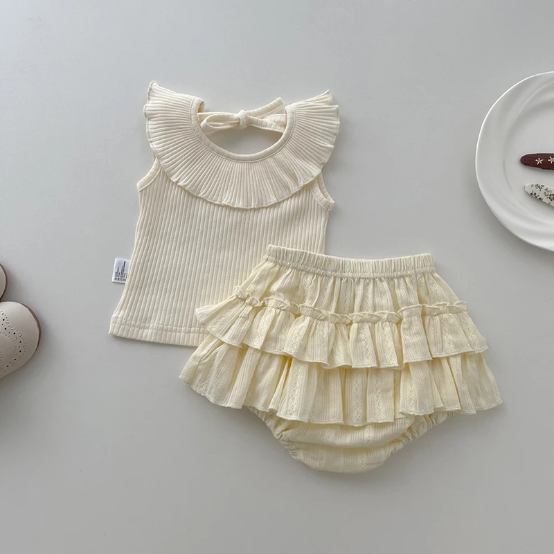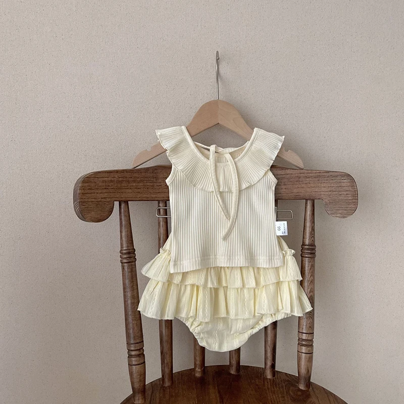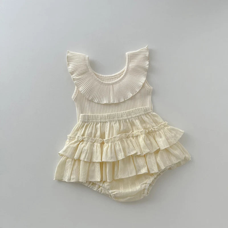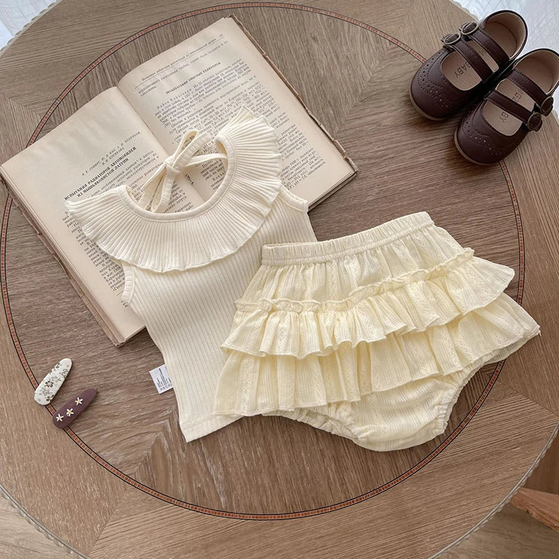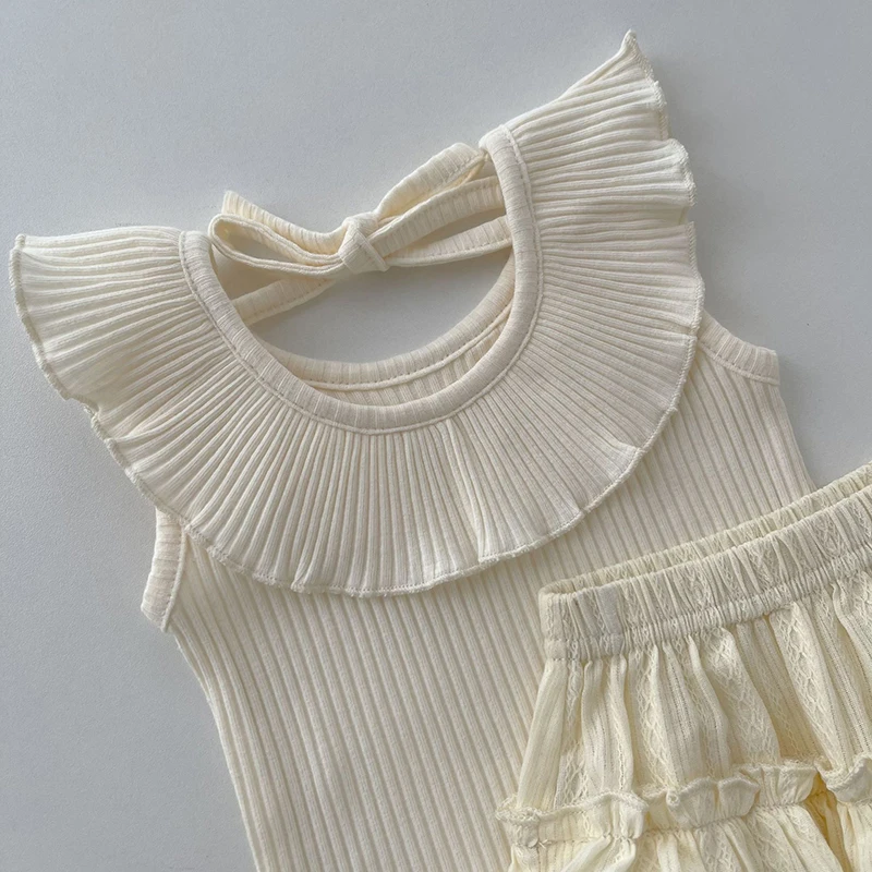 MQTIME  -  New Summer Baby Clothing Set Infant Girl's Sleeveless Tee Blommer 2Pcs Toddler Ruffled Collar T-shirt Double-layer Shorts