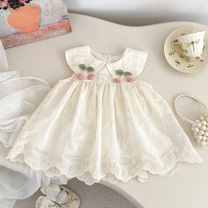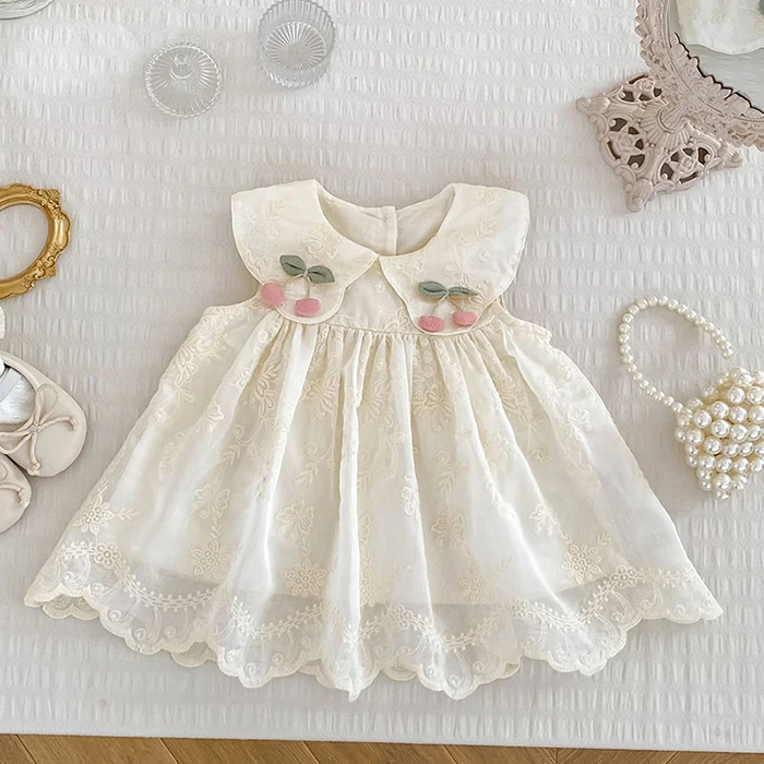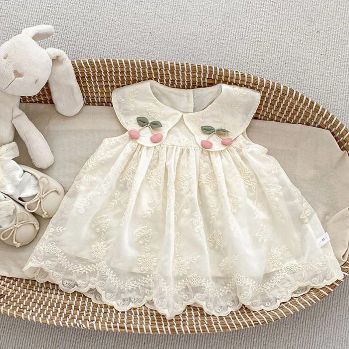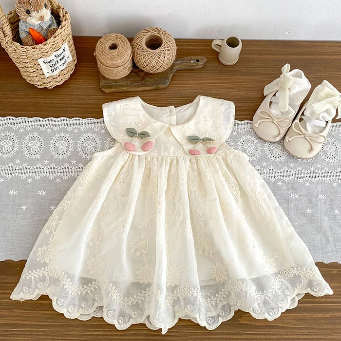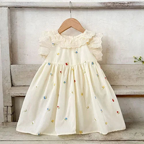 MQTIME - New Summer Children Clothes 1-5Yrs Kids Princess Dresses Sleeveless Cotton Lace Splicing Baby Girl Party Dress